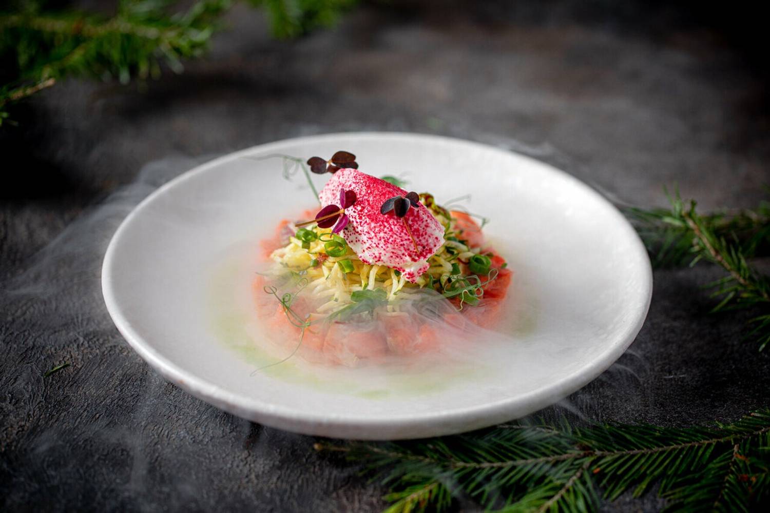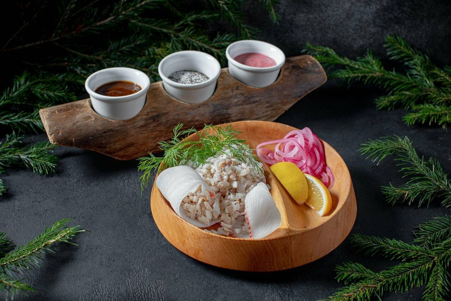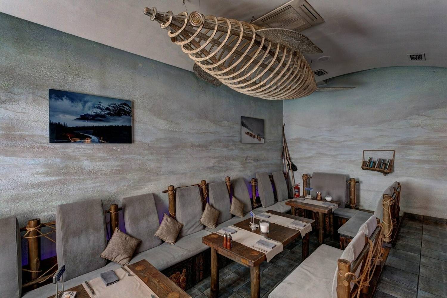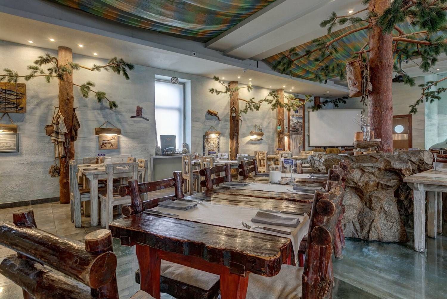 Еда и напитки. Меню представляет собой исследование авторской кухни Русского севера, где традиционные рецепты переосмыслены с современной точностью. На закуску берут тартар из кижуча с хрустальными кабачками, оленьи языки на гриле с соусом из брусники и жареные пермские посикунчики с мясом горно-алтайского барашка. Также стоит попробовать трофейный суп с мясом глухаря, рыбные пельмени с муксуном, нельмой и неркой, рубленую котлету-гриль из оленины и кабана. Десертная карта не менее привлекательна: муссовый торт из протертой морошки и белого шоколада, ассорти шоколадных камней с ягодной начинкой. Для юных гостей разработано отдельное детское меню, где собрали шашлычок из креветок, куриную котлету и какао. В будни готовят бизнес-ланч. Из напитков есть коктейли на основе фирменных настоек, вино и крепкий алкоголь.