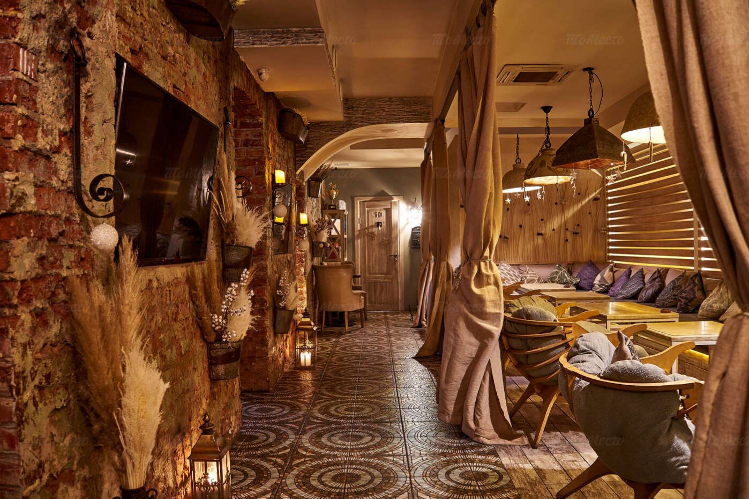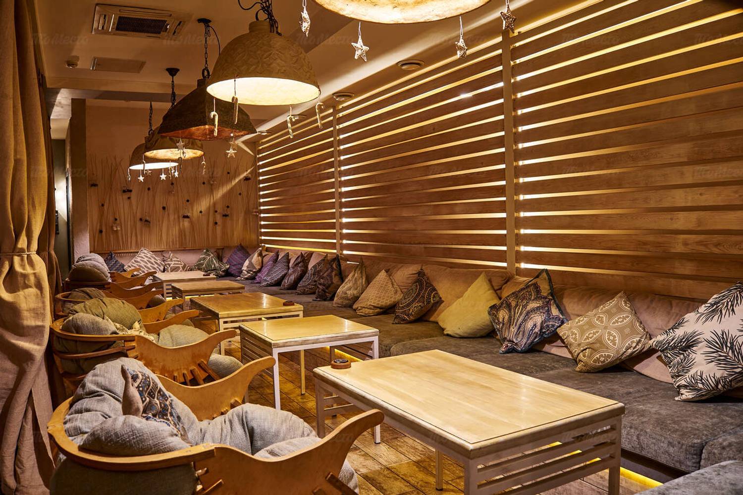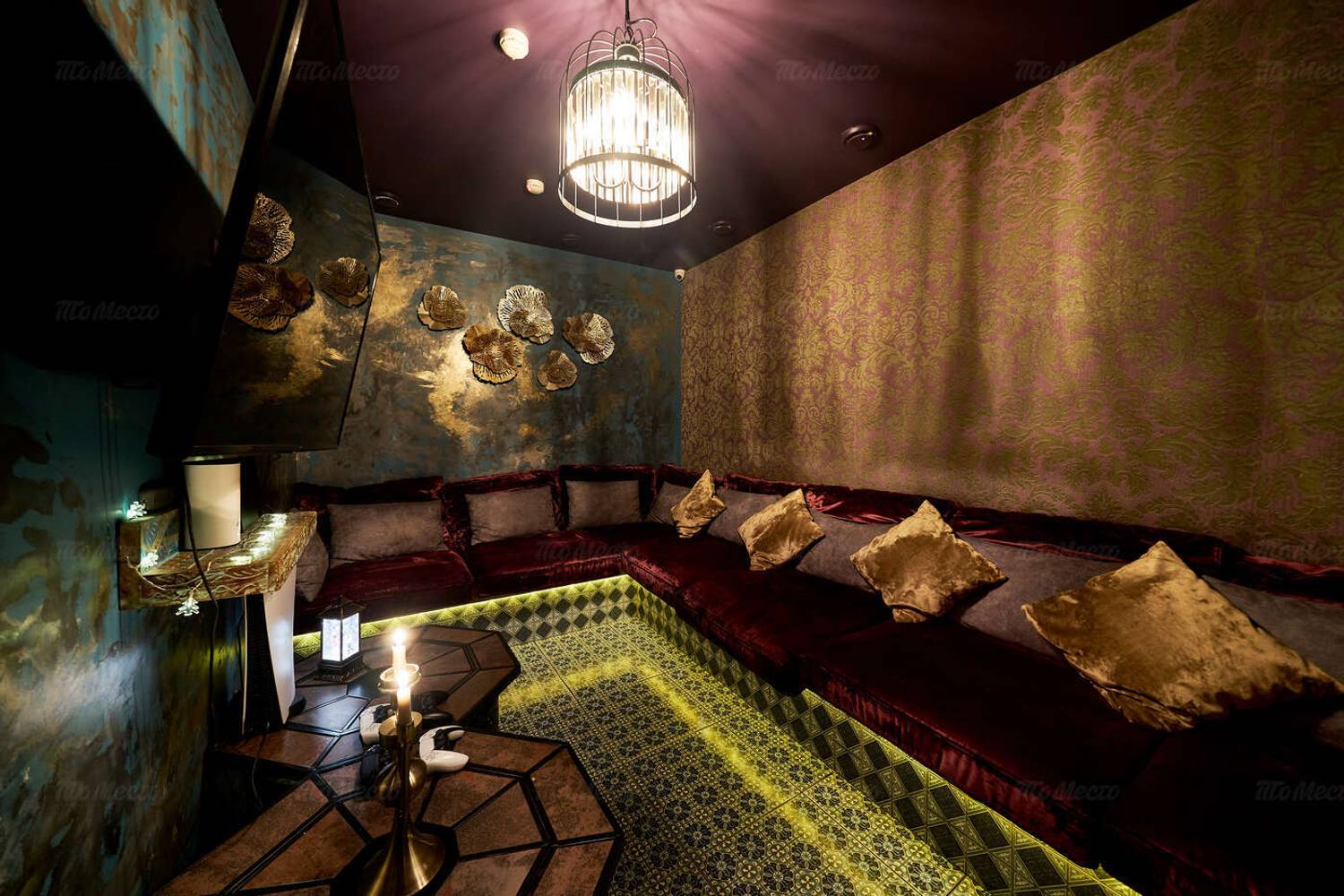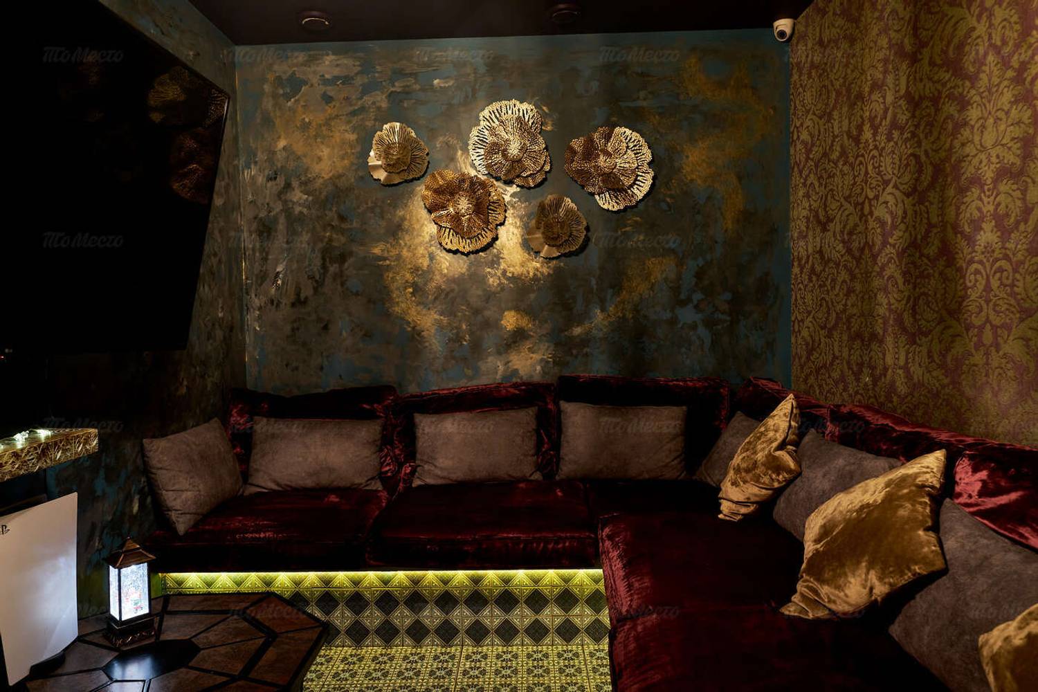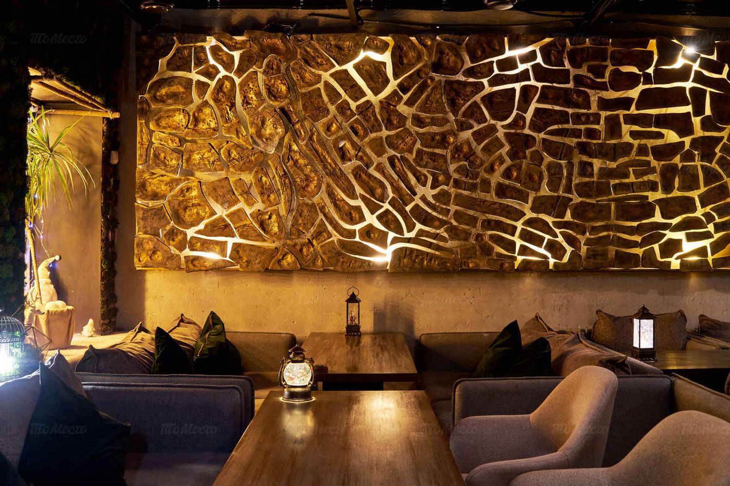 Атмосфера. Пространство оформлено в духе лофта с национальными марокканскими акцентами: состаренные кирпичные стены с мхом, пол с узорами, декоративные каменные элементы и теплая желтая подсветка. Есть уютные диванчики, отдельная VIP-кабинка, настольные игры и игровая приставка.