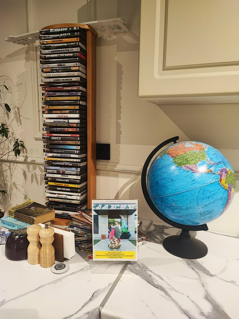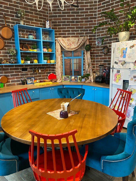 Атмосфера. Гости могут пообедать на знаменитой кухне Моники, посидеть в креслах Чендлера и Джо, провести время в уголке Фиби или центральной кофейне. Детали продолжают тематику сериала: статуя собаки, фотокадры из шоу.