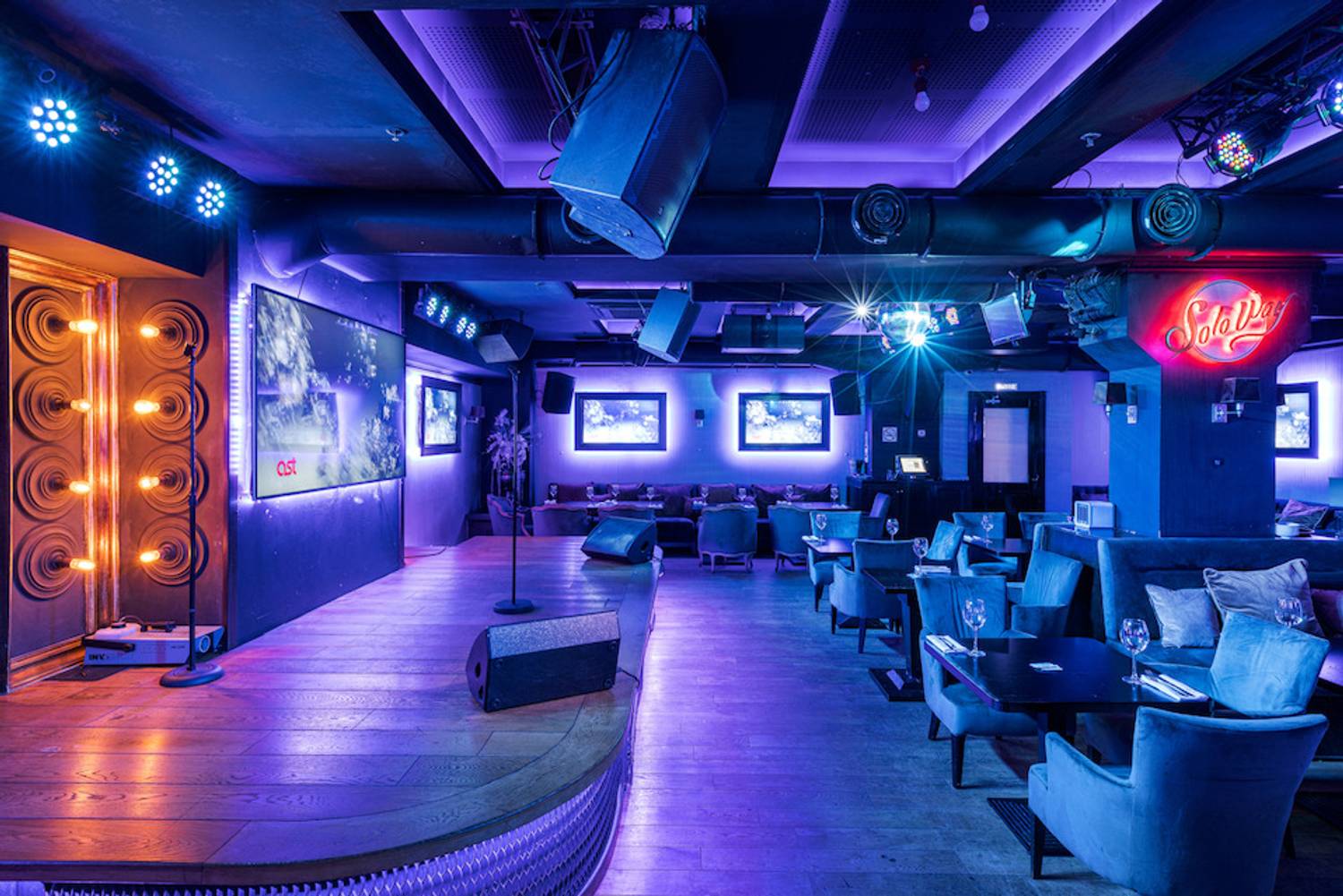 Ночной караоке-клуб "Soloway" на Вавилова — это место, где не соскучишься! Здесь всегда есть чем заняться: яркие вечеринки, диджейские сеты и, конечно, караоке. В клубе пять залов, каждый подойдет для разного настроения. Можно выбрать уютную барную зону с коктейлями и танцполом, а можно забронировать караоке-зал с профессиональным оборудованием для настоящих поклонников пения.