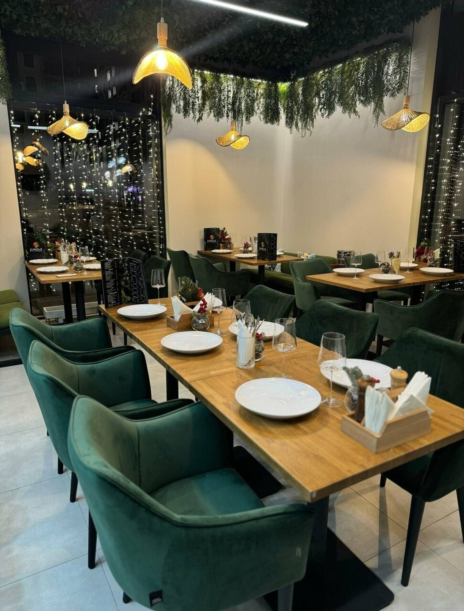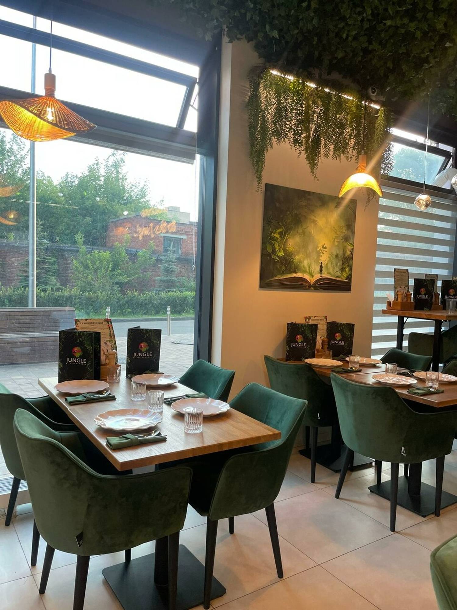Jungle Kitchen&Bar по адресу ул. Тайнинская, 9 — это небольшой гастробар в ЖК «Нормандия» в Мытищах, который превратил обычный вечер в тропическое приключение. Здесь зеленый цвет стал главным героем.