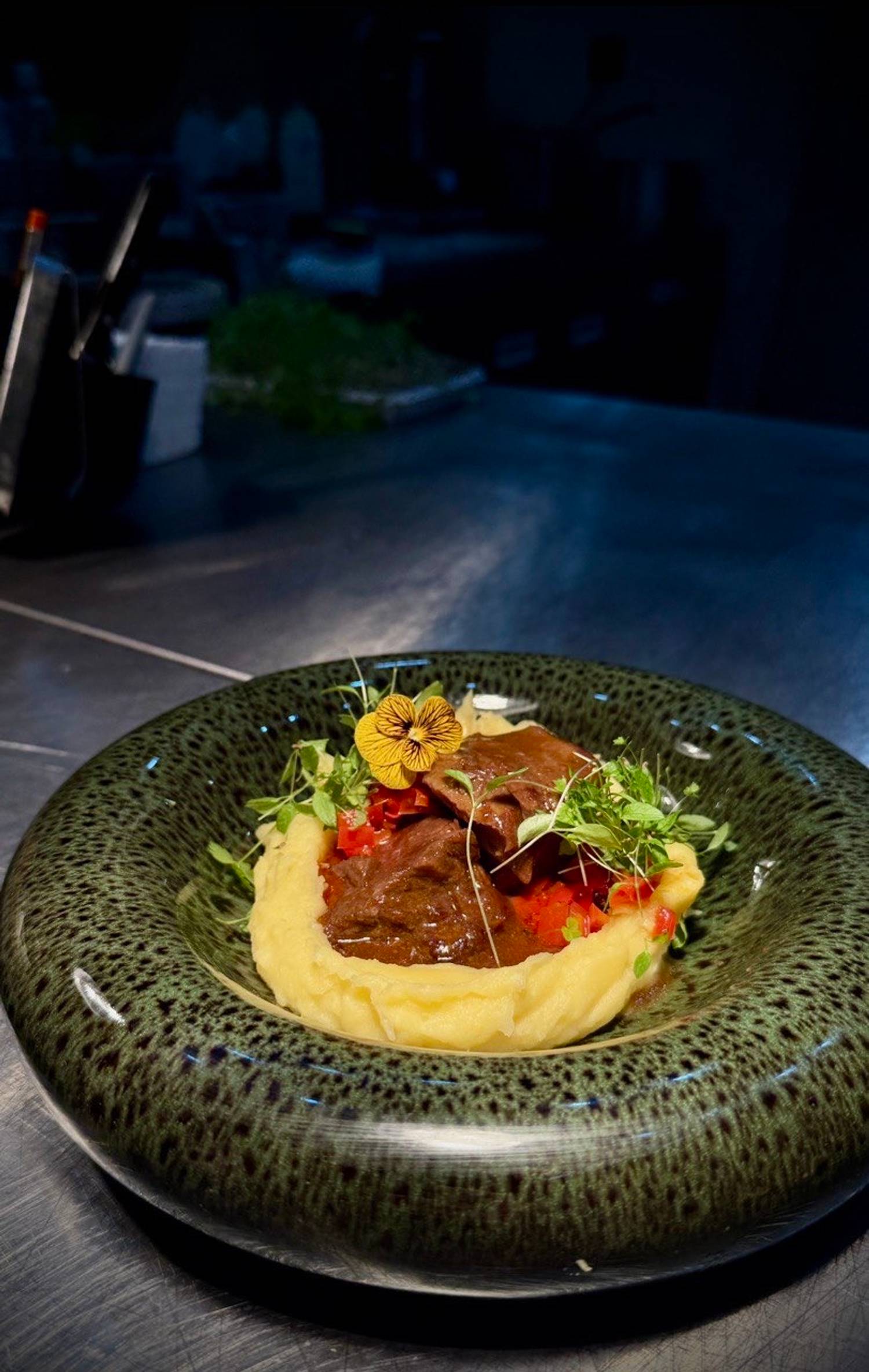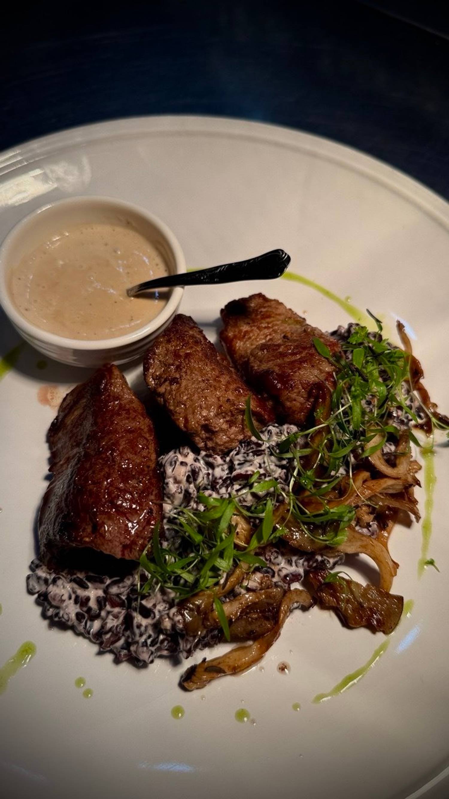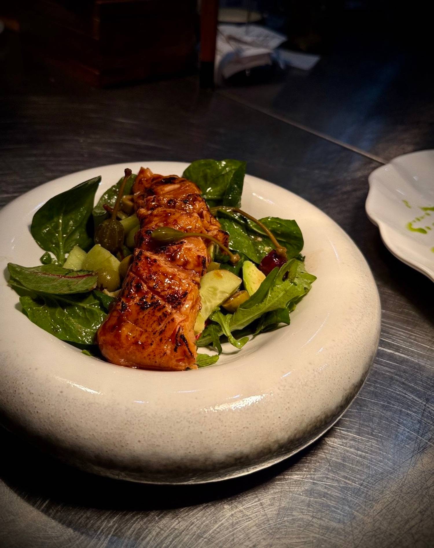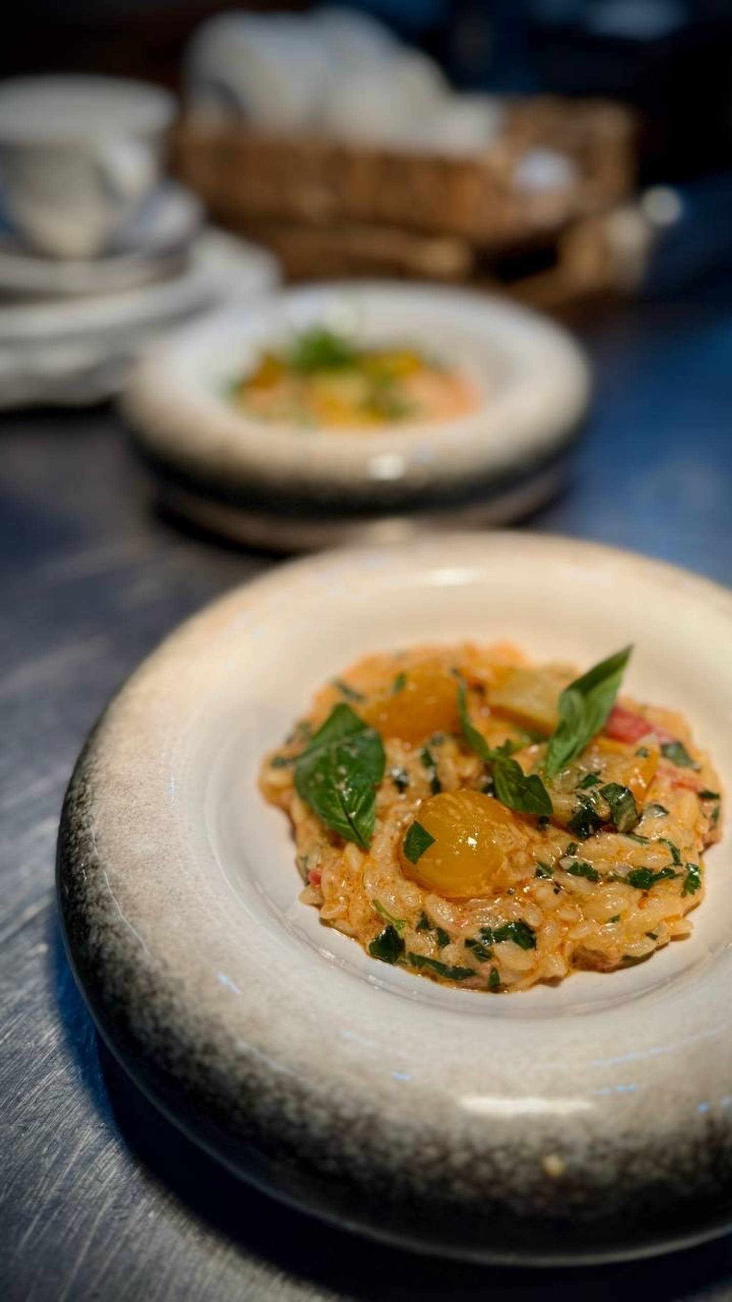 Еда и напитки. Меню здесь — авторские вариации европейской классики с эстетичной подачей и неожиданными акцентами. Буррата с томатами и еловыми шишками — да, те самые шишки, которые добавляют блюду лесной нотки. Авокадо с тартаром из угря — для любителей экспериментов на грани. Брускетта с тартаром из говядины и маринованными опятами — отличный баланс мяса и грибов. Пончики с креветками и печеным соусом терияки — это уже чистое хулиганство, но какое же вкусное. Завтраки здесь тоже с фантазией: японский бриошь с омлетом и лососем, ленивые сырники из топленого творога с ягодами, круассан с манго и маракуйей. Сладость, свежесть, экзотика — и все это до обеда. Барная карта — отдельная гордость. Авторские коктейли с названиями, от которых улыбаешься: «Персиковый шампань», «Рафаэлло», «Тукан». Последний, видимо, в честь тех самых птиц, что сидят на стенах. Лёгкие, фруктовые, с правильным балансом — идеальное сопровождение для тропического вечера.