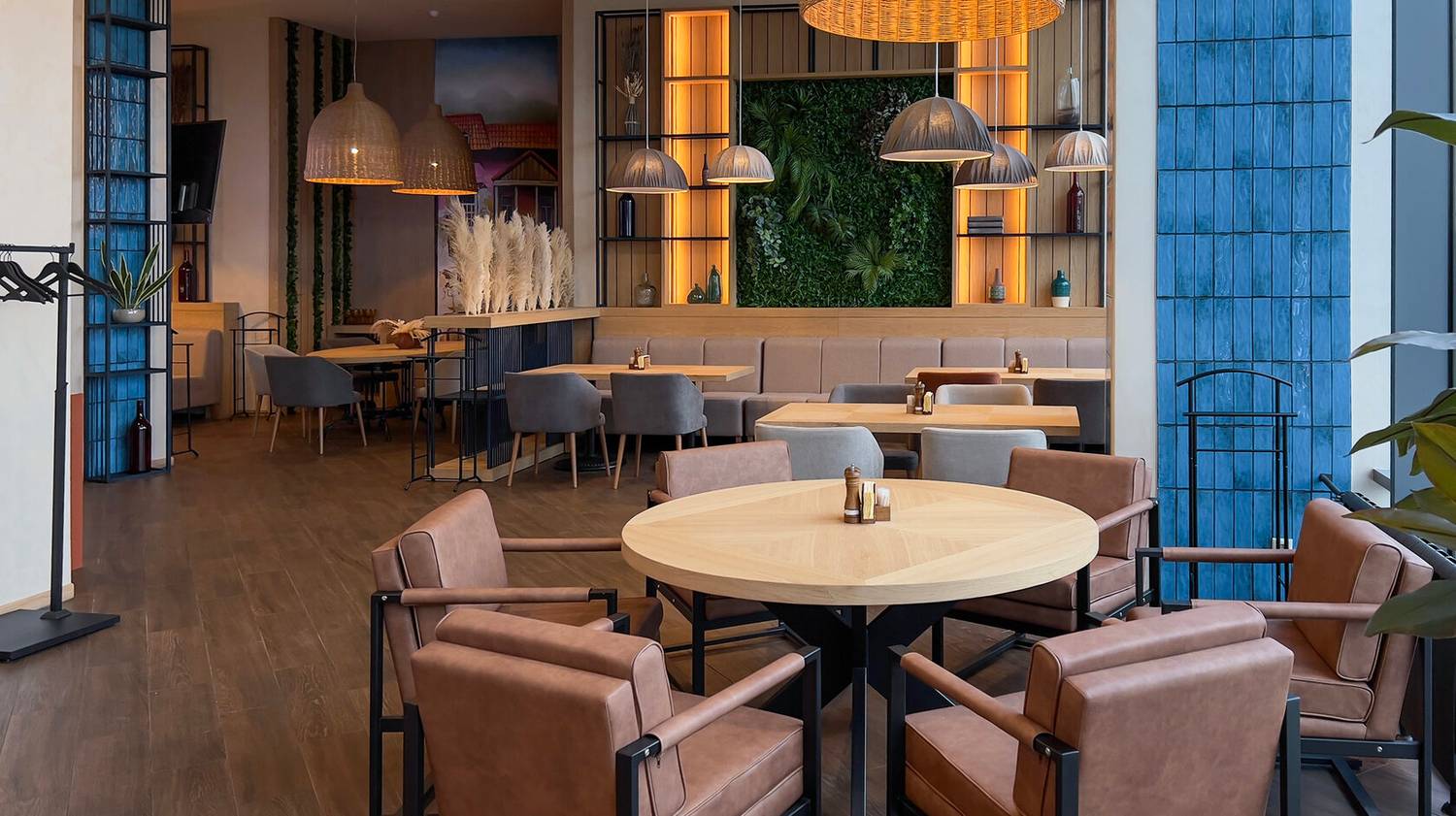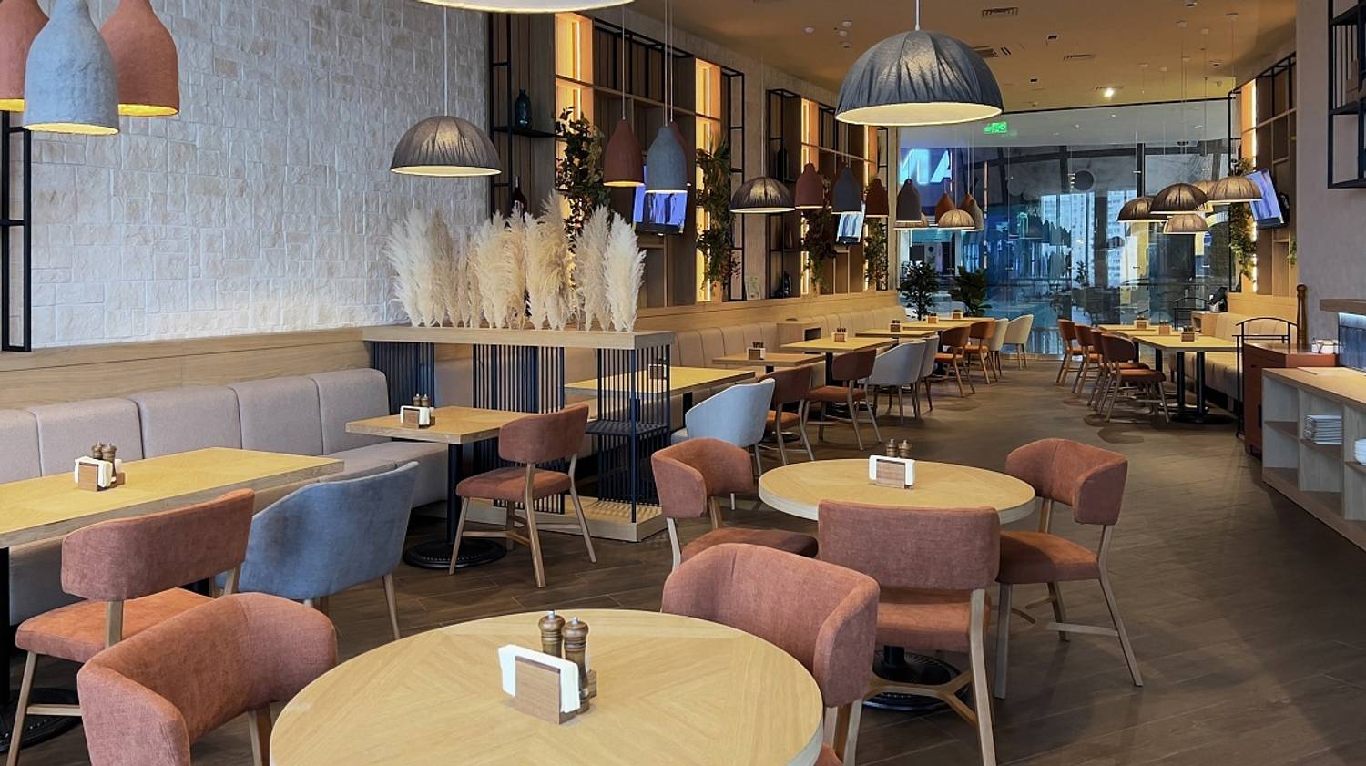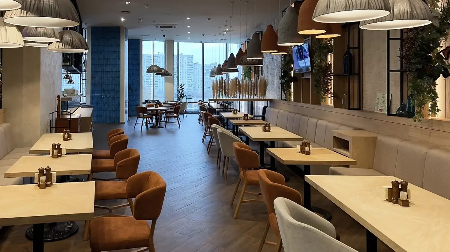 Атмосфера. Интерьер сочетает традиционные грузинские мотивы с современным дизайном: например, привычный для Грузии терракоторый цвет здесь воплощен в стильных креслах. Это создает уютную обстановку для семейных обедов, дружеских встреч или деловых ужинов.