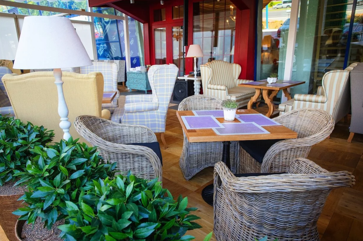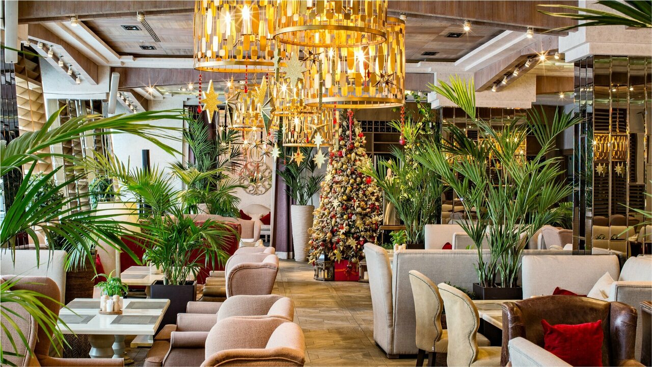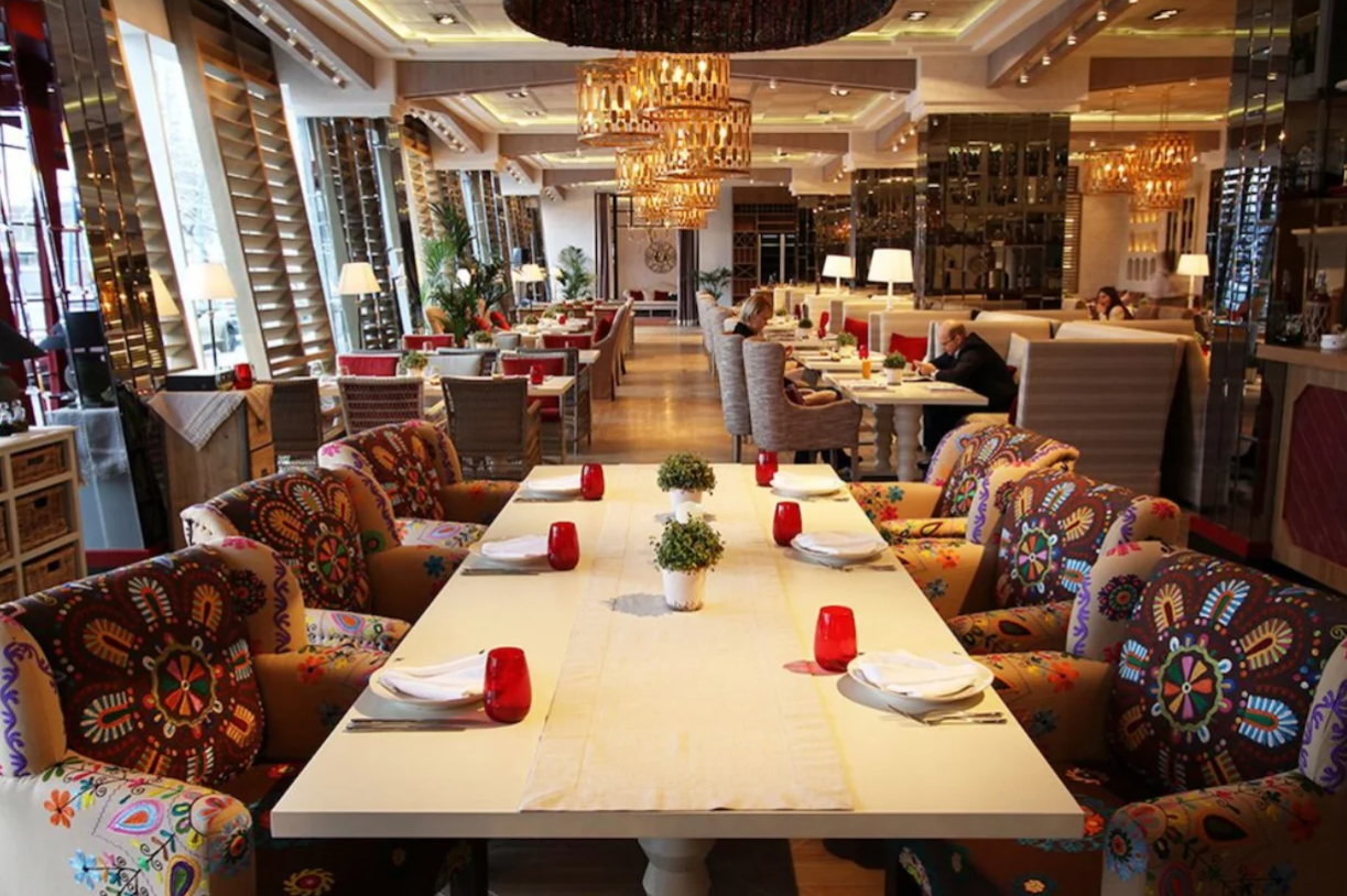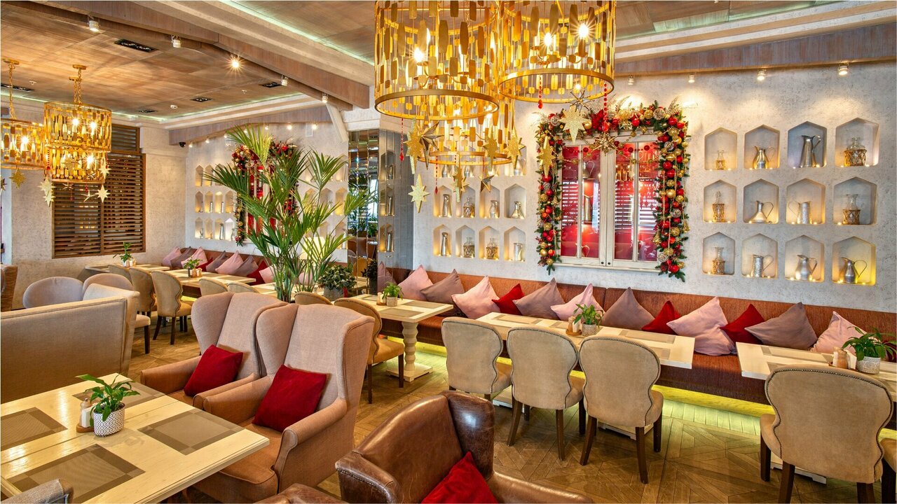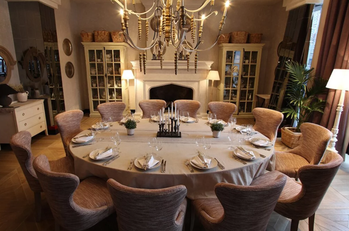Атмосфера. Заведение занимает около 1000 квадратных метров и разделено на основной зал с открытой кухней, банкетный зал и летнюю веранду. Здесь есть аквариум с устрицами и крабами, а также предусмотрена современная подача блюд на хоспере.