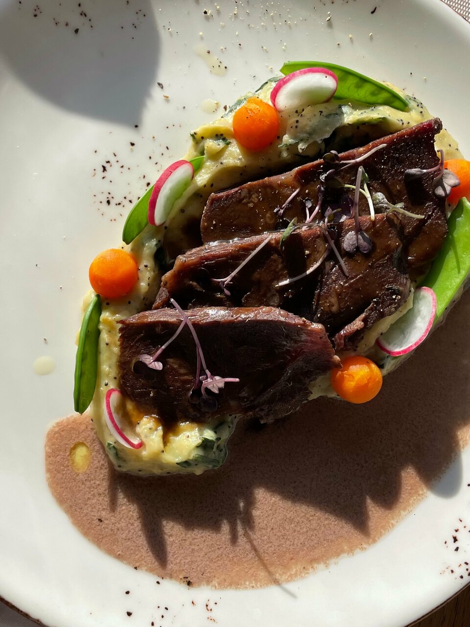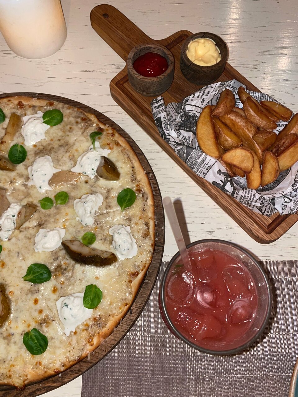 Еда и напитки. В меню — миньон из говядины, каре ягненка, рыбные позиции, завтраки, суши и авторские закуски. Барная карта включает вина, коктейли и пиво.