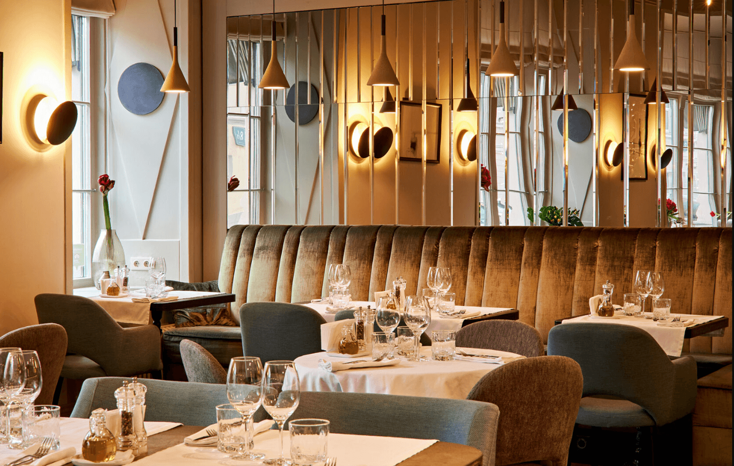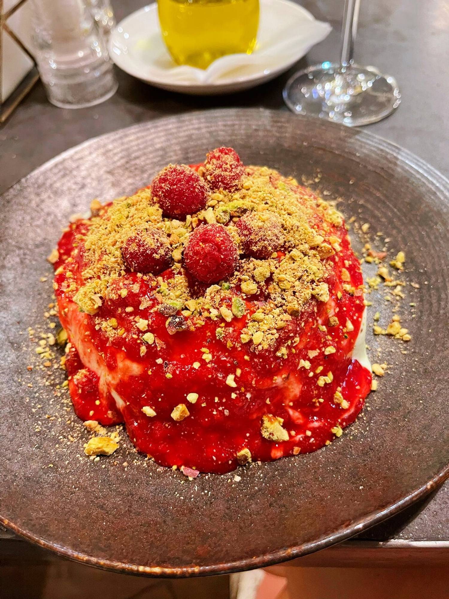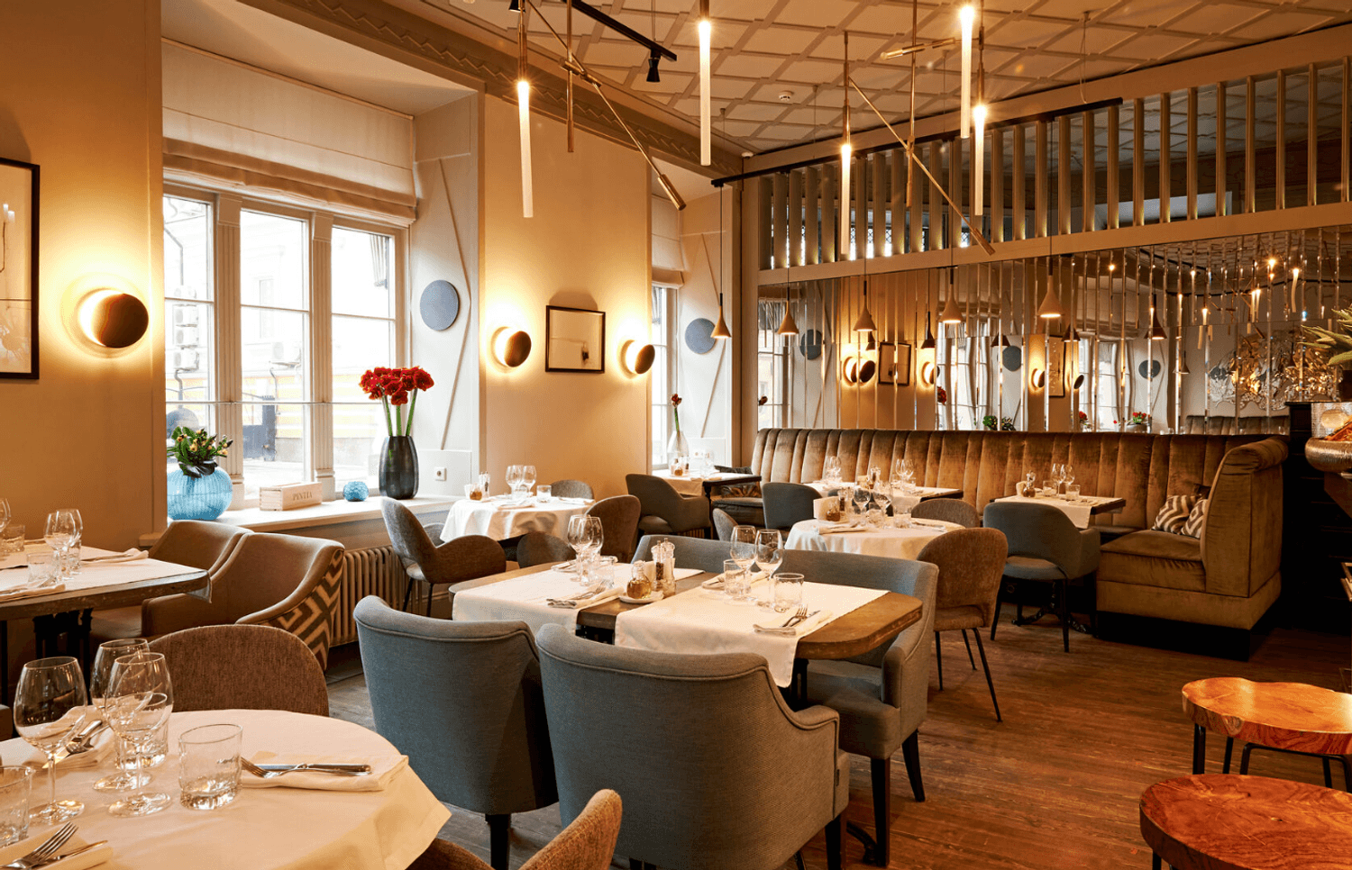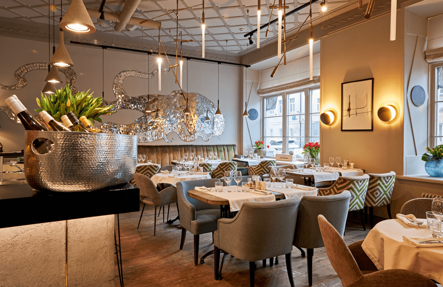 Еда и напитки. В меню — итальянская классика с элементами французской кухни: от закусок вроде карпаччо из сибаса и тартара до лингвини с вонголе, ризотто с белыми грибами и томленой телячьей голени оссобуко. Особый акцент — на рыбу и морепродукты: кальмар на гриле, вонголе соте, вителло тоннато.