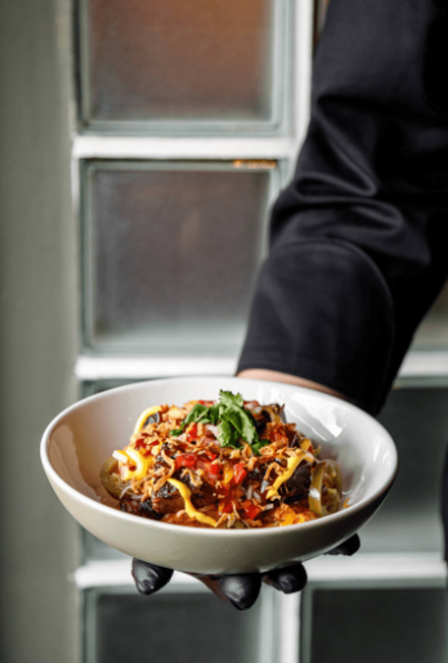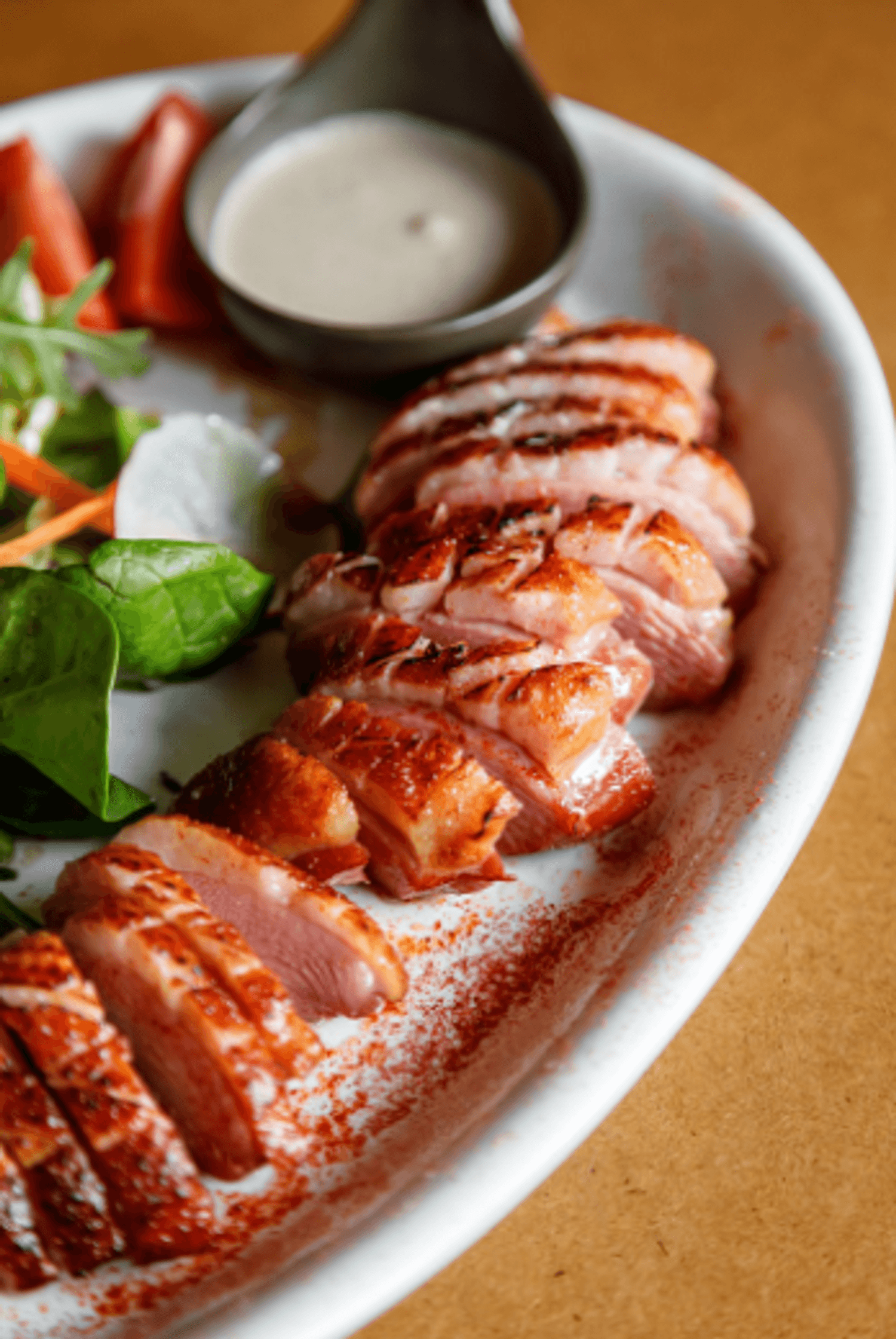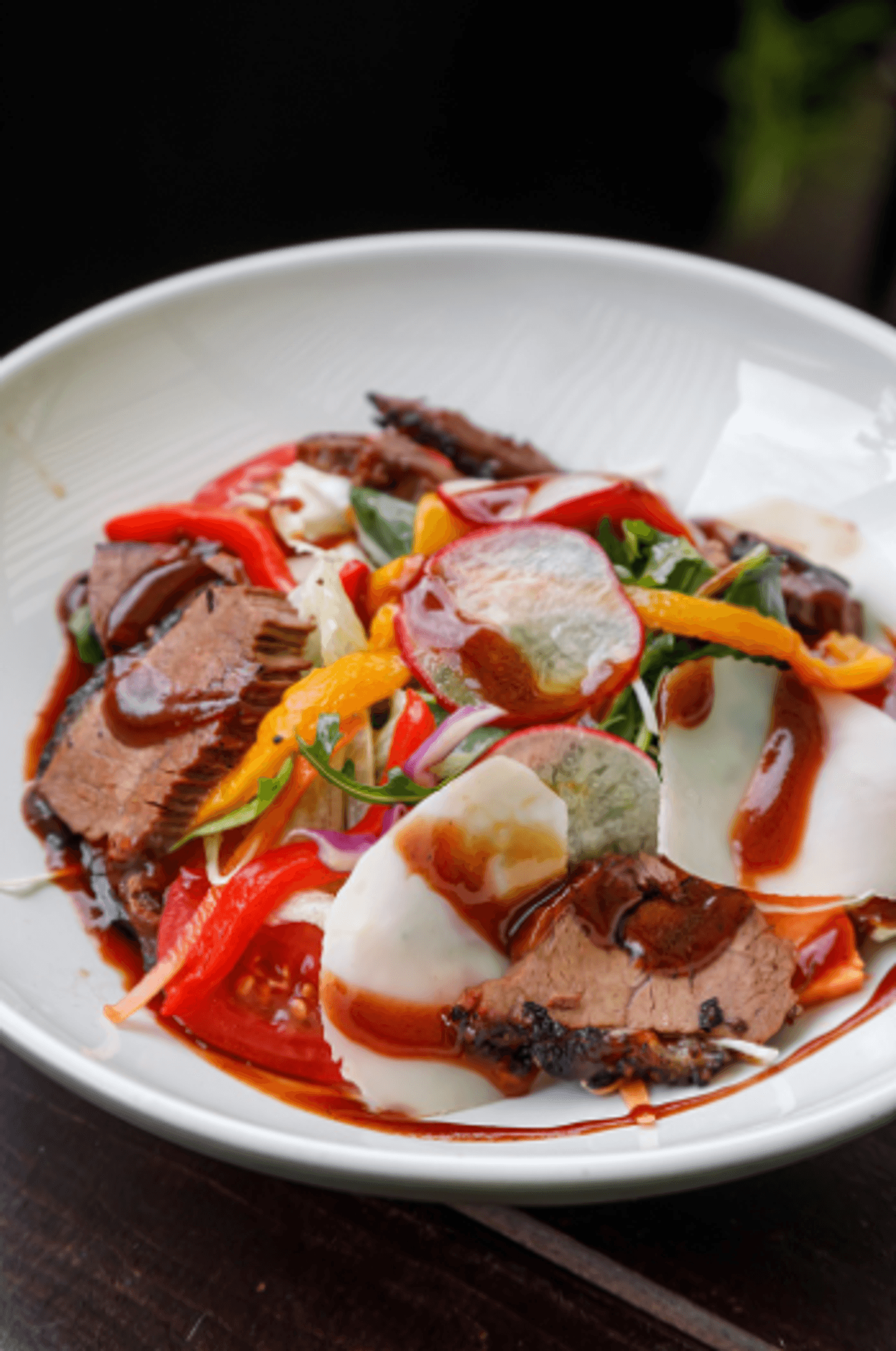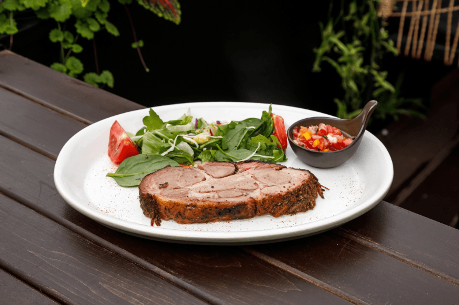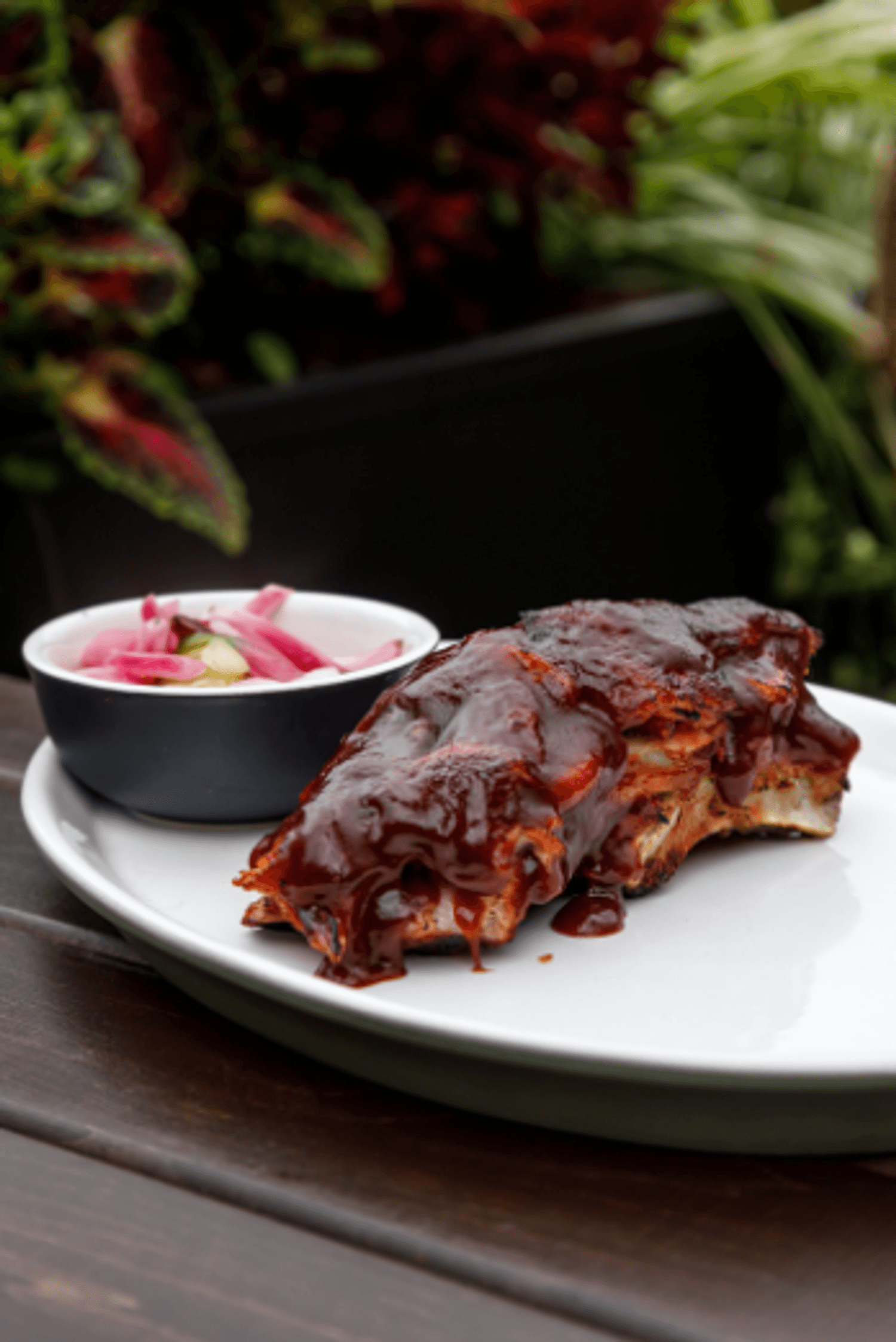 Еда и напитки. Основу меню составляют блюда, приготовленные в смокере: брискет, свиные ребра BBQ, ребра кальби в апельсиновом соусе. Также подают сэндвичи, тако, бургеры и донеры. В баре представлены коктейли на пиве и сидре, крафтовое пиво и вина.