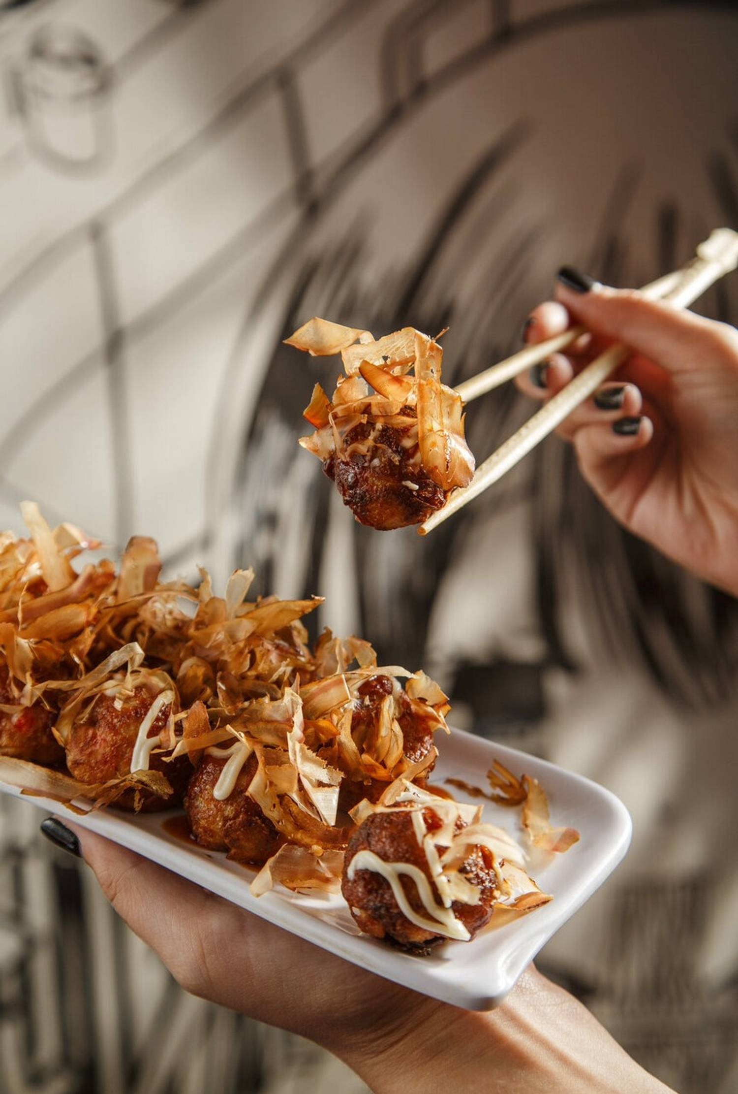 Еда и напитки. В меню — японский уличный фастфуд: хрустящая курочка карааге, обжаренные гедза, наваристые рамены с разнообразными начинками и традиционные десерты моти. Из напитков — японское бутылочное пиво, классические чаи, соки и освежающие лимонады.