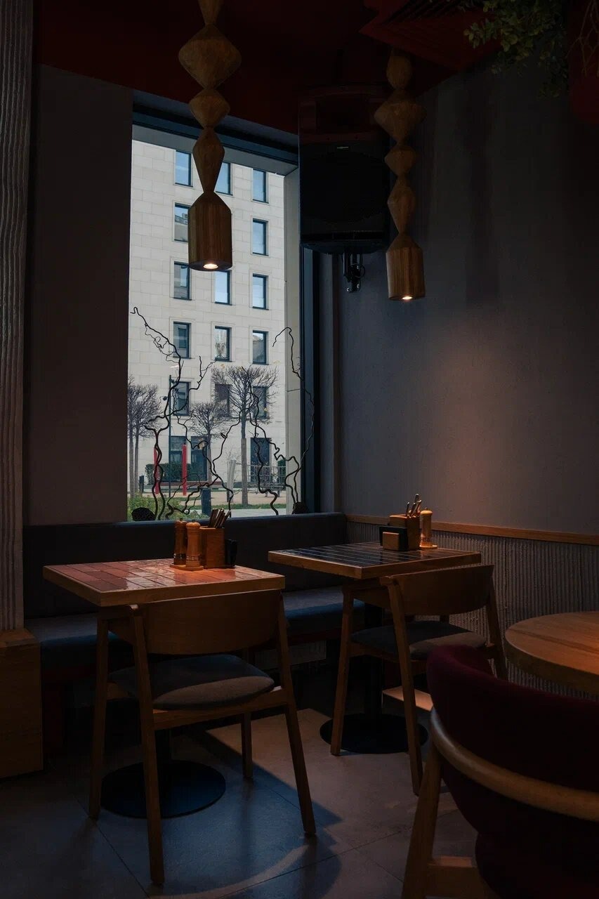 Еда и напитки. В меню — азиатские блюда: креветки васаби, черная лапша с угрем, азиатский цезарь, баклажаны с мандаринами. Тут готовят суп том кха и том ям. На десерт предлагают сырники с малиной и сметаной, моти банан-карамель.