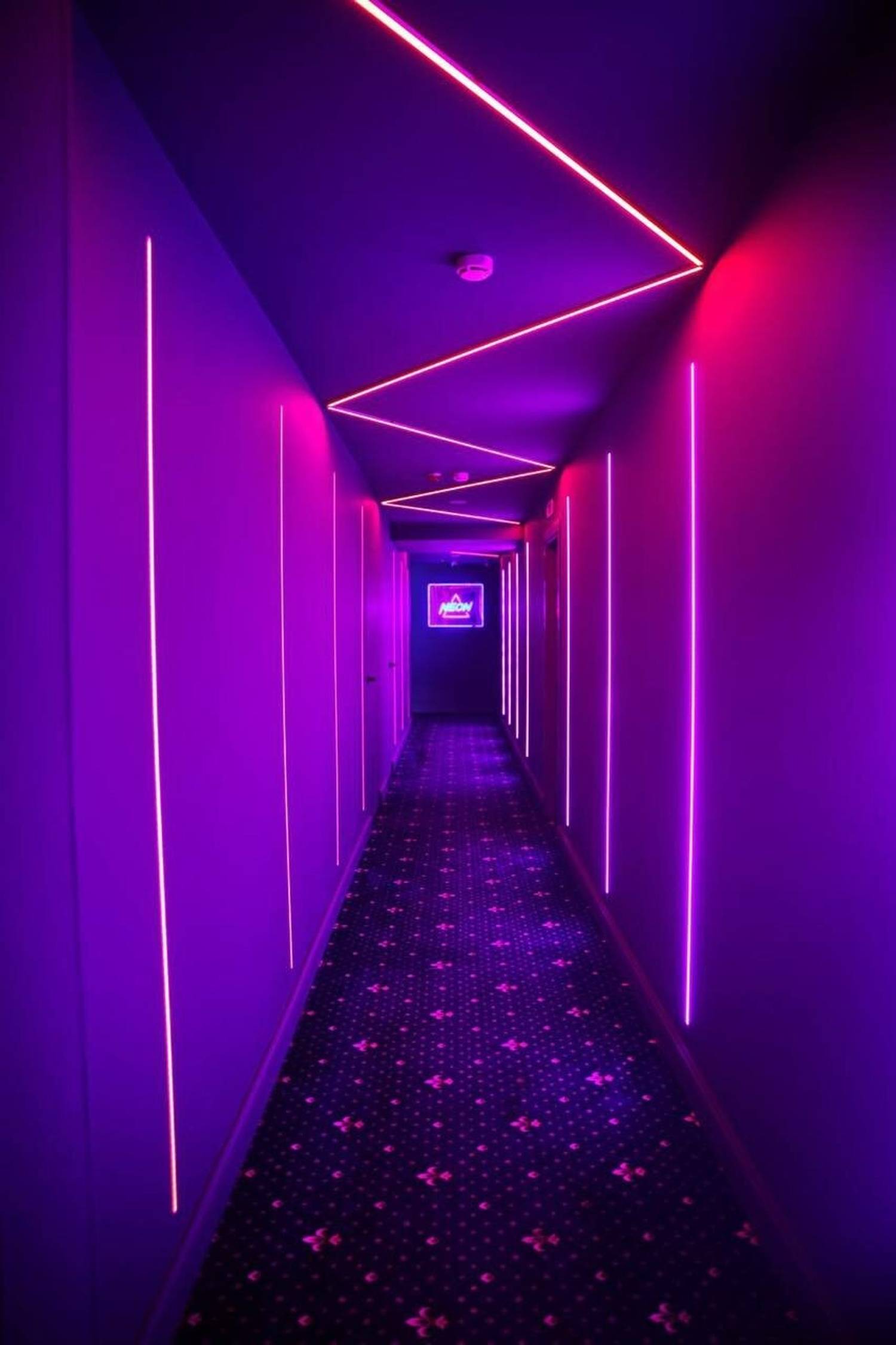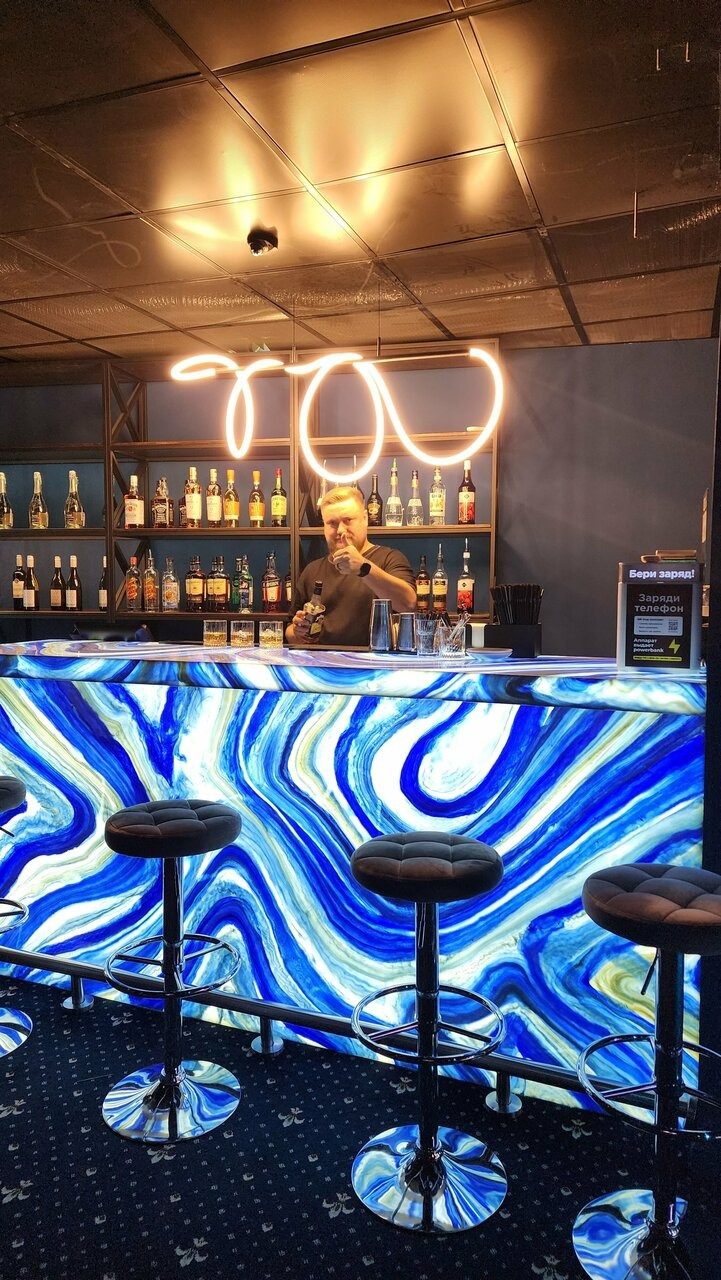 Атмосфера. Интерьер отражает название клуба: барная стойка с неоновыми градиентами, зигзагообразная подсветка на потолке в коридоре и красочные неоновые рисунки-разводы на перегородках. Здесь есть как основная площадка, так и отдельные VIP-комнаты.