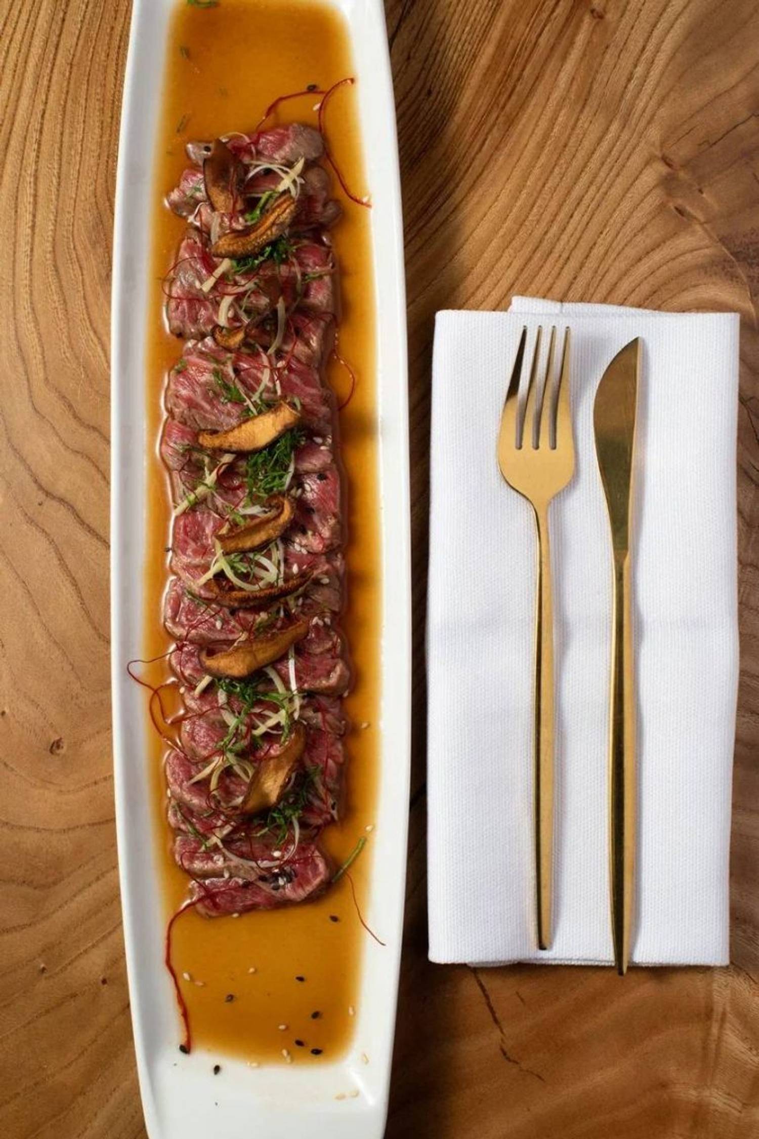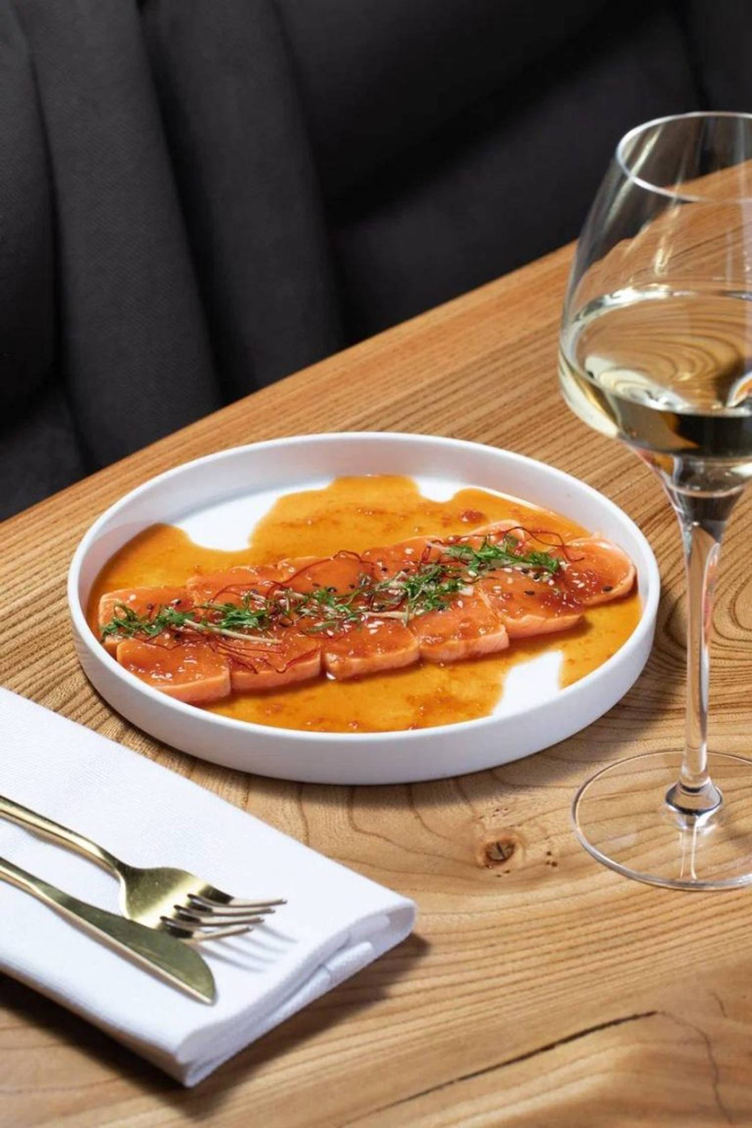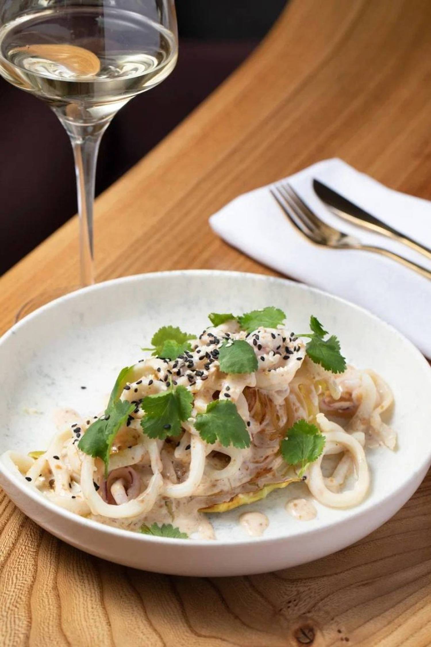 Еда и напитки. В меню — европейская классика с авторской интерпретацией: луковый суп, бифштекс из дикого лося с трюфельным пюре, цыпленок с кокосовым карри, утиная ножка конфи с яблоком и чипсами из топинамбура. Из пасты готовят голубое ризотто с кальмаром и креветкой, тальятелле с щечками. На десерт предлагают крем-карамель и грушу в красном вине с кардамоном.
