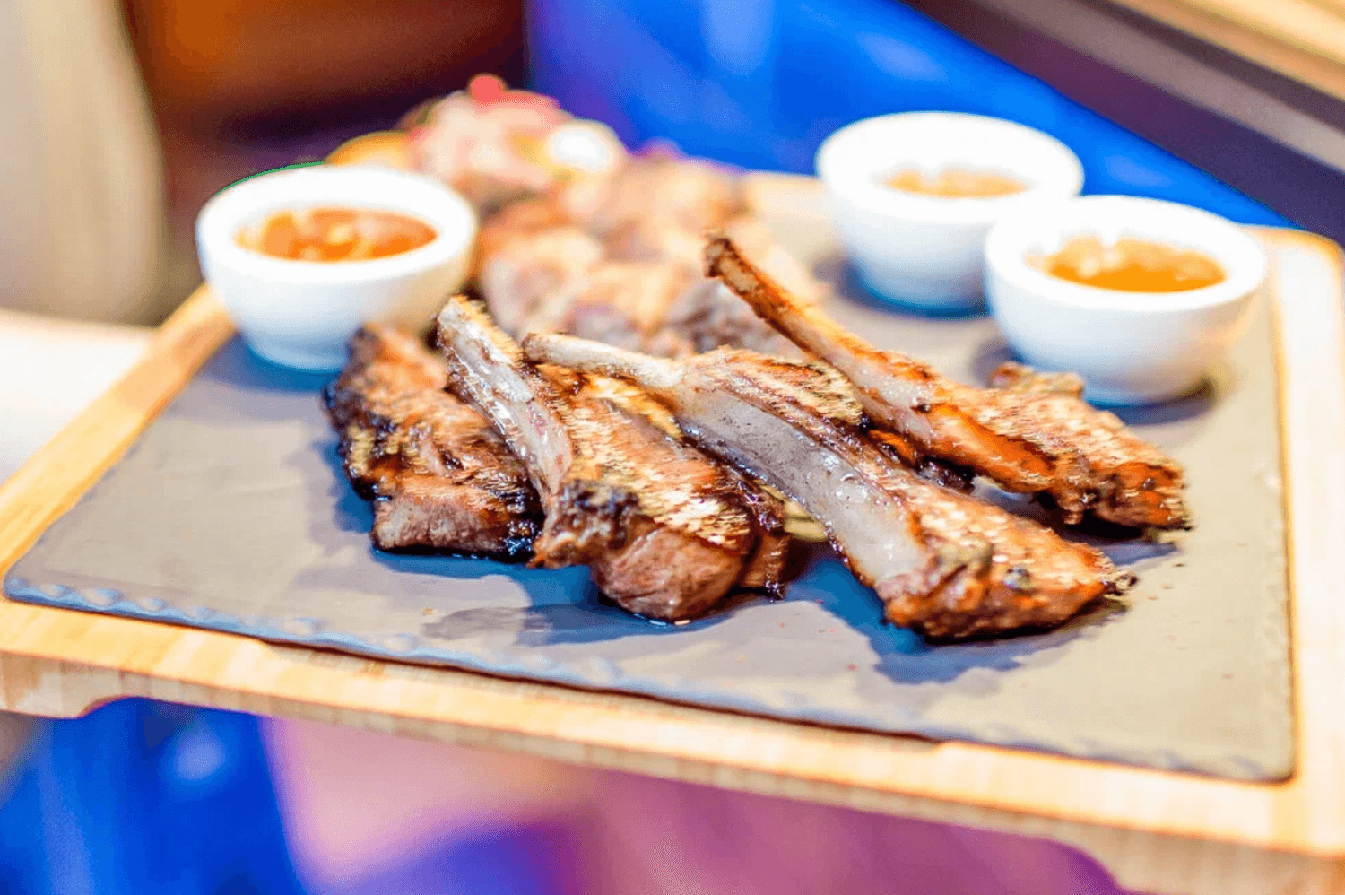 Еда и напитки. В меню — итальянская кухня и мясные блюда: на первом этаже готовят тальятелле с грибами и римскую пиццу том ям, на втором — стейк топ-блейд, шашлык из баранины. Можно заказать стейк-ужин и попробовать сразу несколько видов мяса.