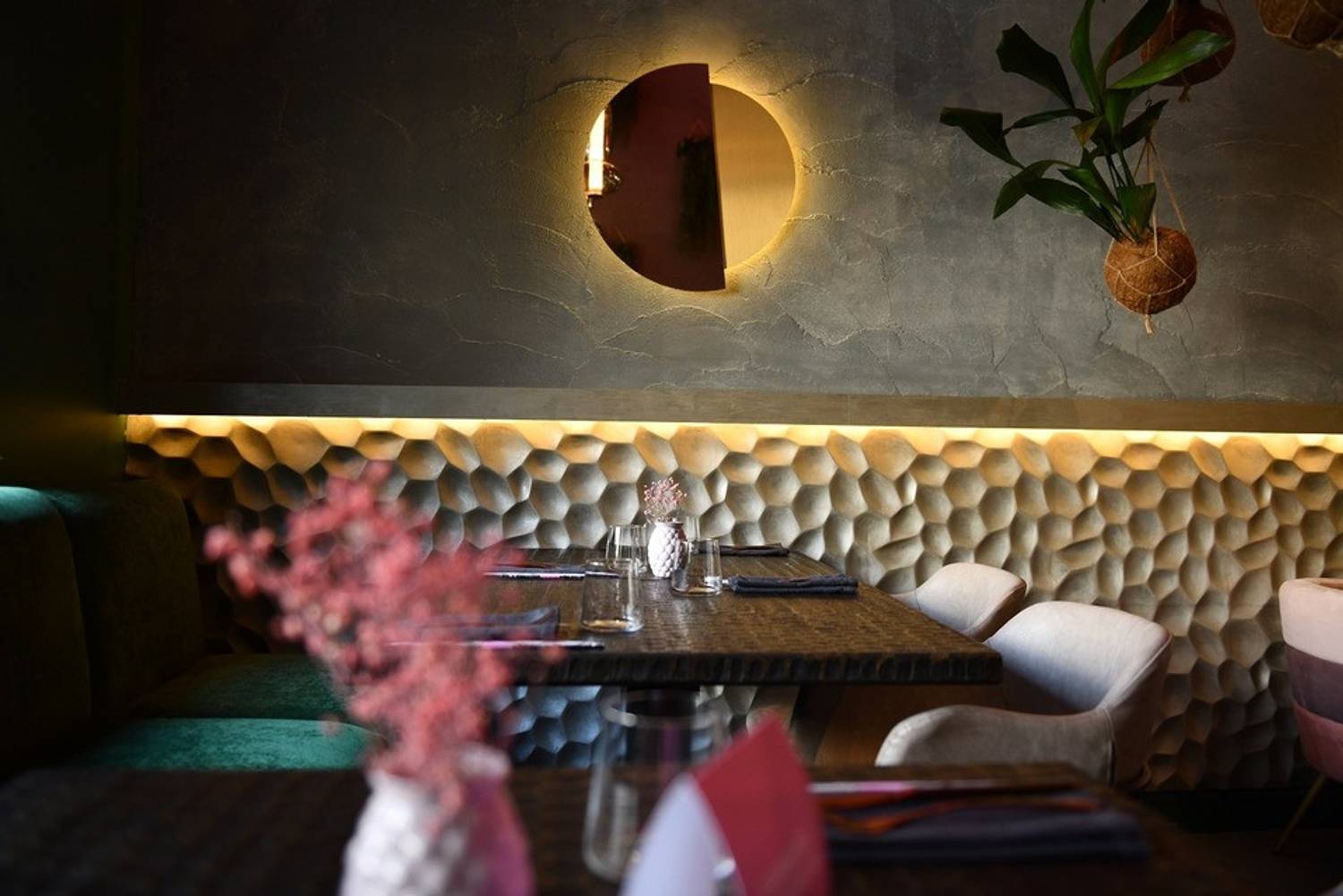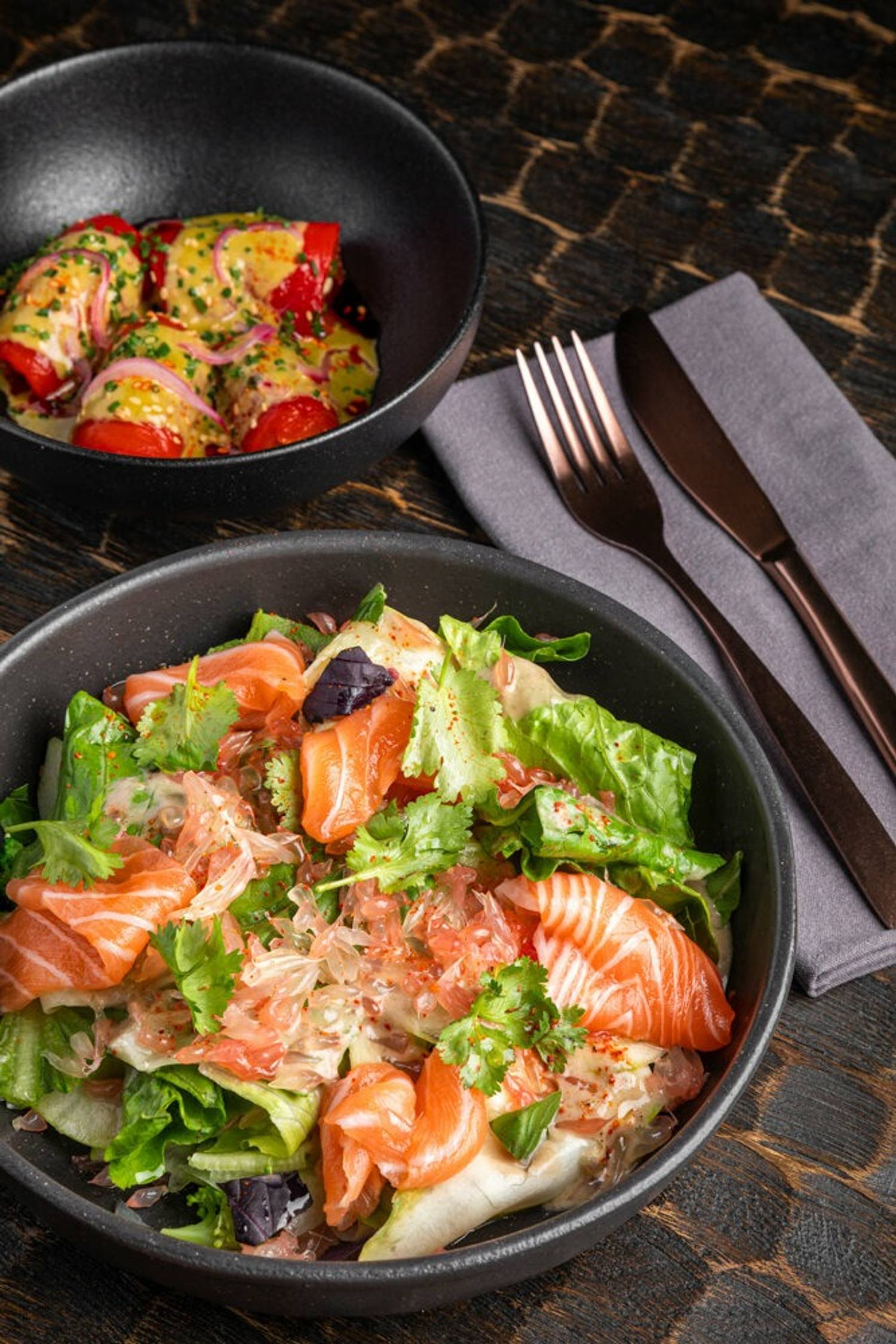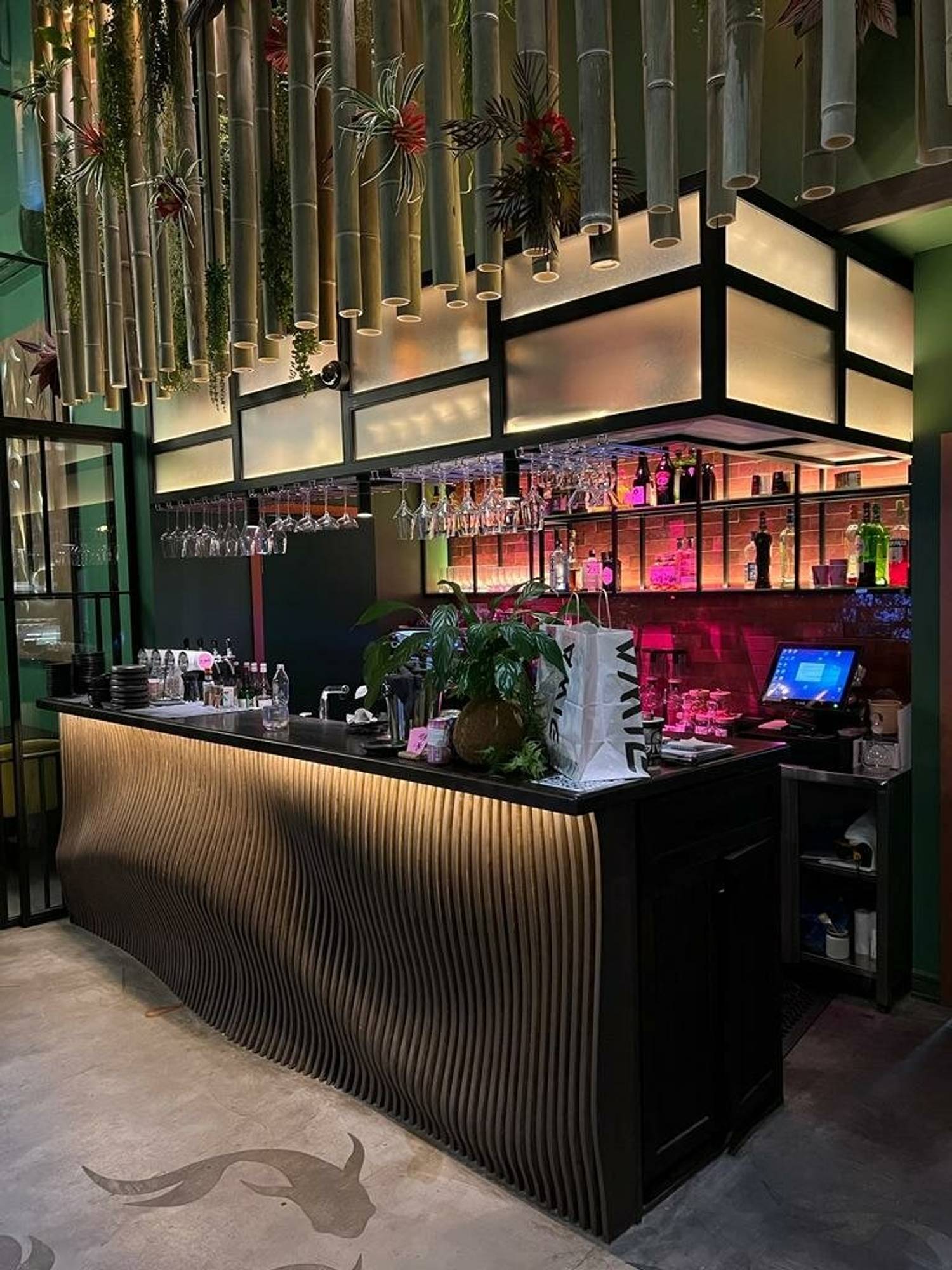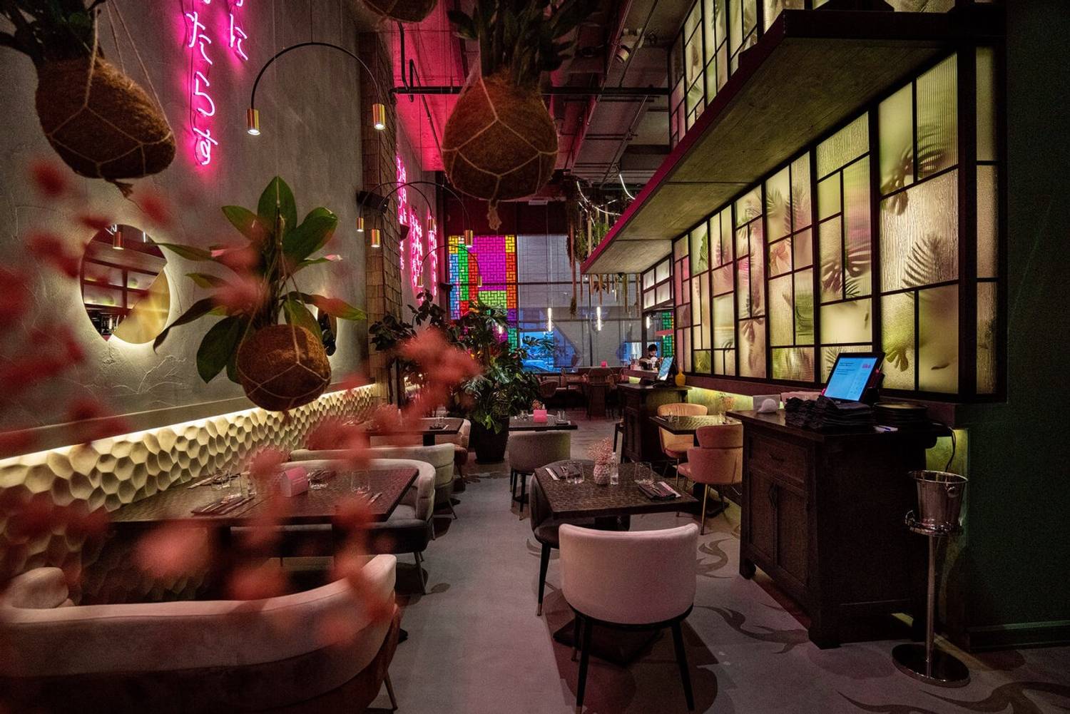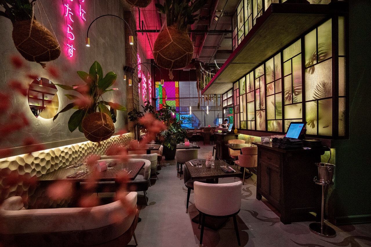 Еда и напитки. В меню — паназиатская кухня в авторском прочтении: ролл цыпленок темпура в сырном соусе, опаленный лосось с апельсином и крабом, 5 видов поке: с тофу, креветками, лососем, угрем и тунцом. Также готовят лапшу с кальмаром и креветкой в соусе из тунца, спайси мак-н-чиз с угрем и брокколи с романо и миндалем, дамплинги в креветочном биске. На десерт стоит попробовать жженый шоколад или банановый пирог с кокосовой матчей.