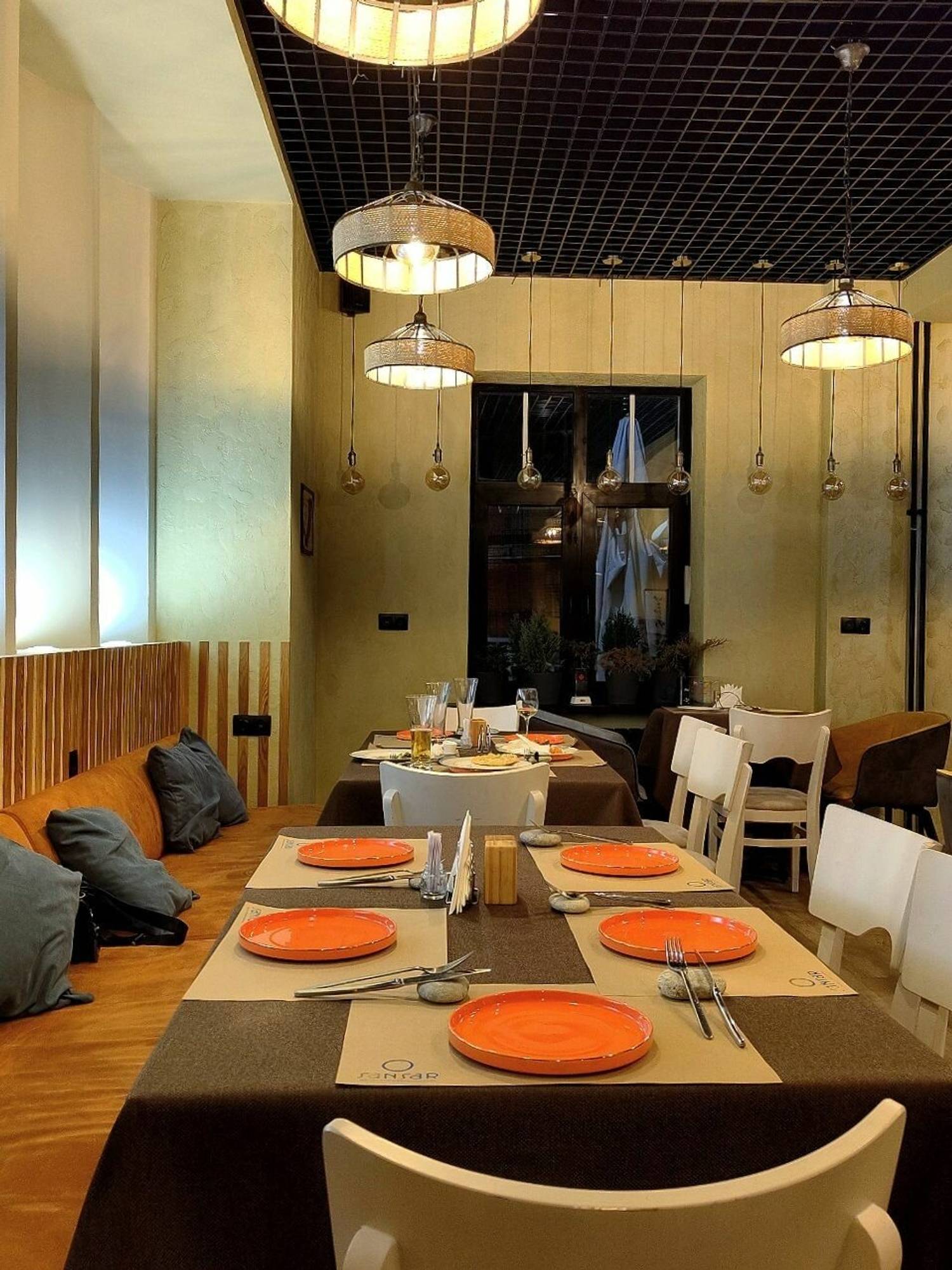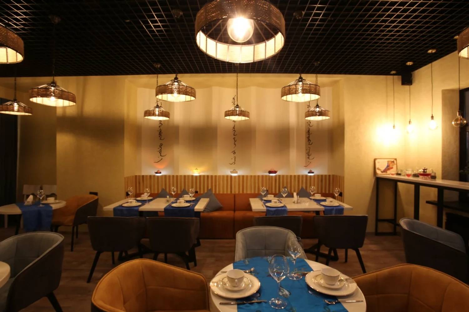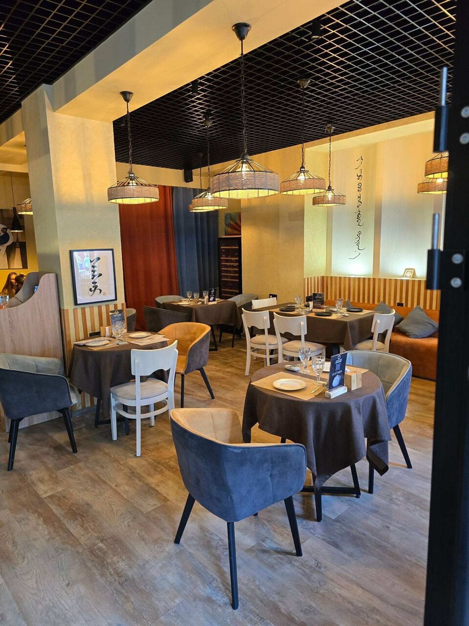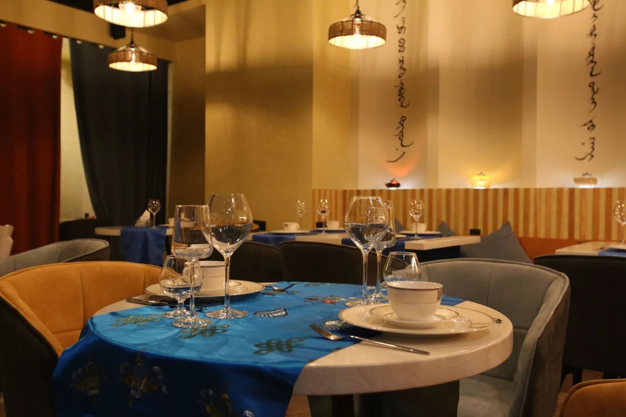 Атмосфера. Уютный зал с приглушенным светом, драпировками и светильниками в форме якутских юрт создает интимную обстановку: здесь кажется, что вы действительно находитесь где-то в вечерних монгольских степях. А летняя веранда в тенистом дворике позволяет насладиться трапезой на свежем воздухе с возможностью принести собственные напитки.