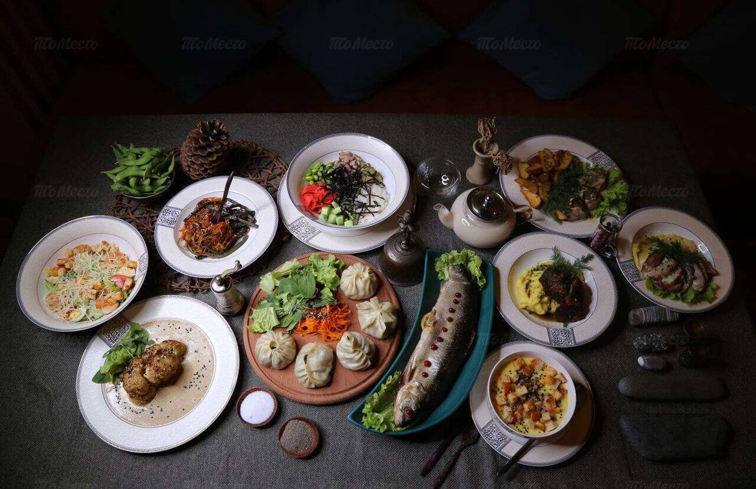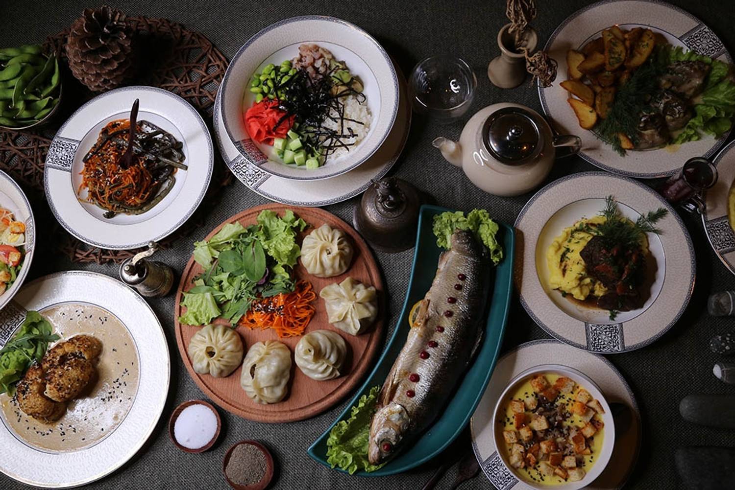 Еда и напитки. Шеф-повар с французским бэкграундом готовит байкальского омуля (слабосоленого, копченого, свежего), сига, муксуна и хариуса, а также буузы с бараниной из Джидинского района, хуушуры, язычки с белыми грибами и черемуховый торт. Напитки включают соленый чай кочевников, ягодные настои и перспективную карту бурятских дистиллятов.