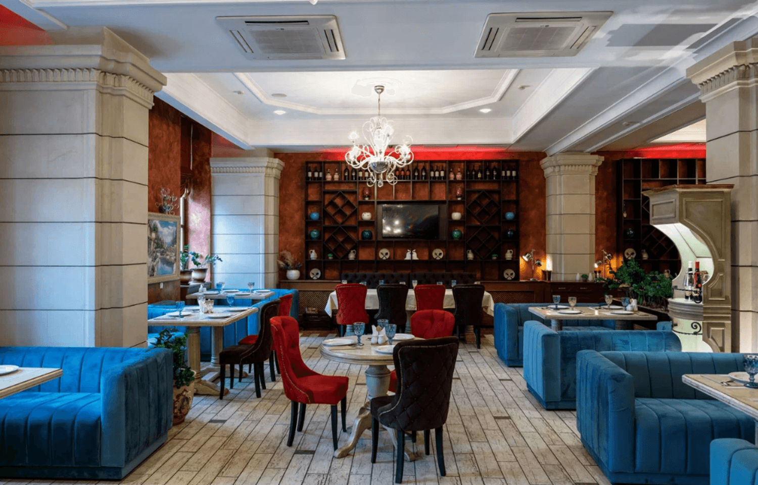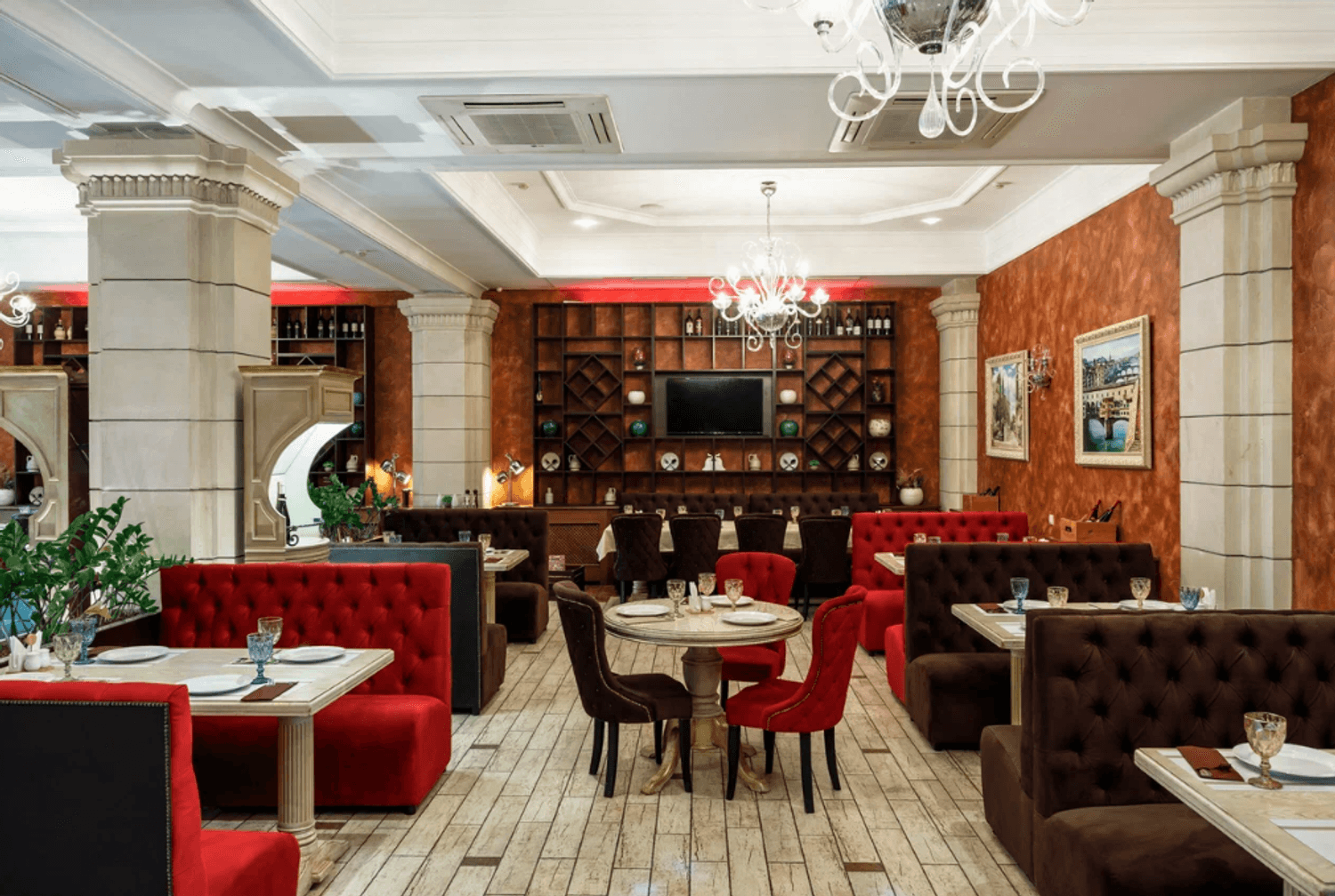 Меню ресторана сочетает итальянскую и кавказскую кухни, предлагая блюда на любой вкус. Здесь можно попробовать традиционные пасты, пиццы и настоящие кавказские шашлыки, хачапури и другие блюда.
