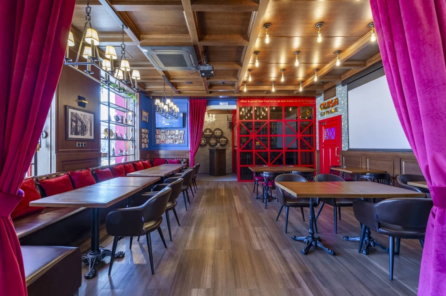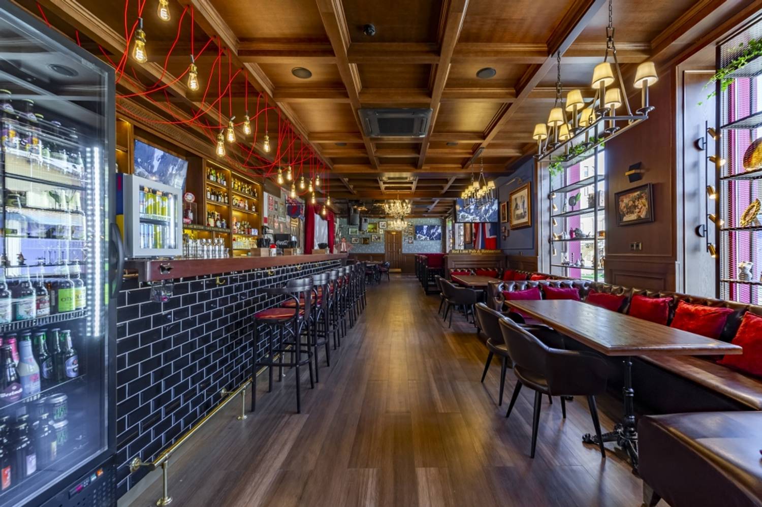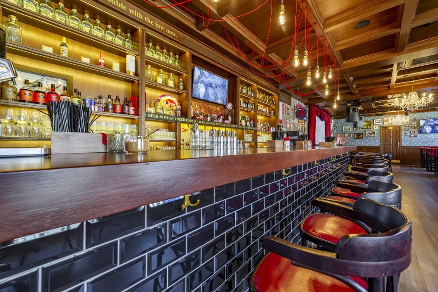 Атмосфера. Интерьер передает дух исторического паба: темное дерево, приглушенное освещение и телевизоры для спортивных трансляций. По выходным здесь играют живые музыканты и диджеи.