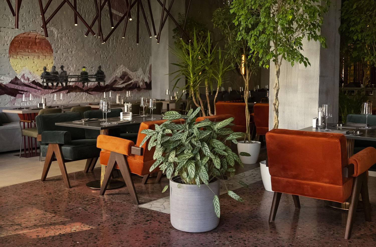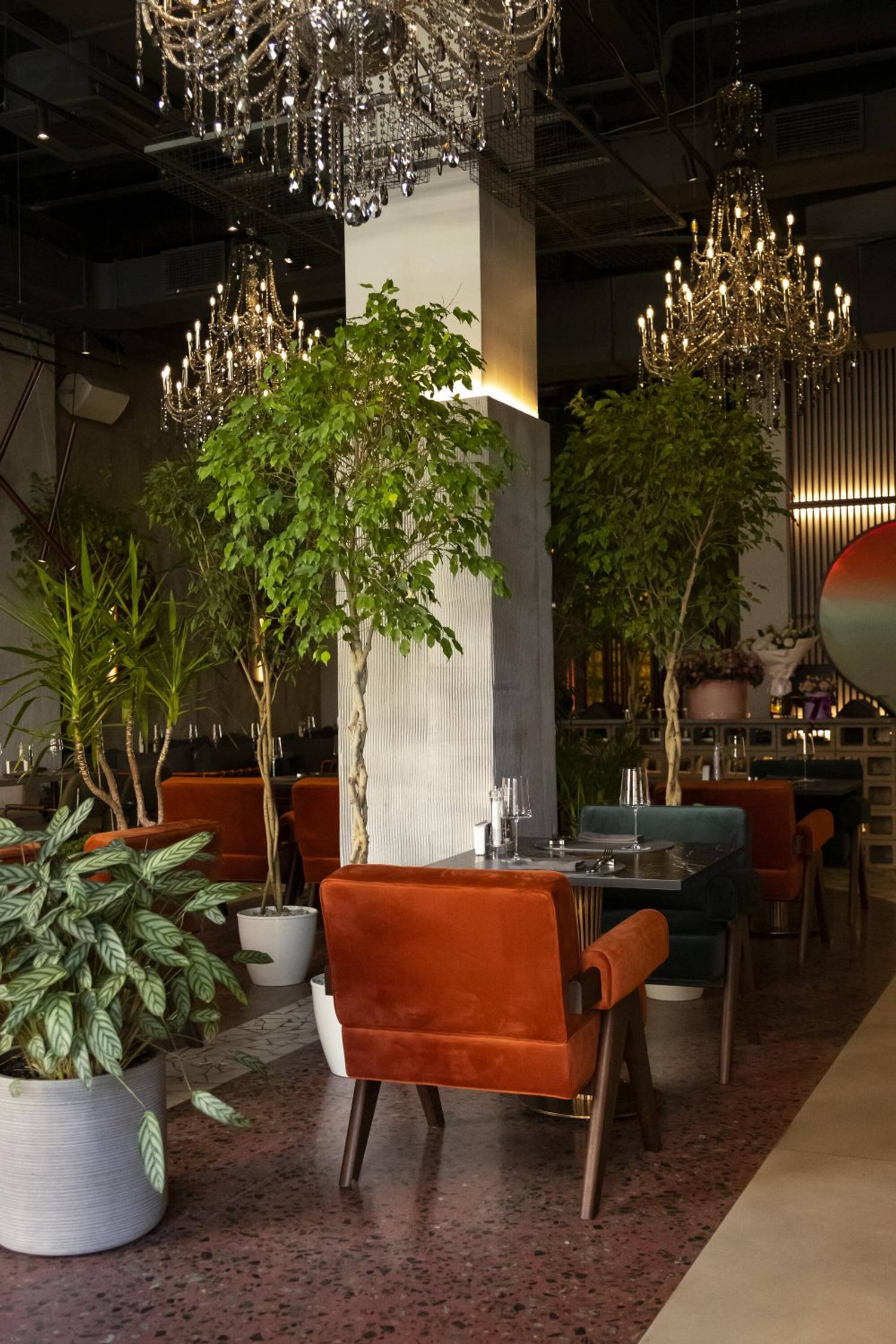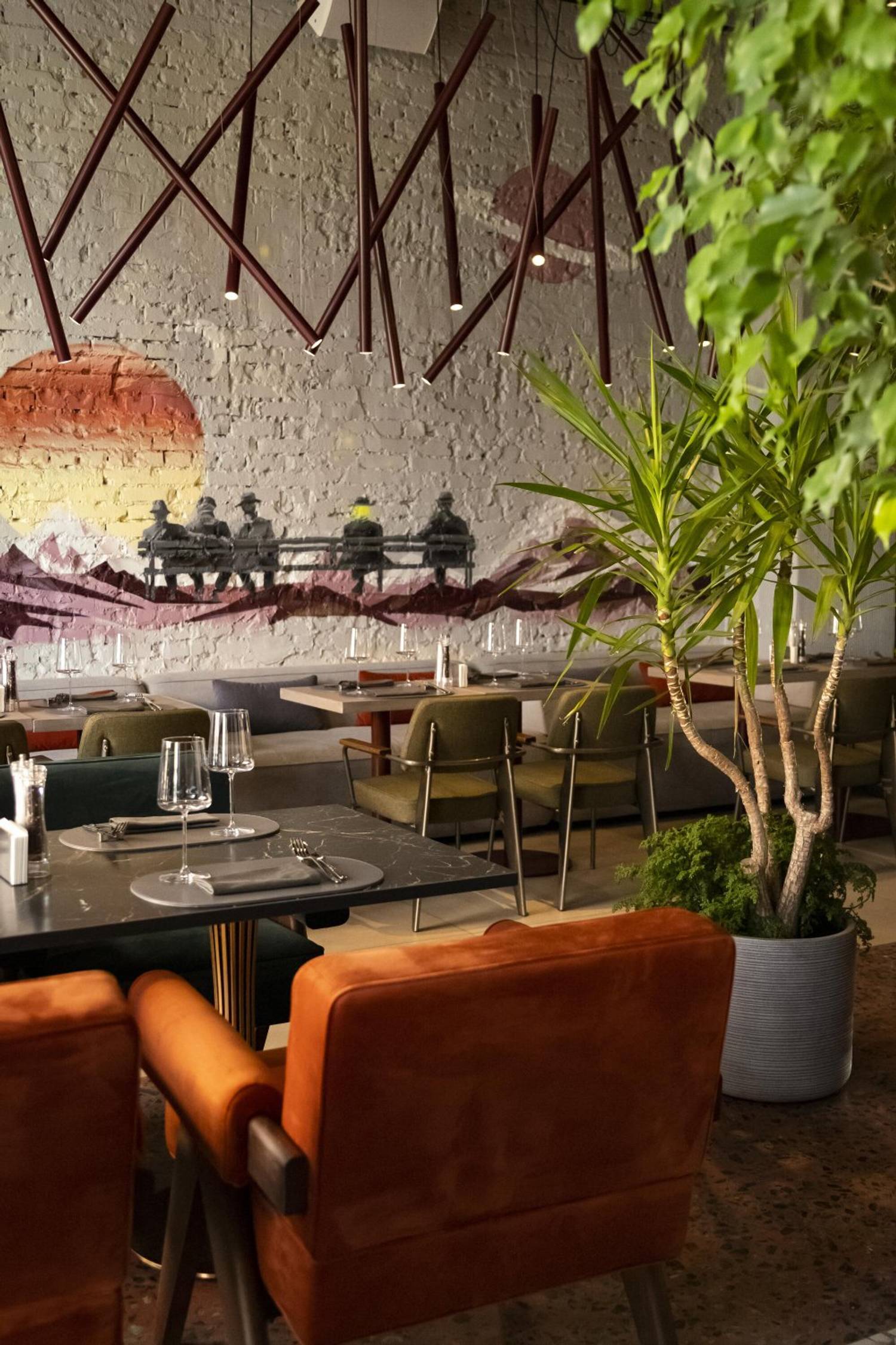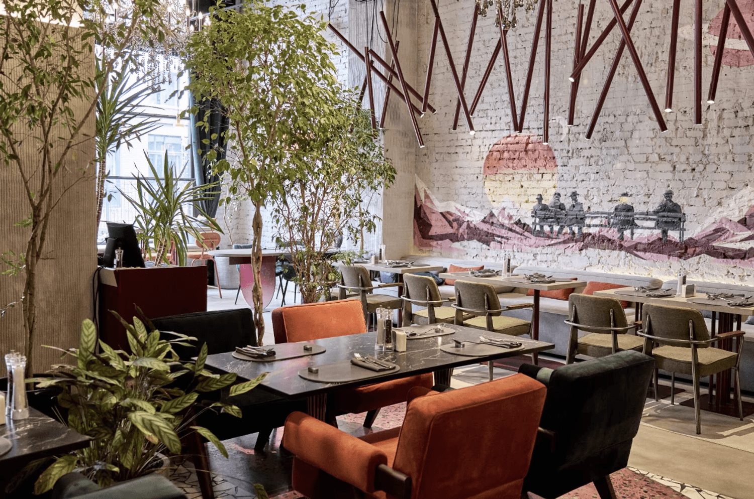Атмосфера. Современный интерьер с панорамными окнами, зонированием под разные сценарии: светлый зал для завтраков, лаунж-зона с низкими диванами и отдельный кальянный зал. По вечерам мягкое освещение сменяется неоновыми акцентами для вечеринок.