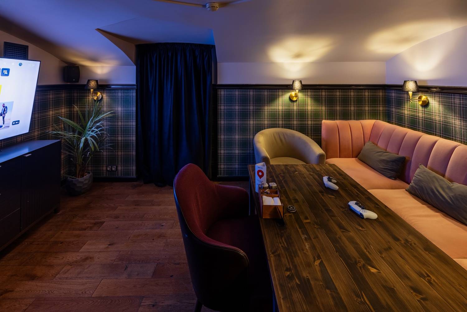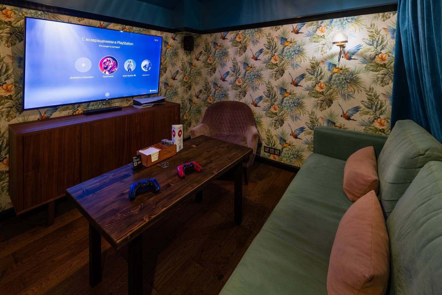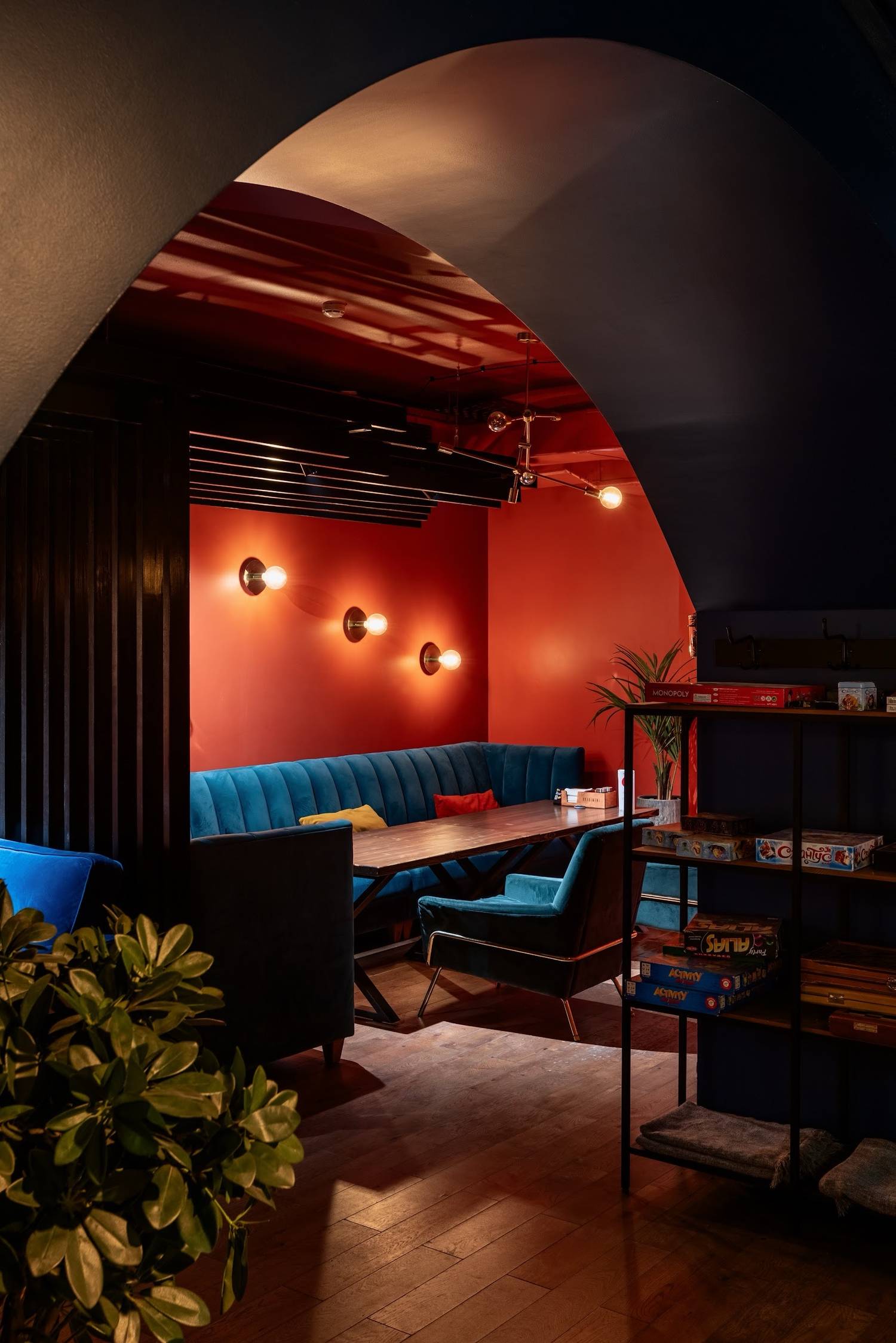 Атмосфера. Элегантная обстановка с элементами старинного стиля: сочетание синих, терракотовых, красных и зеленых оттенков, яркая картина Сальвадора Дали, винтажный проигрыватель и бра с приглушенным светом. Гостям точно запоминается и картина черного кота с бокалом вина и постеры с цитатами. Для небольших компаний есть VIP-комнаты. Здесь можно поиграть в настольные игры или отдохнуть под диджей-сеты.