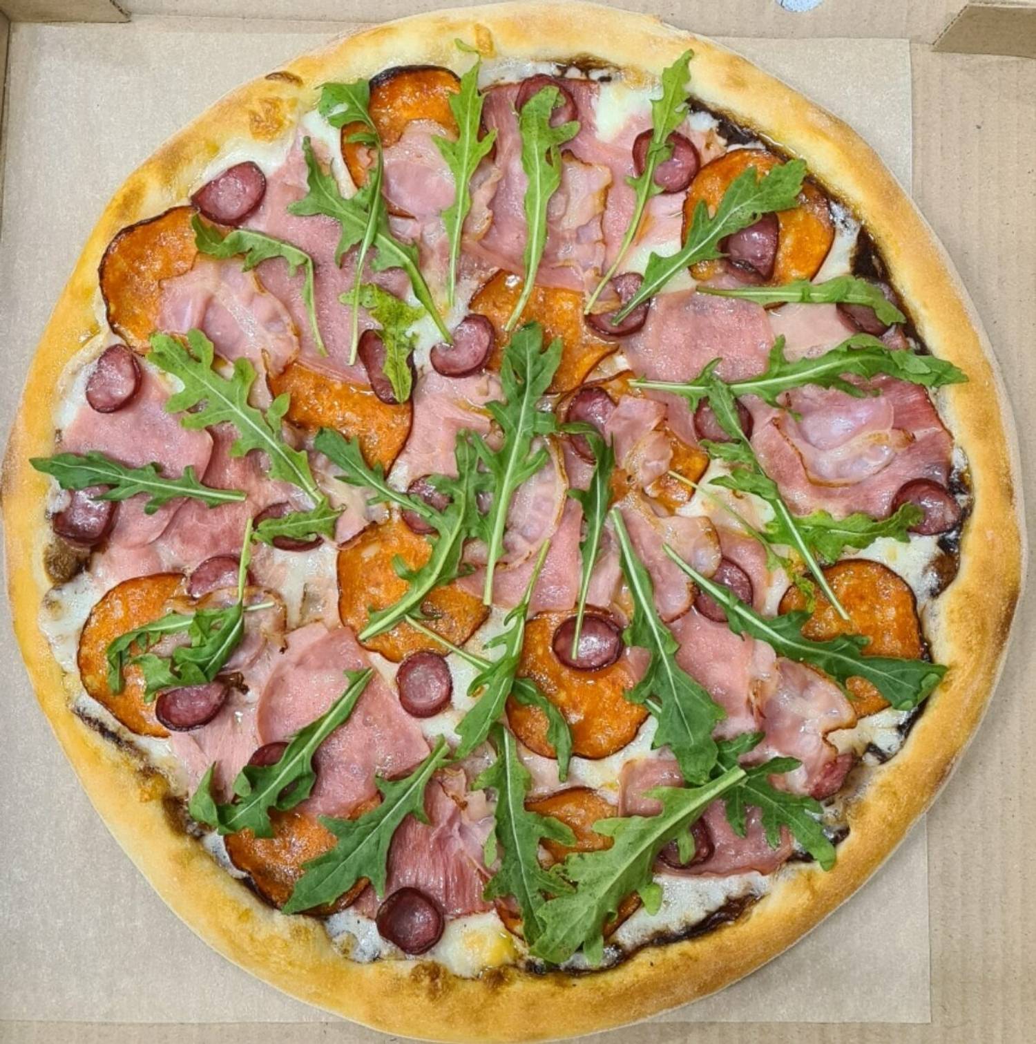 Еда и напитки. В основе меню — пиццы с разнообразными начинками: от классической Маргариты или Пепперони до авторских сочетаний с морепродуктами, овощами и пряными соусами. Дополняют ассортимент суши-сеты, роллы, салаты и закуски. Из напитки есть кофе, лимонады, морсы.