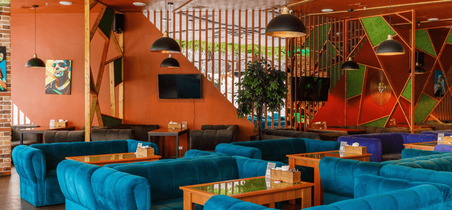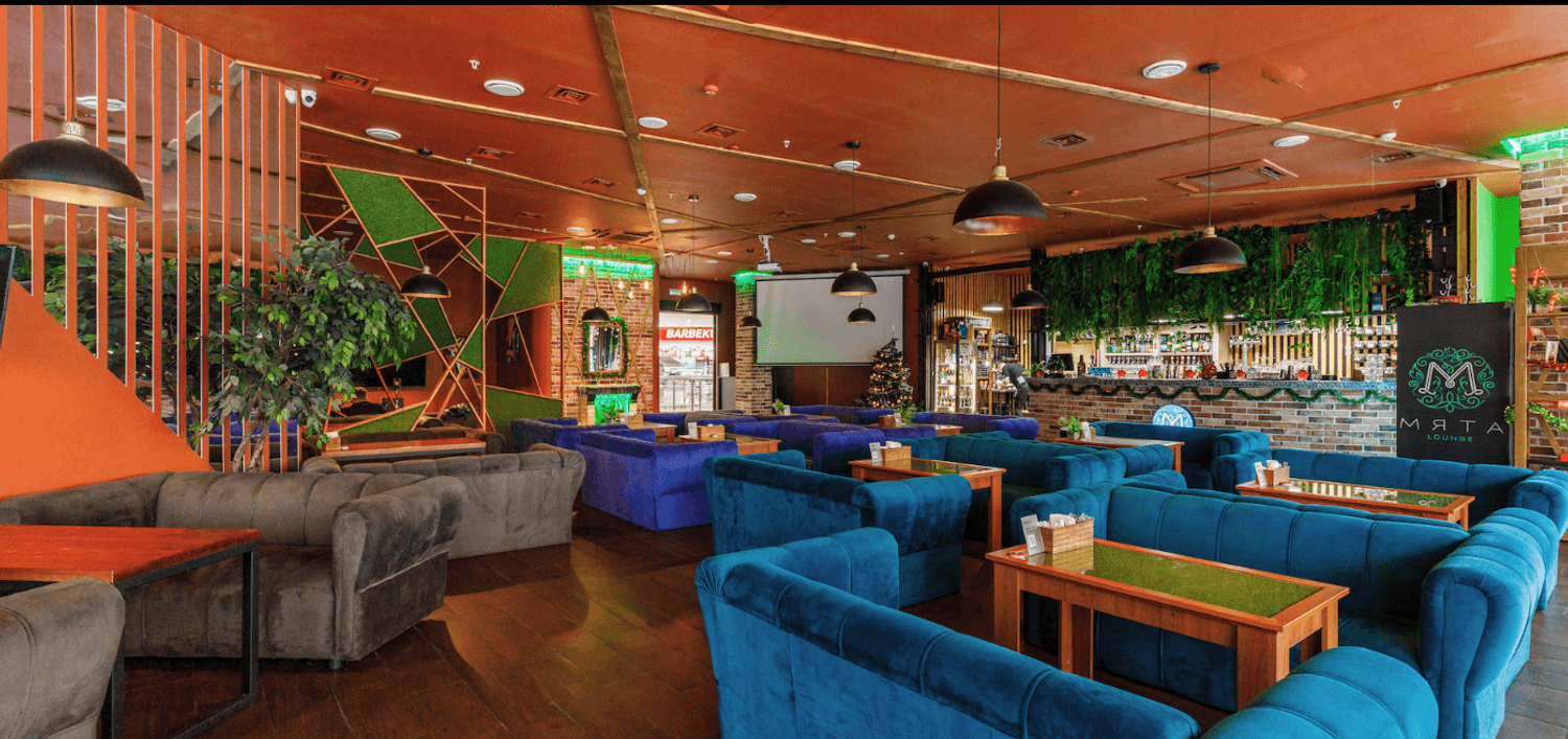 Атмосфера. Пространство разделено на зоны для курения кальянов и отдыха. Здесь есть место для игр на PlayStation, а по выходным проходят вечеринки с диджеями. Обстановка здесь расслабленная и идеально подходящая для вечернего досуга.