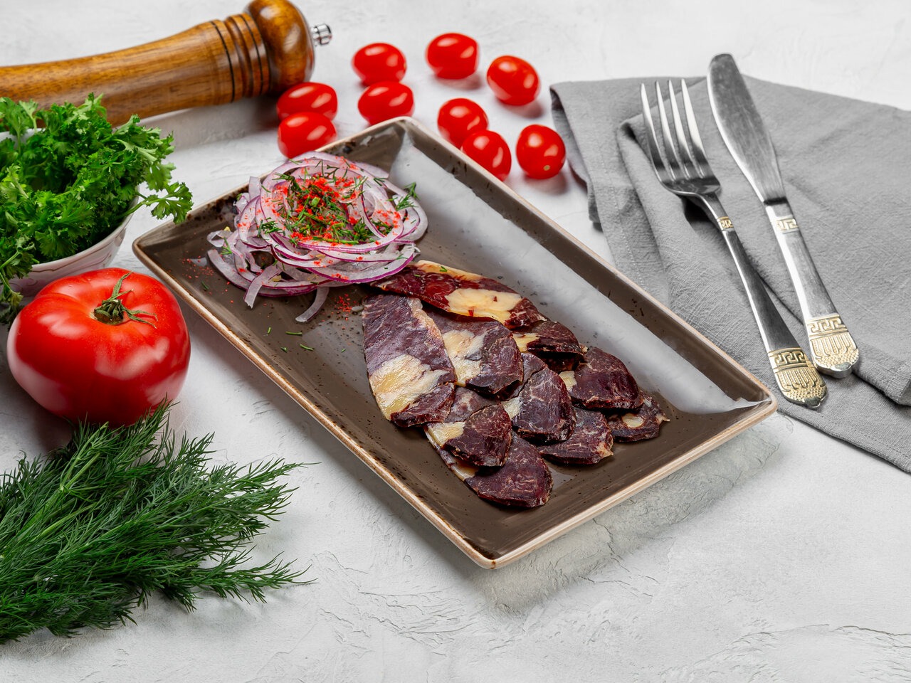 Еда и напитки. В меню — узбекская кухня: каре ягненка, шашлык из семги, телятина в соусе шакшука, манты с бараниной, жареный карп по-бухарски, семга с грибами и сыром. На десерт предлагают медовик, павлову и наполеон.