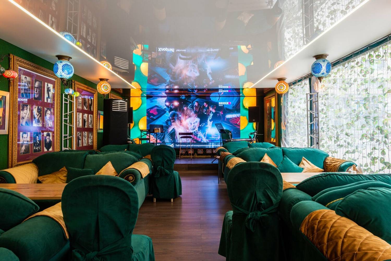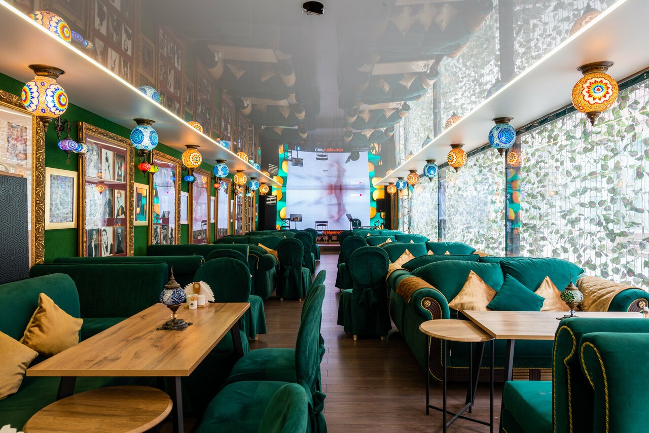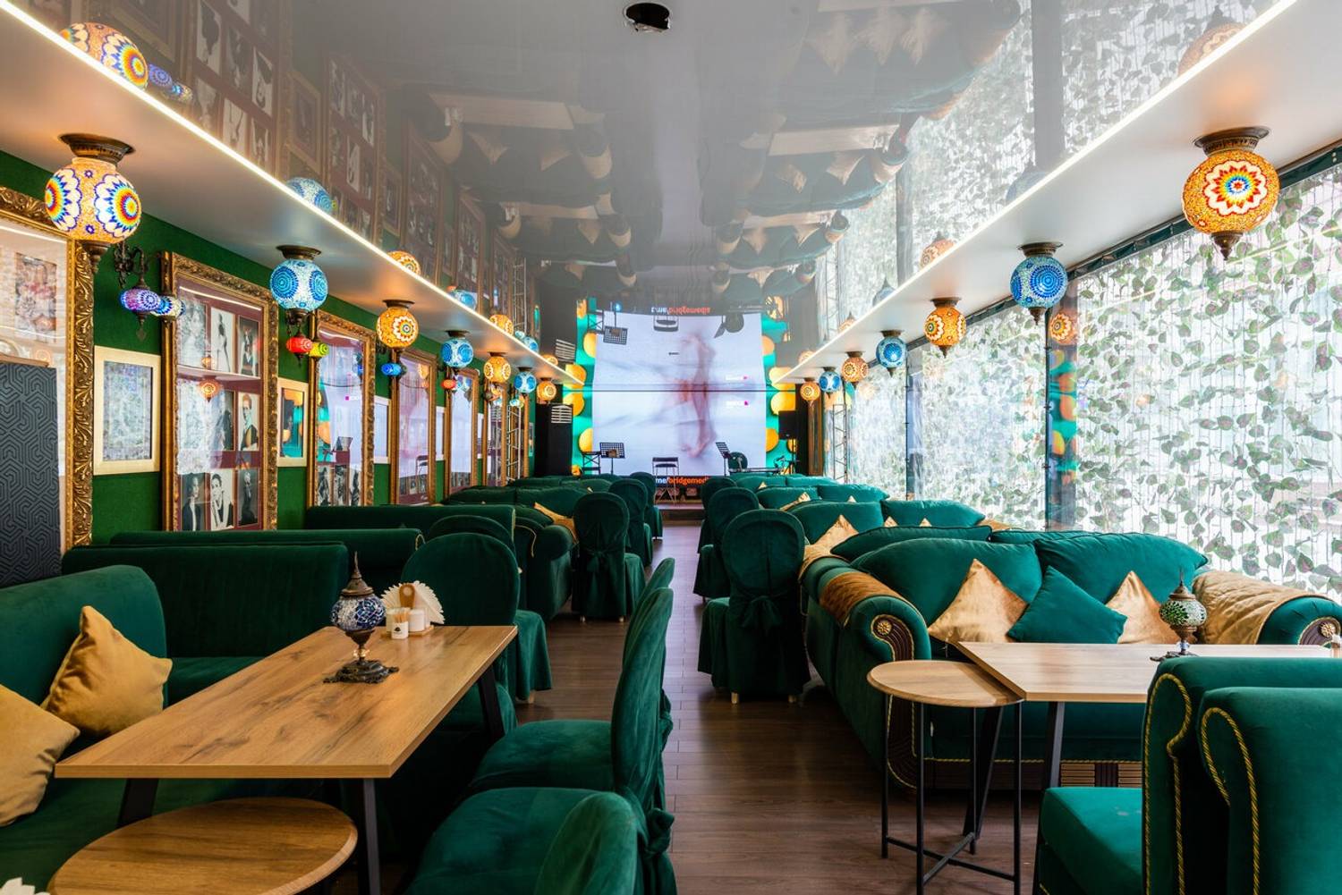 Атмосфера. Внутри два зала, которые пропитаны восточным шармом: зеркальными колоннами, гирляндами с листьями и разноцветными фонариками на окнах. В обоих залах есть караоке-оборудование.