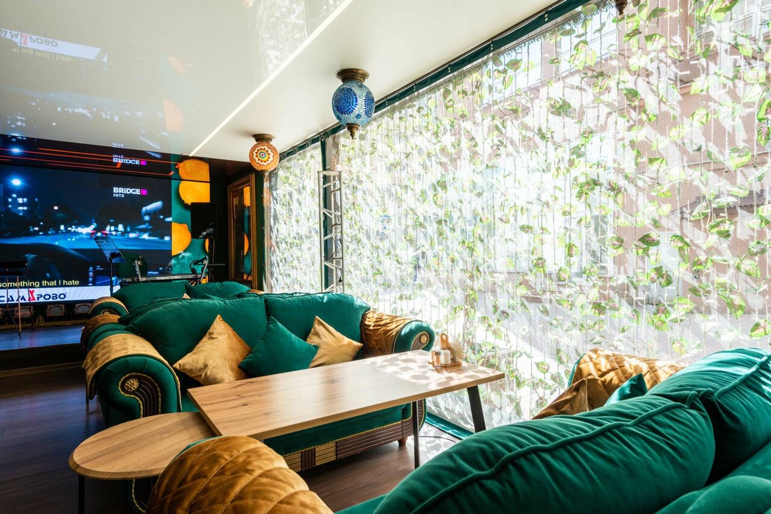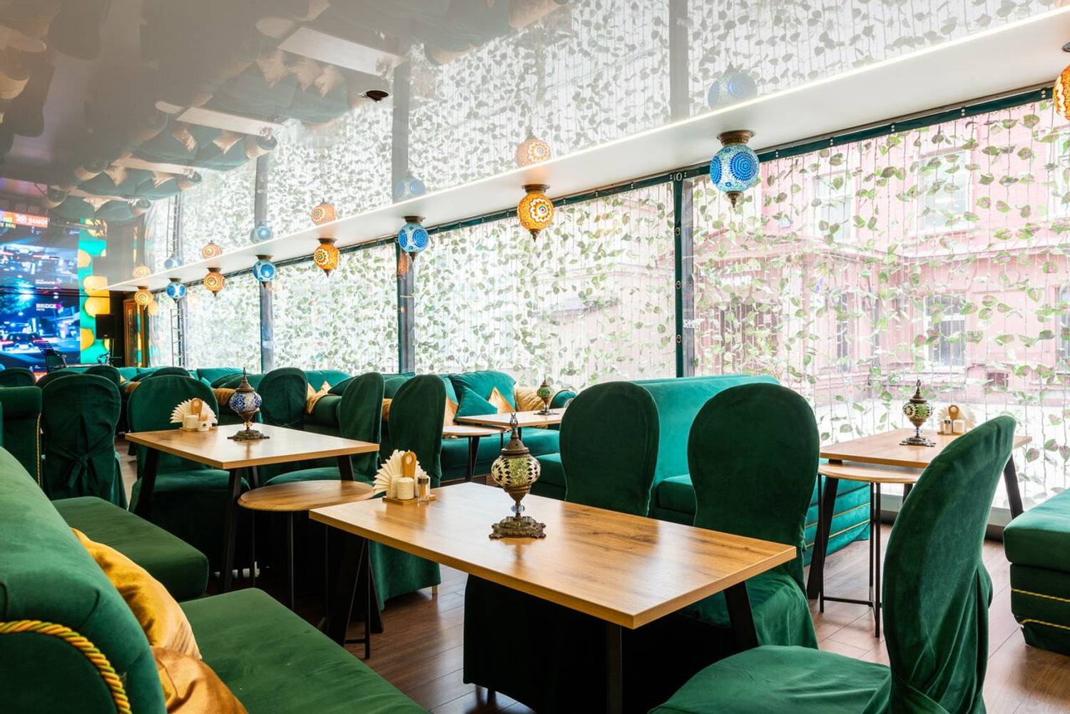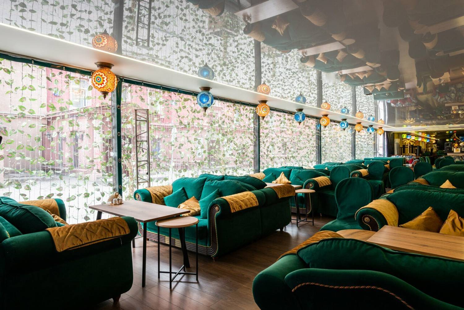Атмосфера. Внутри два зала, которые пропитаны восточным шармом: зеркальными колоннами, гирляндами с листьями и разноцветными фонариками на окнах. В обоих залах есть караоке-оборудование.