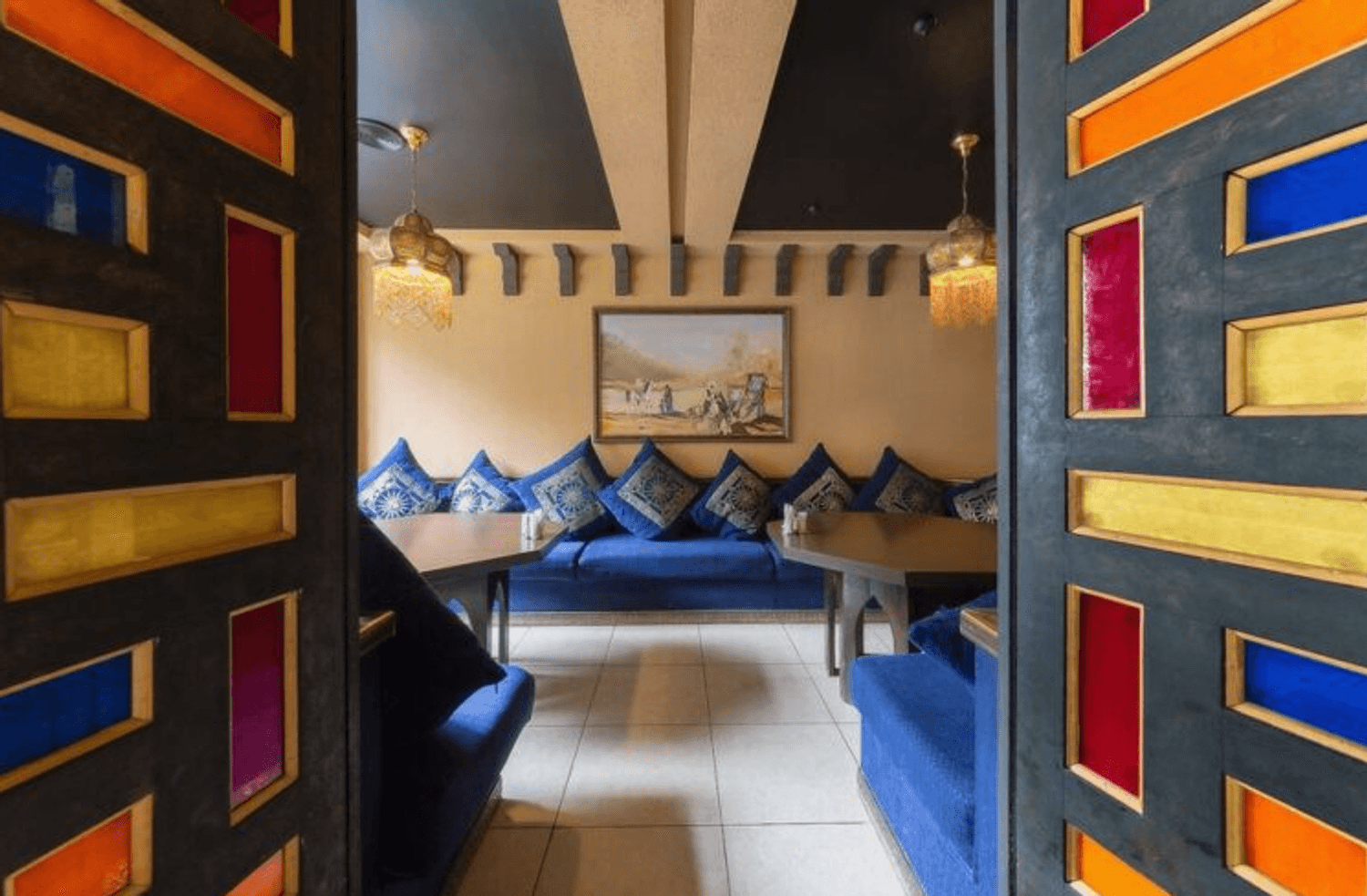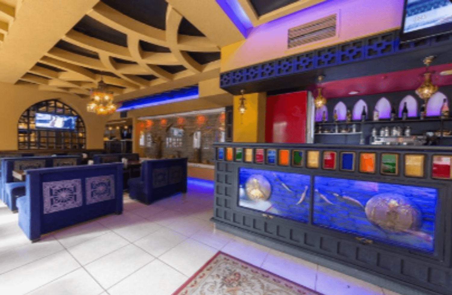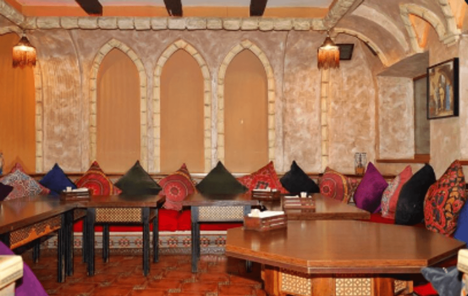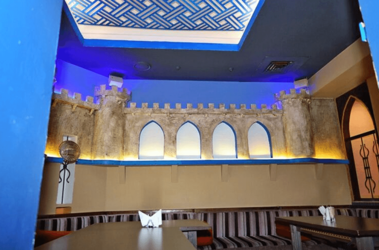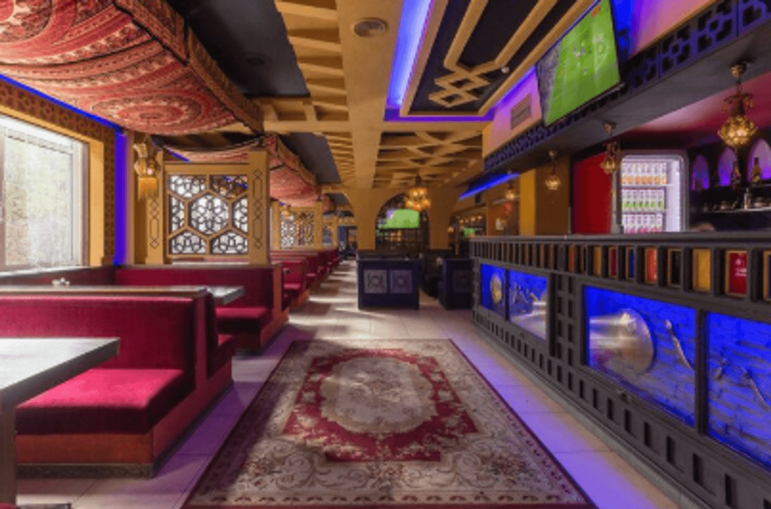 Атмосфера. Пространство оформлено в восточном стиле: высокие арочные своды, расписные ковры, латунные лампы с бисерной отделкой и живые растения создают уют и ощущение погружения в атмосферу Ливана. Основной зал рассчитан на 150 гостей, для небольших компаний есть комнаты на 12–25 человек, VIP-залы и зал с проектором на 50 человек.