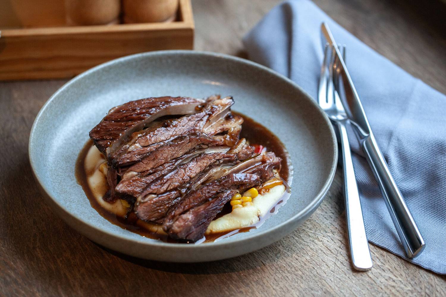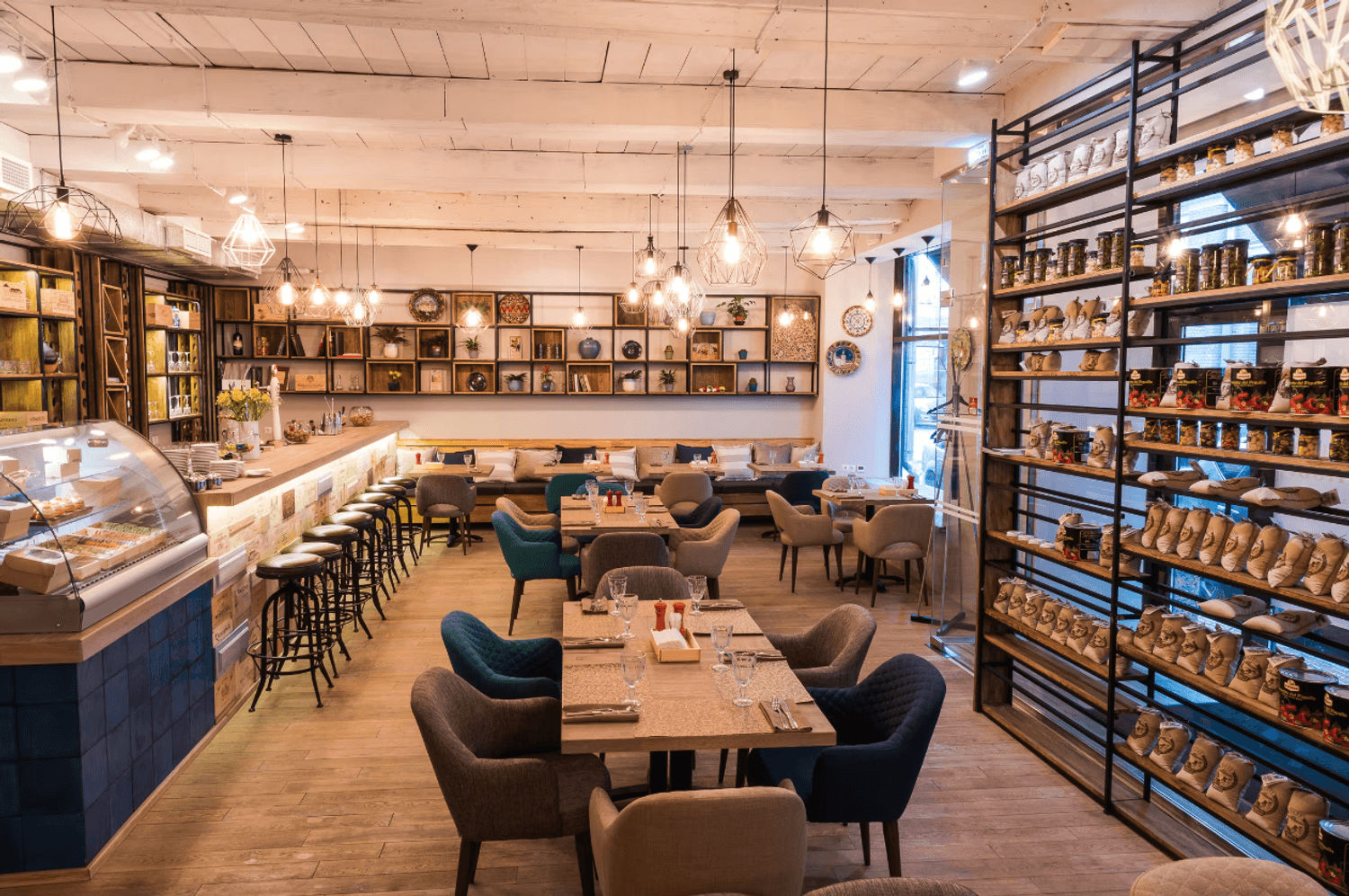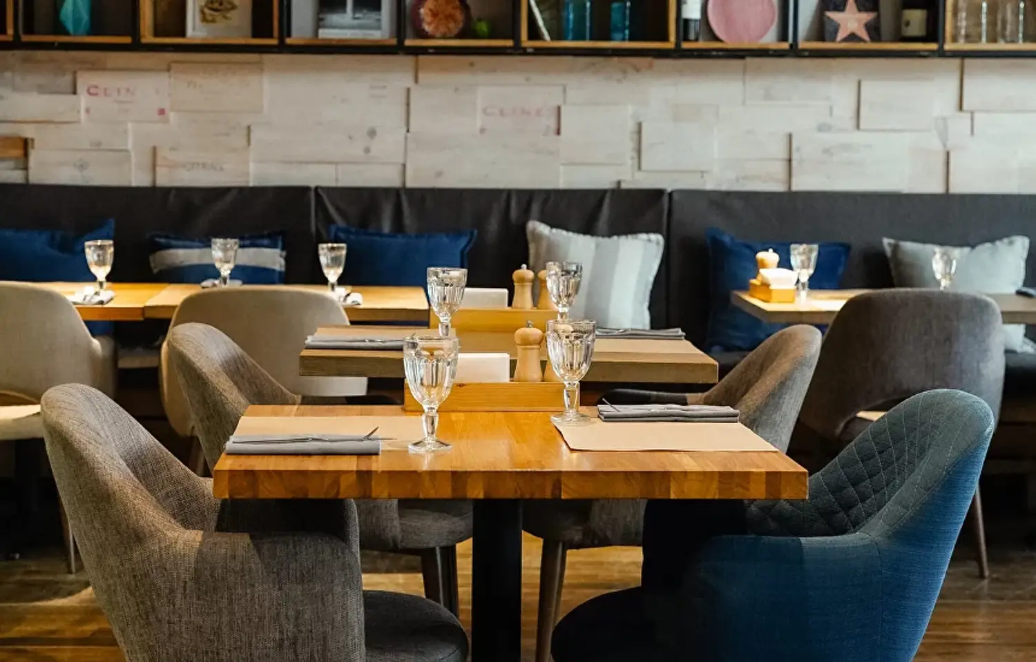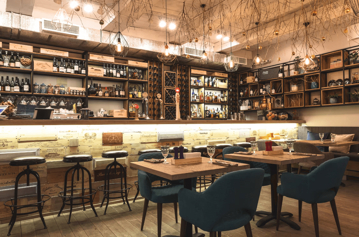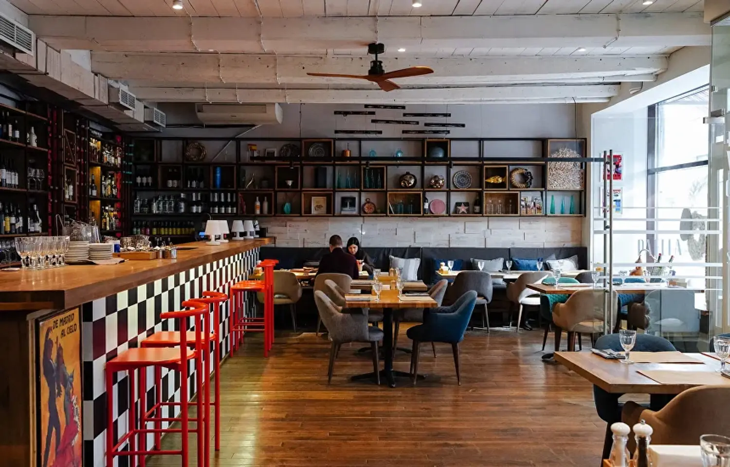 Атмосфера. Интерьер сочетает светлые тона с деревянными панелями и яркими элементами в стиле фламенко. Дизайнерские светильники, диваны шоколадного оттенка и декоративные детали вроде полигональной головы быка создают уютное и одновременно выразительное пространство, напоминающее гостеприимный и современный испанский дом.