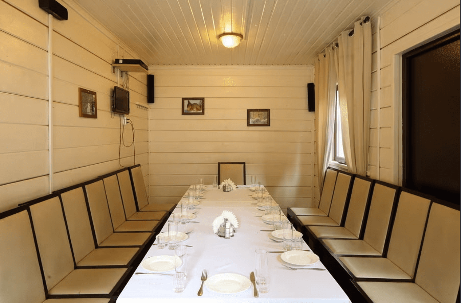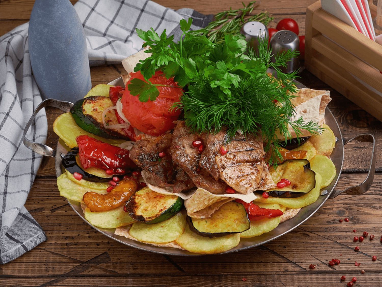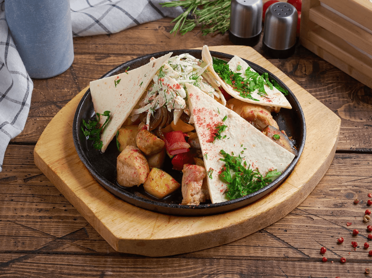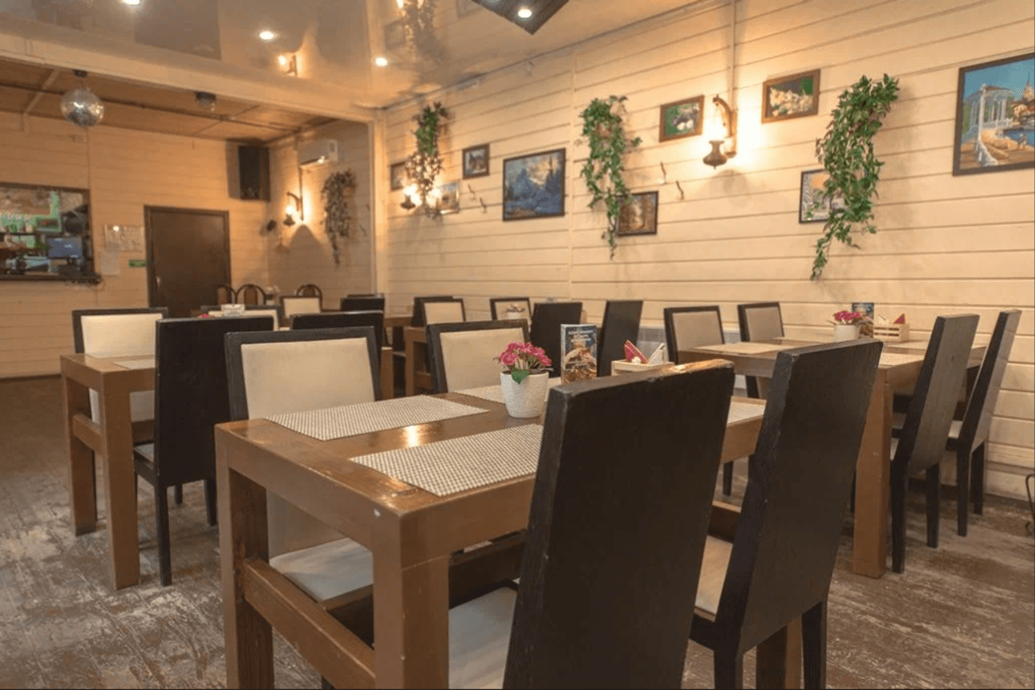 Еда и напитки. В меню кафе сделан акцент на блюда, приготовленные на открытом огне: шашлык, садж, баранина. Дополнительно — классические русские и европейские салаты, супы, хачапури и другие горячие блюда. Барная карта включает вина, авторские и классические коктейли, а также безалкогольные напитки.