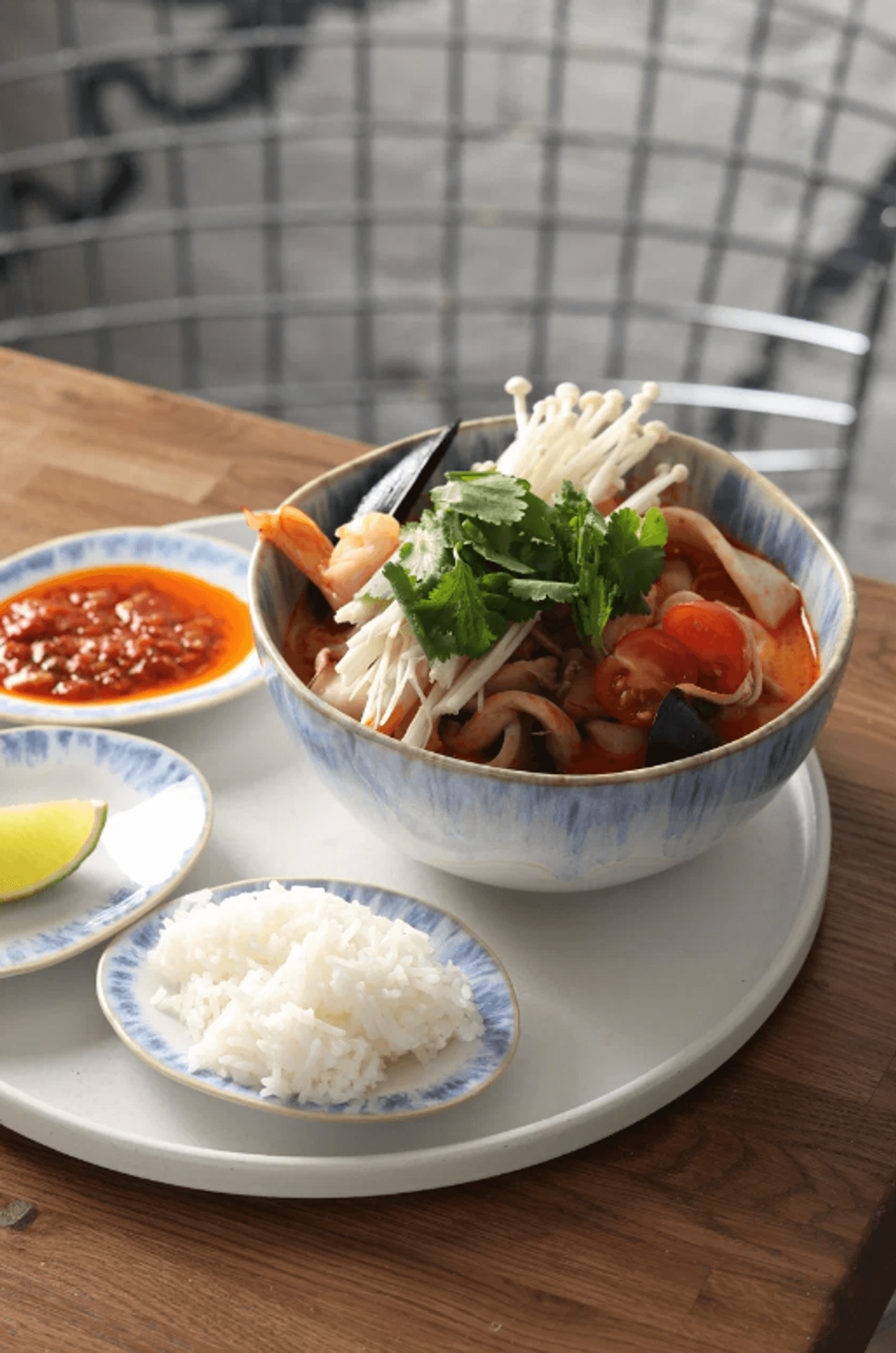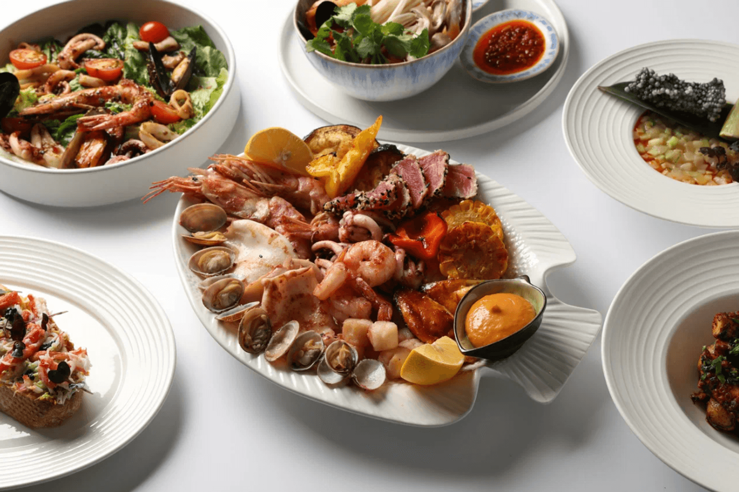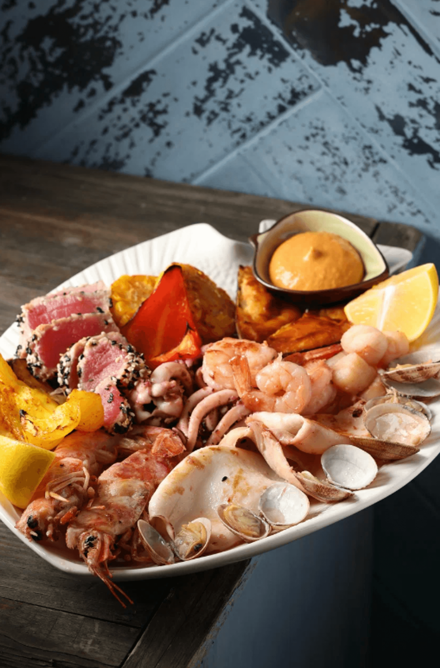 Еда и напитки. В меню свыше 40 «морских» позиций: от котлеты из трески с икорным соусом до том яма с креветками и осьминога с паприкой. Все блюда готовятся из свежедоставленных морепродуктов — крабов, морских ежей, устриц и тунца.