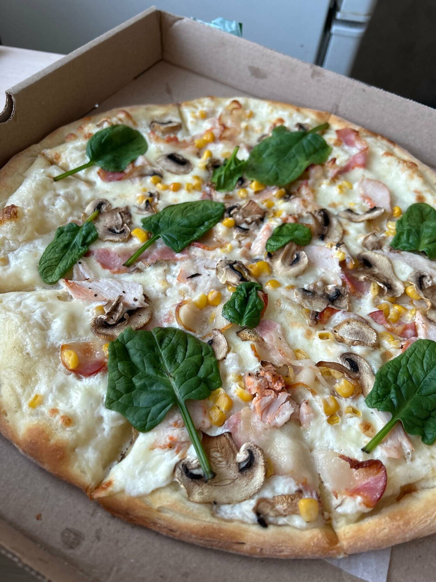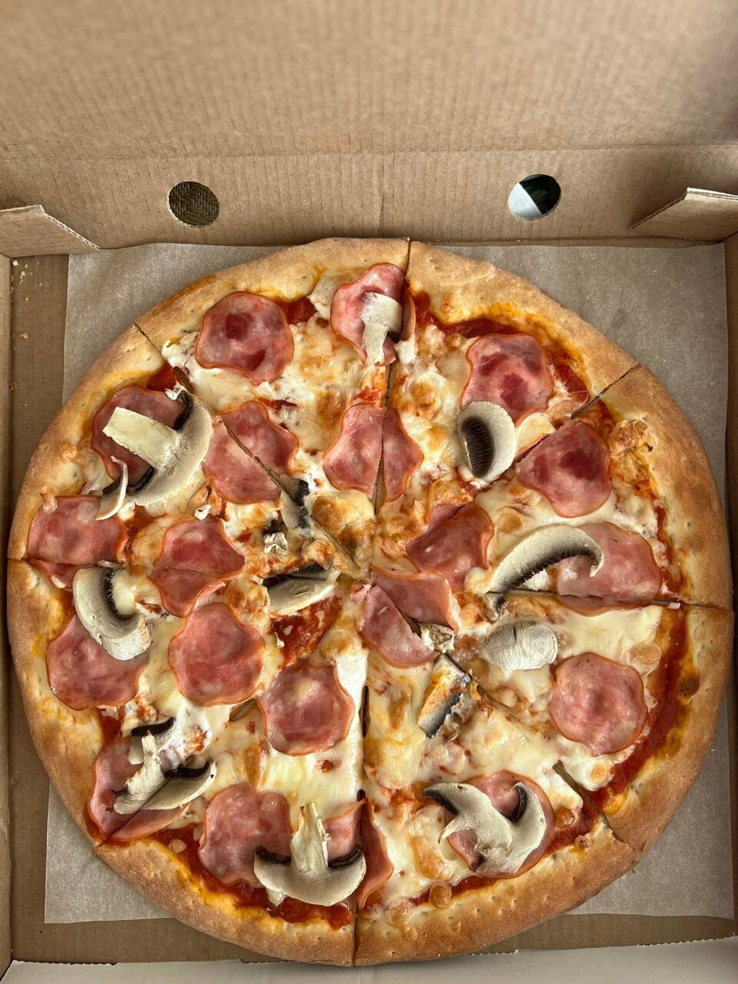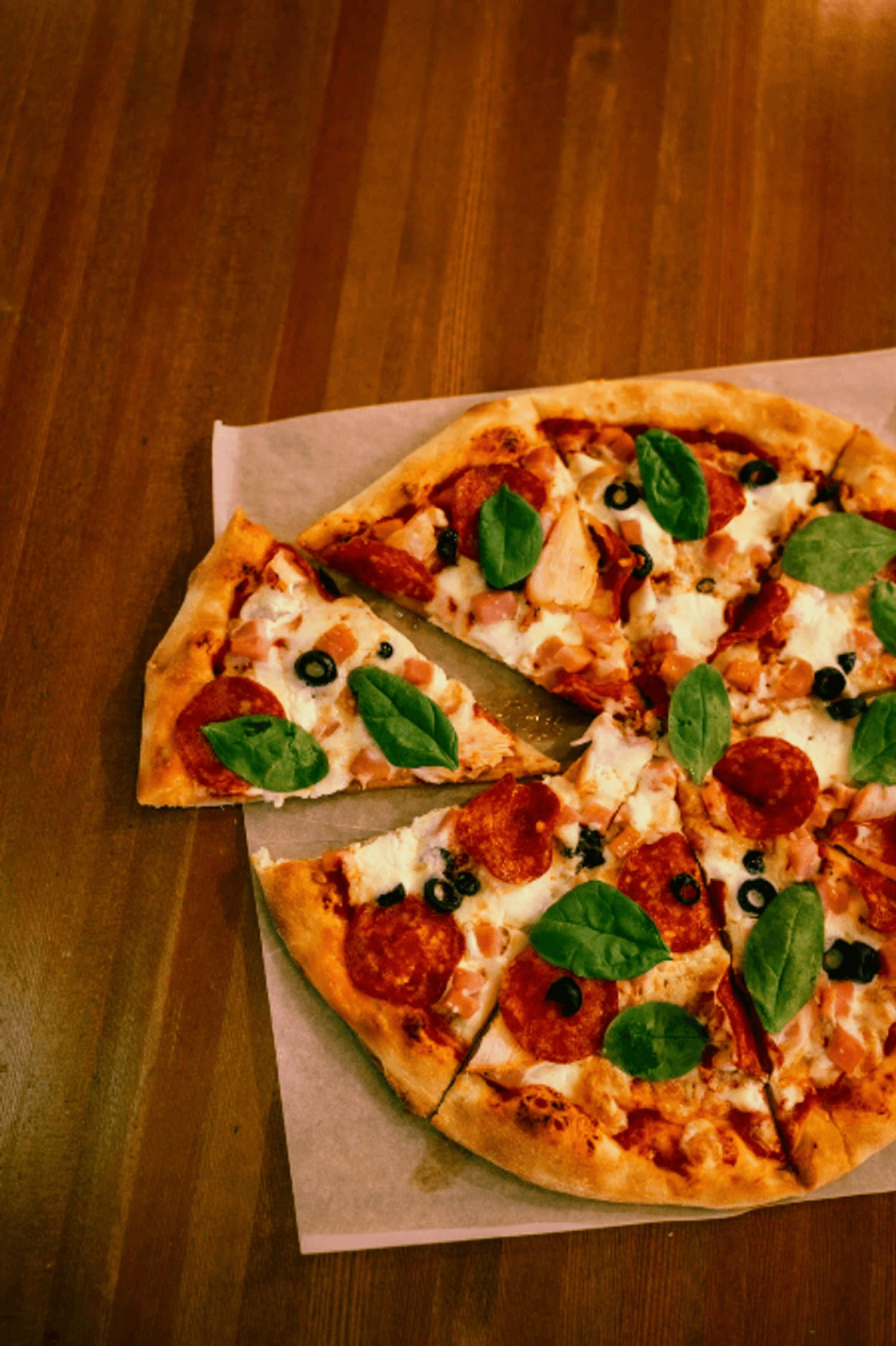 Еда и напитки. В меню — пицца с разными начинками: гавайская, гамбургер, ветчина и грибы, пепперони, курица-ранч, цезарь, сливочная с тунцом. Кроме того, готовят сладкие варианты с ананасом-карамелью или бананом и шоколадом. Из напитков есть холодный чай, лимонады и вода.