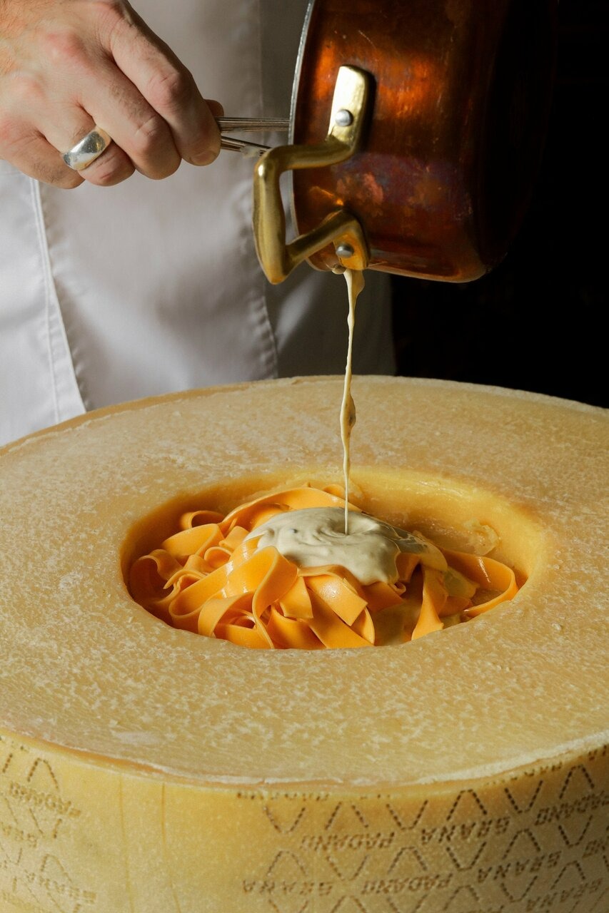 Еда и напитки. В меню — классические блюда Тосканы и других регионов Италии: гребешок на гриле, пицца с тунцом, оссобуко с ризотто по-милански, запеченный молодой козленок и осьминог по-средиземноморски. Десертная карта включает профитроли, панна-коту и итальянский Миллефолье.