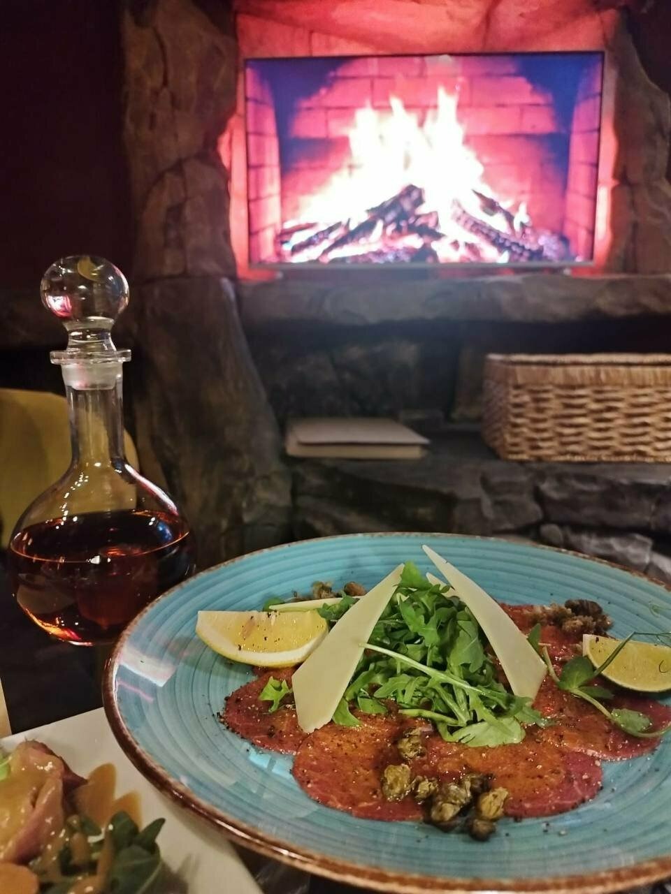 Еда и напитки. В меню — фирменные блюда: теплое карпаччо из баклажанов с ореховым соусом, морские гребешки на гриле, острые куриные крылья в Лузианском соусе, мидии в соусе базилик, рубленая говядина с жареным луком.