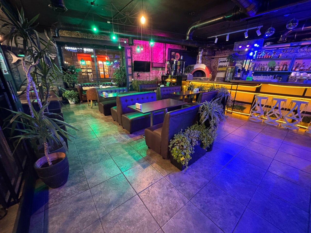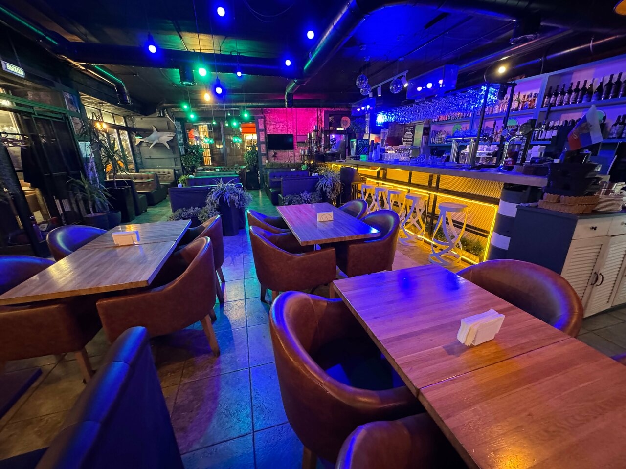 Атмосфера. Просторные залы с приятным освещением создают атмосферу уюта, а интерьер ресторана органично сочетает элементы классического и современного стилей. Вечером здесь регулярно проходят спортивные трансляции и вечера живой музыки, что делает заведение местом не только для спокойного ужина, но и для веселых встреч.