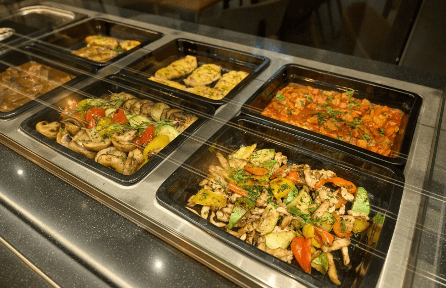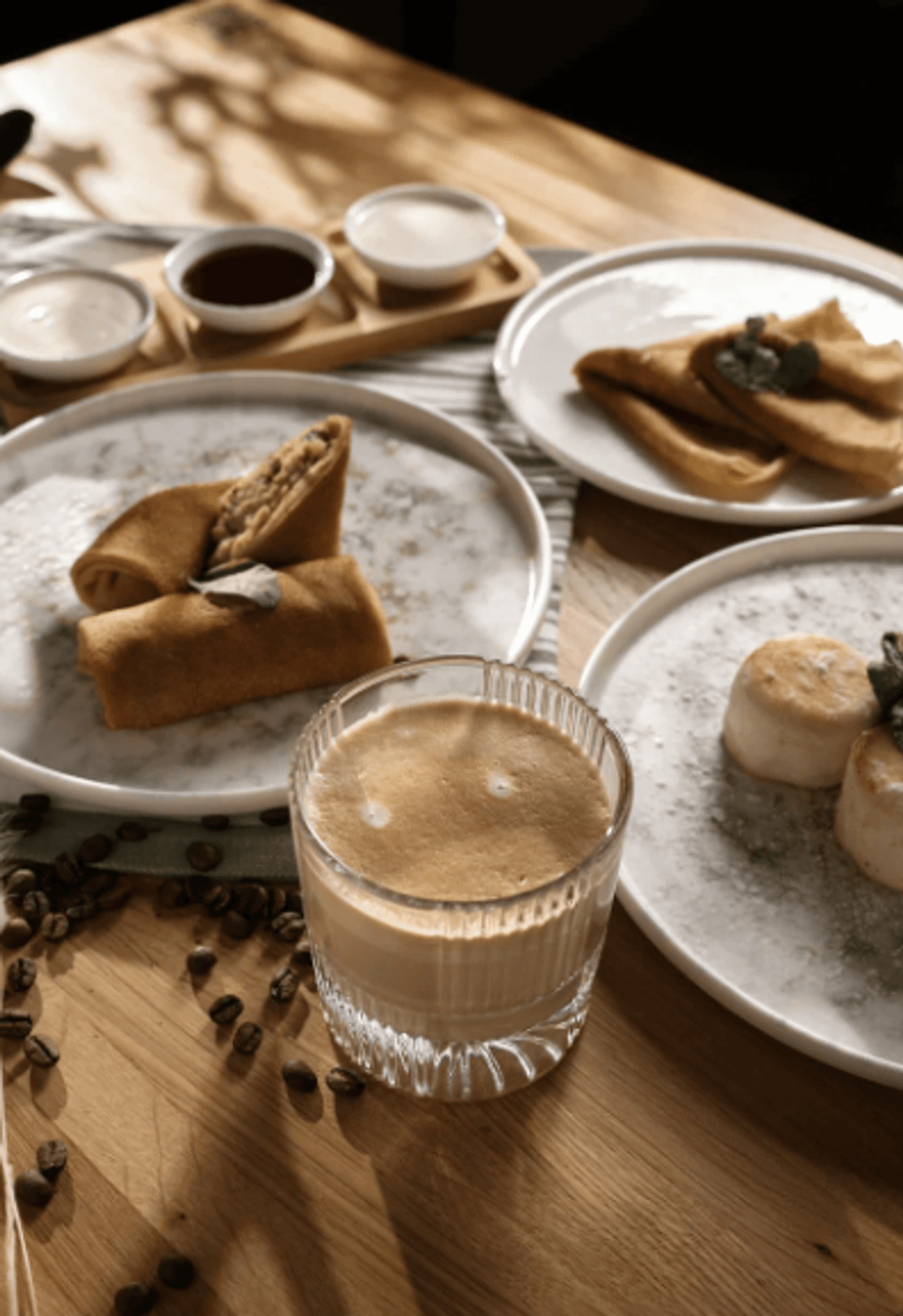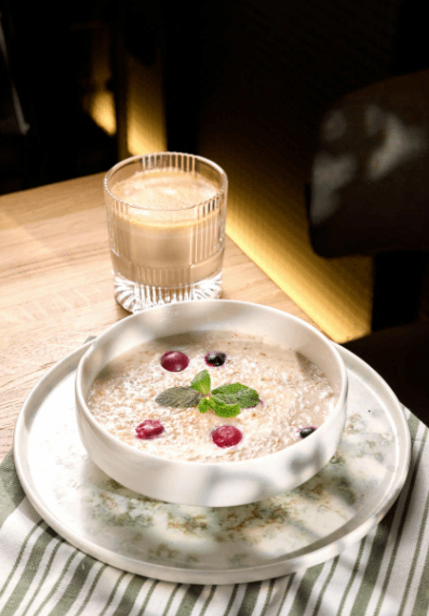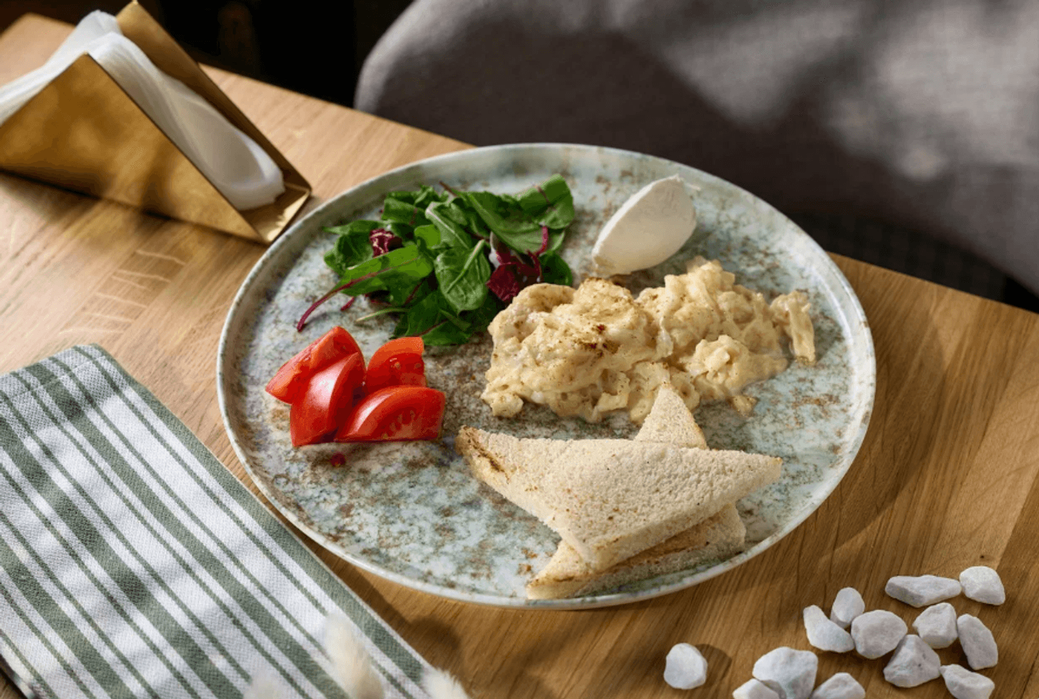 Меню кафе — это сочетание простоты и изысканности. Здесь готовят стейки, утиную ножку с картошкой, мидии в сливочном соусе, лосося терияки с брокколи, осьминога и многое другое. А в будни можно пообедать вкусным и сытным бизнес-ланчем.