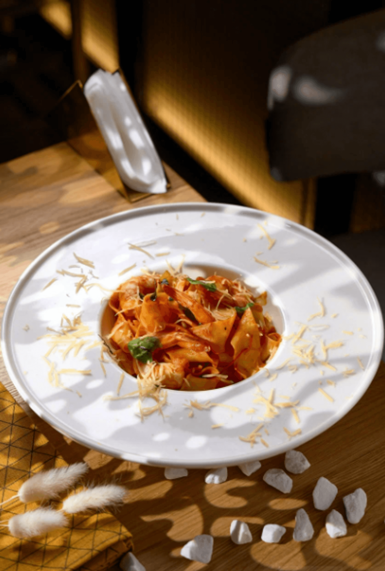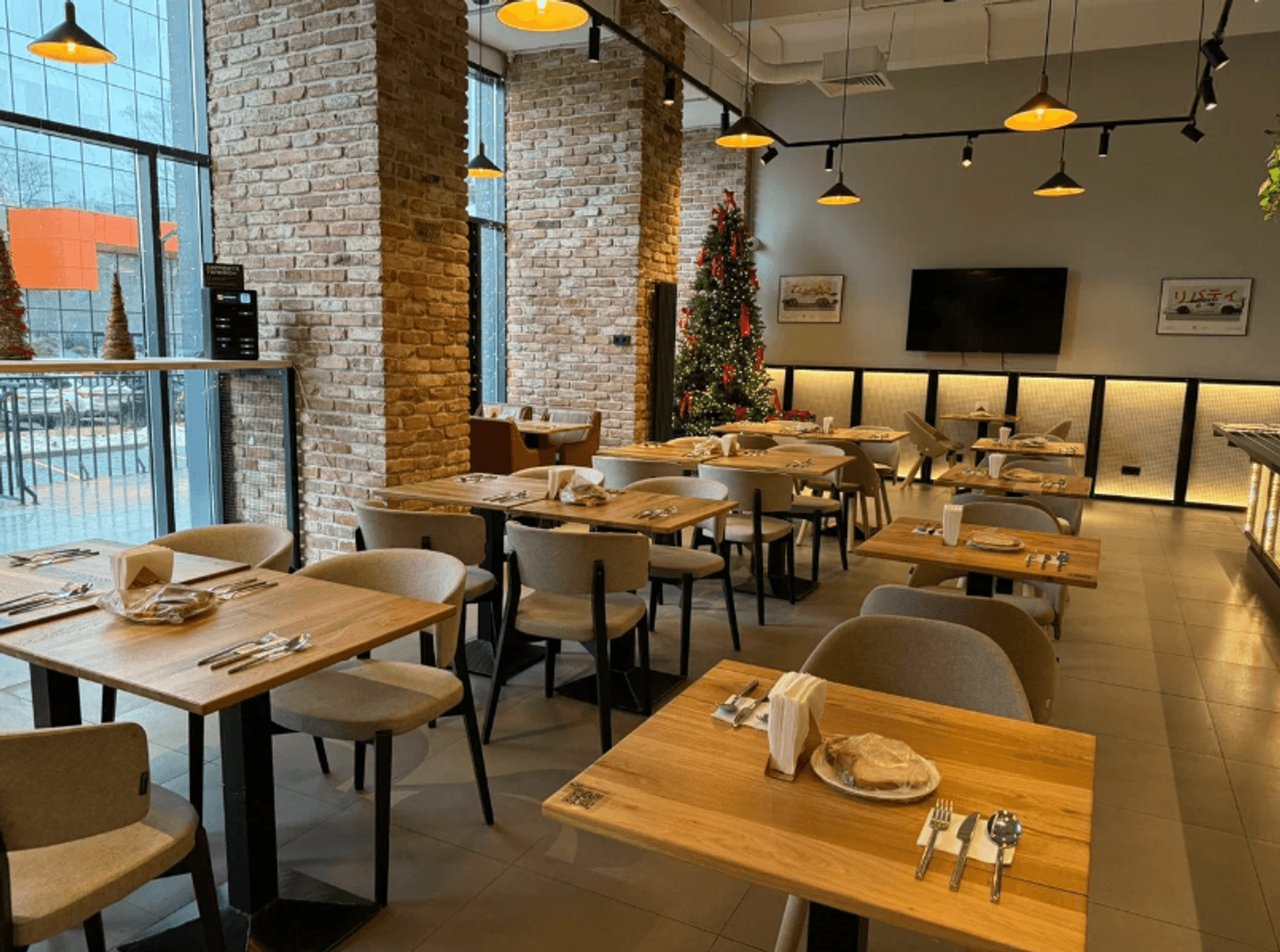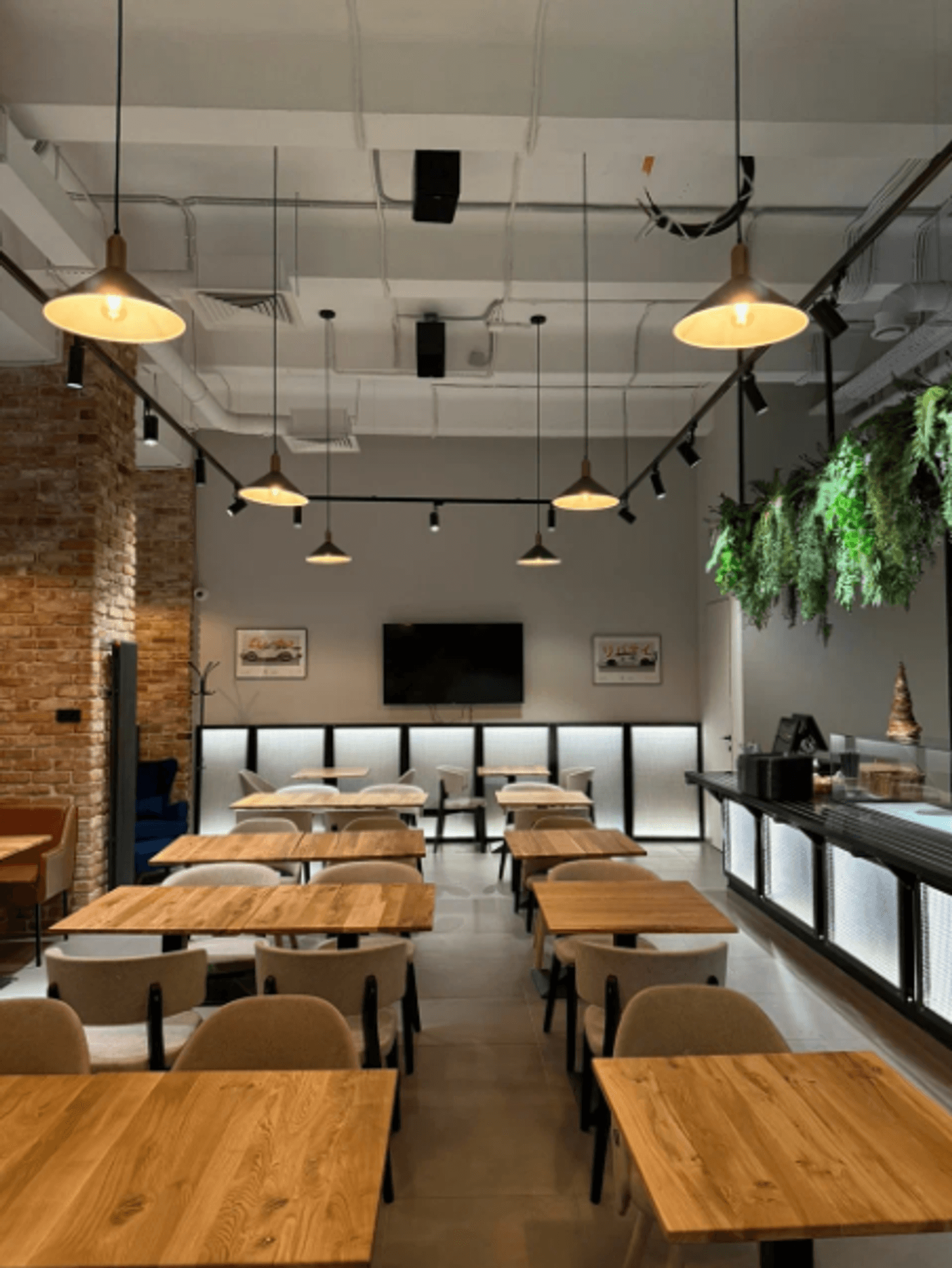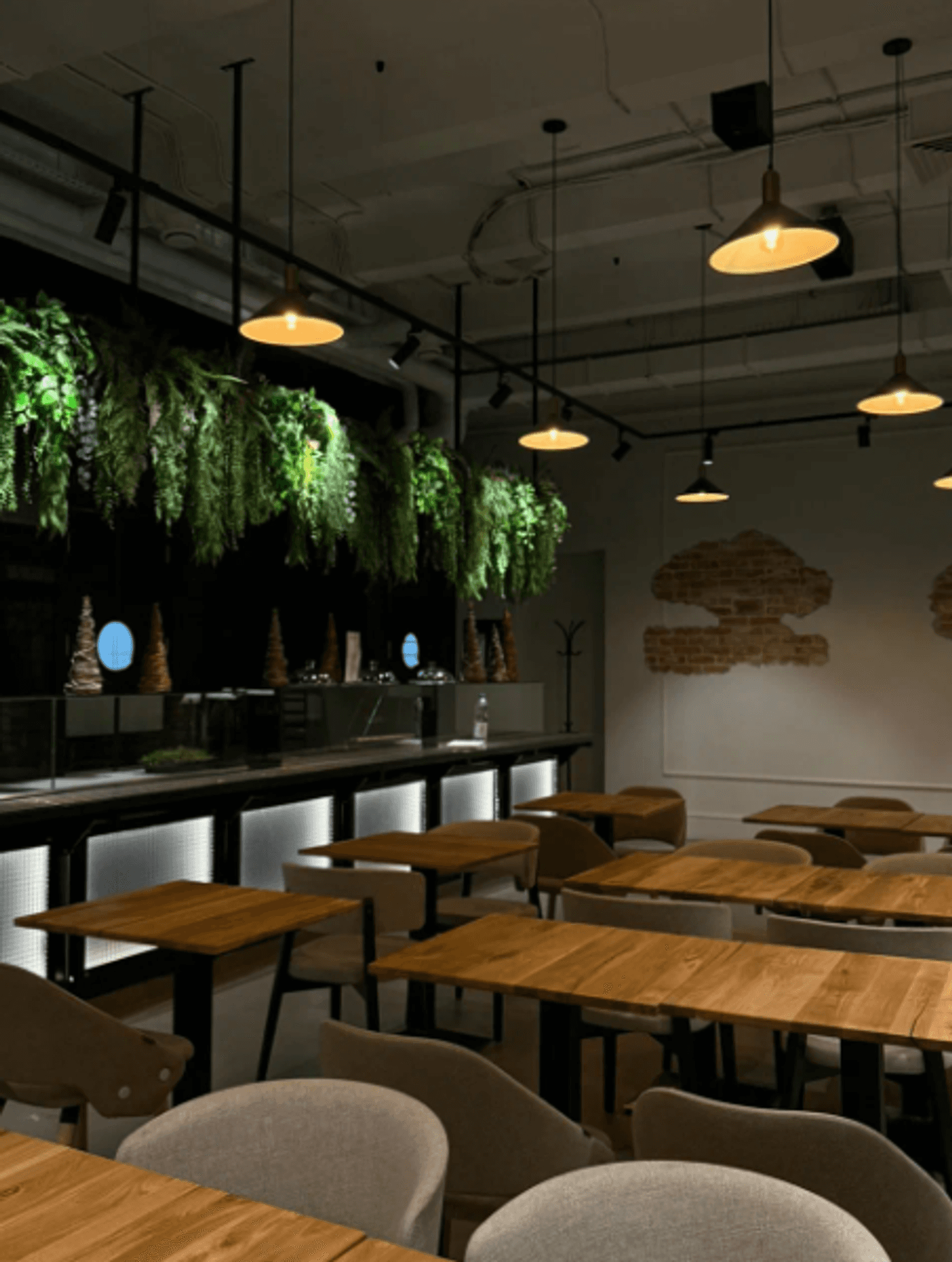 "Sala Da Pranzo" — уютное кафе рядом с метро "Водный стадион". Тут царит расслабленная атмосфера, а повара подают блюда смешанной кухни. В интерьере сочетаются светлые тона, плакаты с автомобилями, световые панели и зелень, создавая приятную обстановку для отдыха.