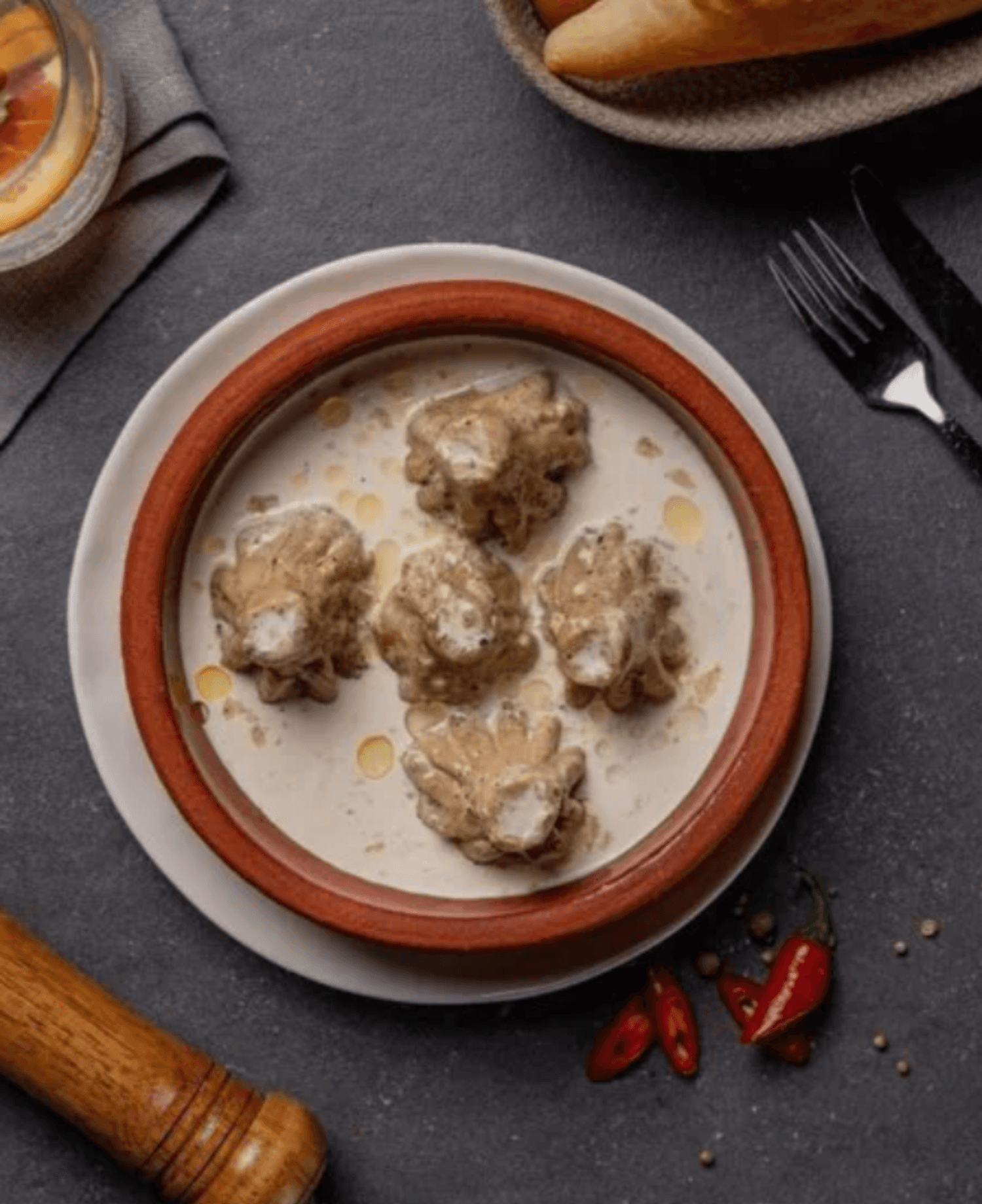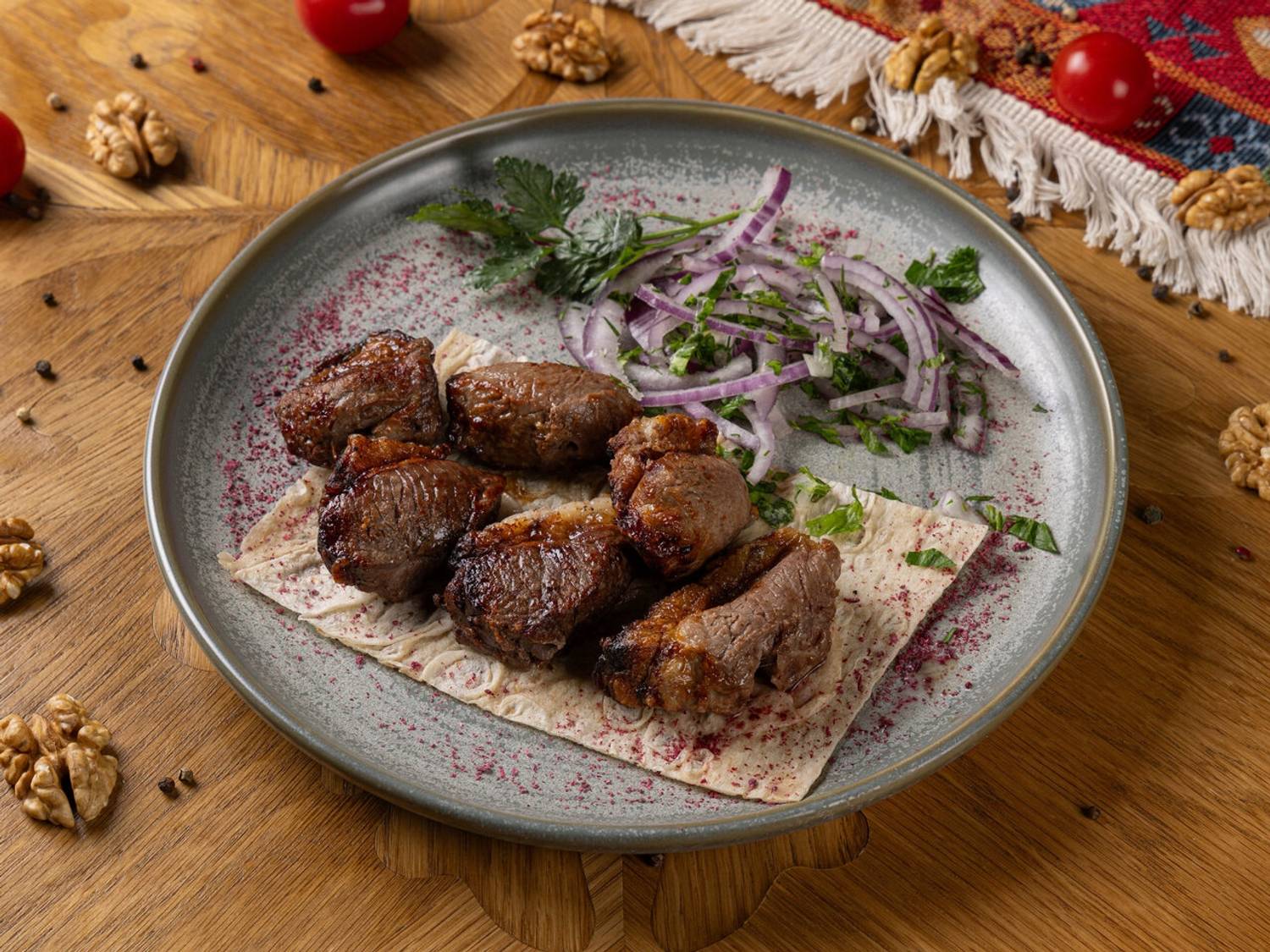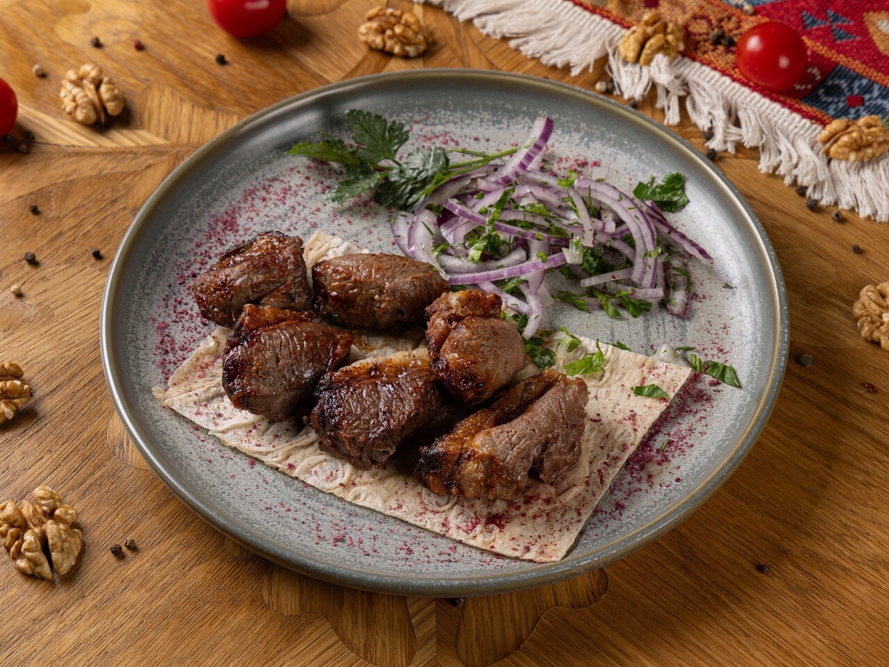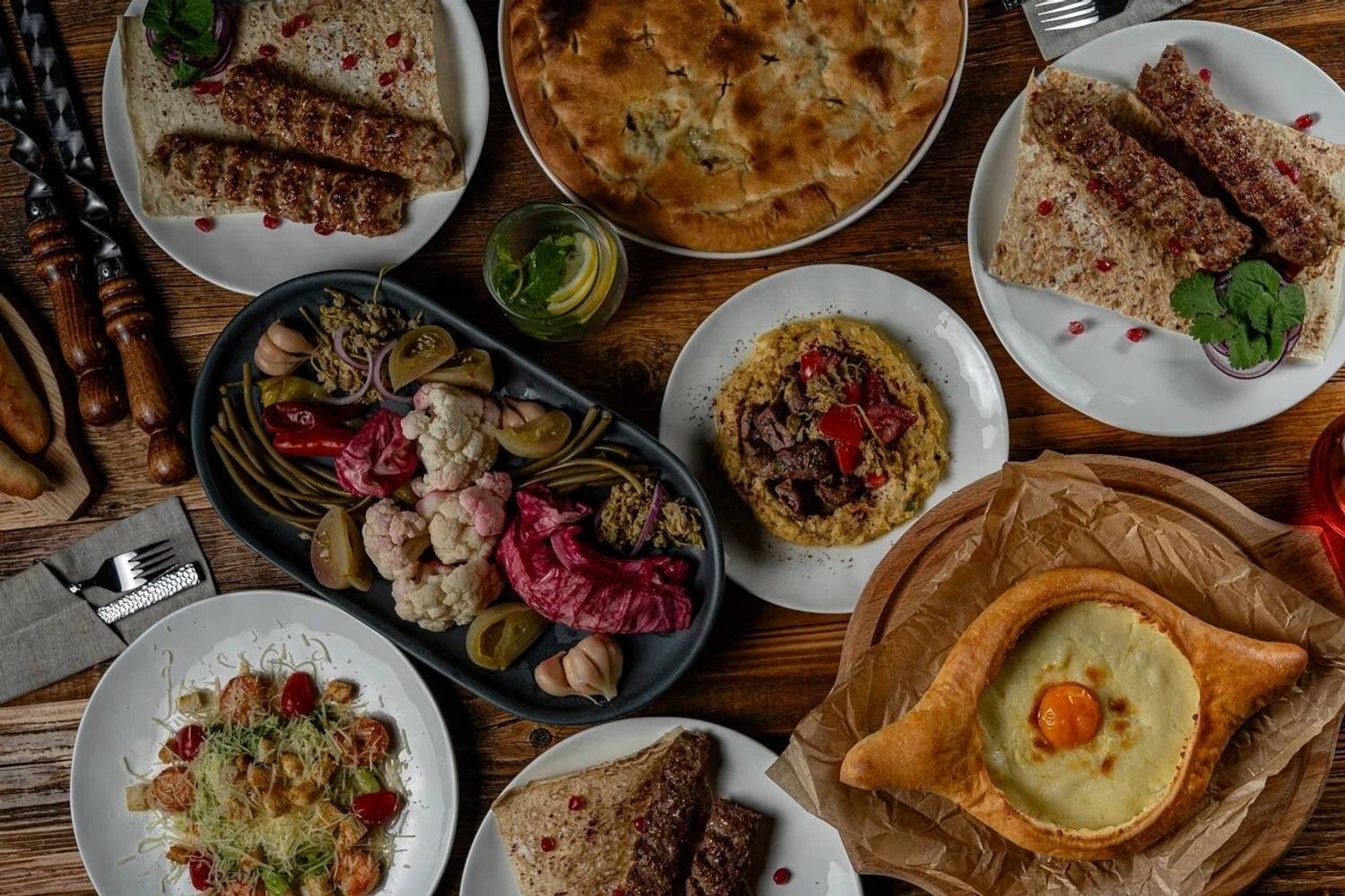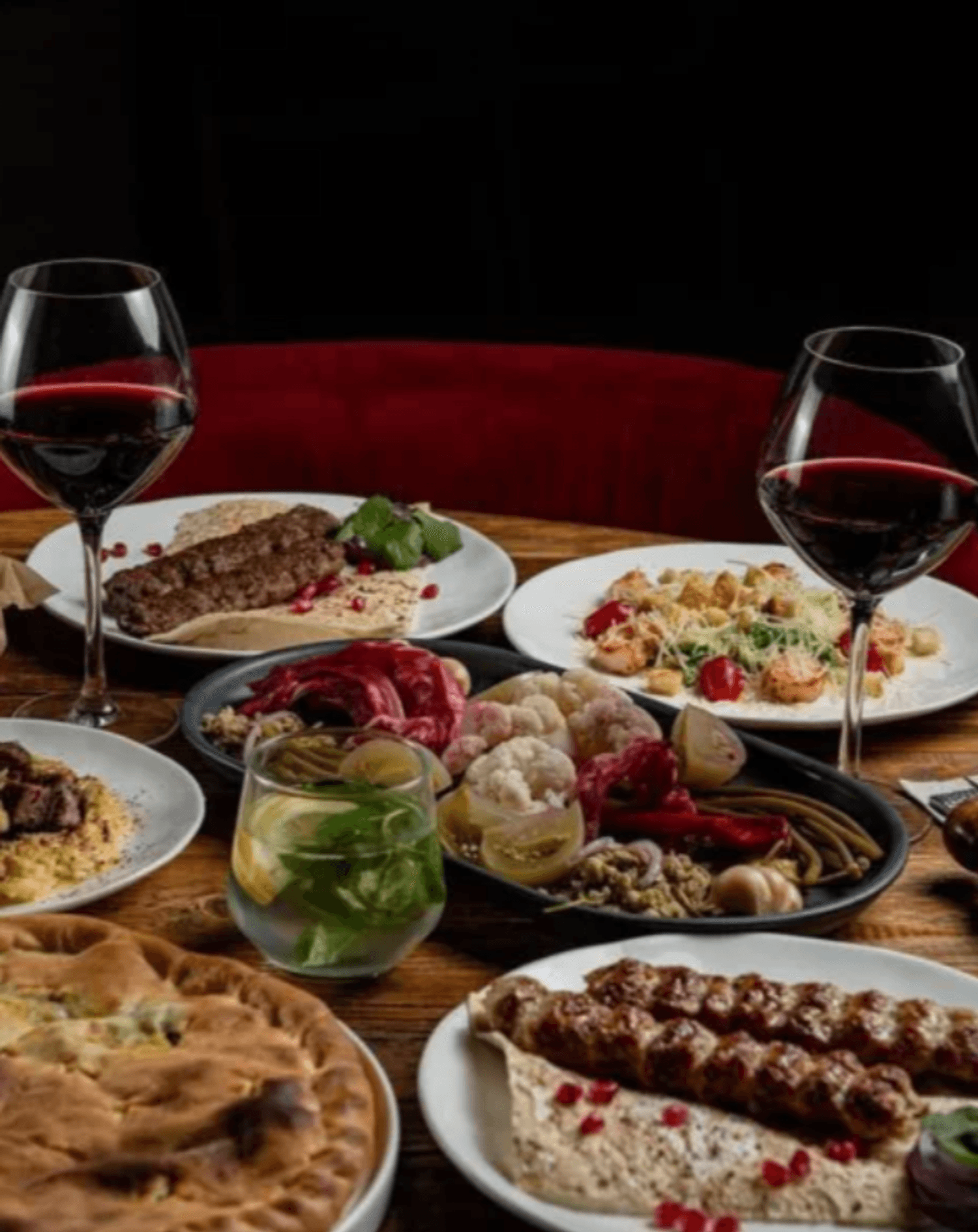 Еда и напитки. В меню — хачапури, пхали, аджапсандал и авторские хинкали с говядиной и соусом дор-блю. Особый акцент сделан на блюдах с мангала. Напитки включают грузинские вина по бокалам, разливное пиво и авторские чайные композиции.