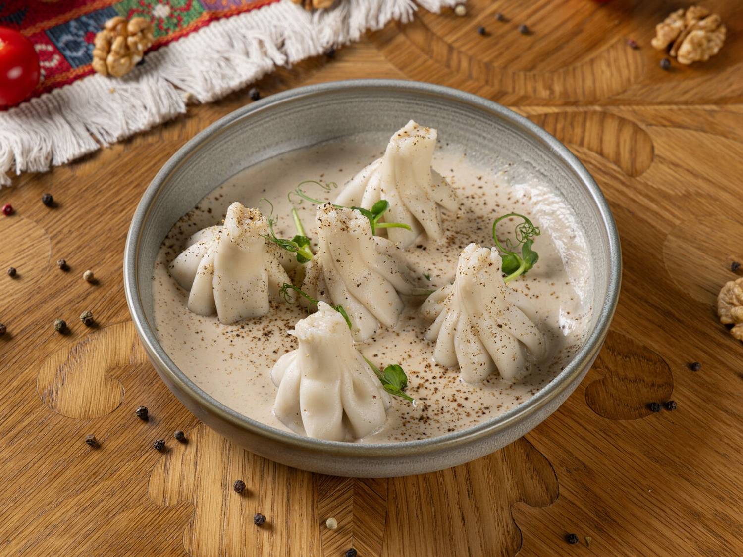 Зачем идти. Чтобы попробовать хинкали с неожиданной сырной нотой дор-блю в авангардной обстановке.