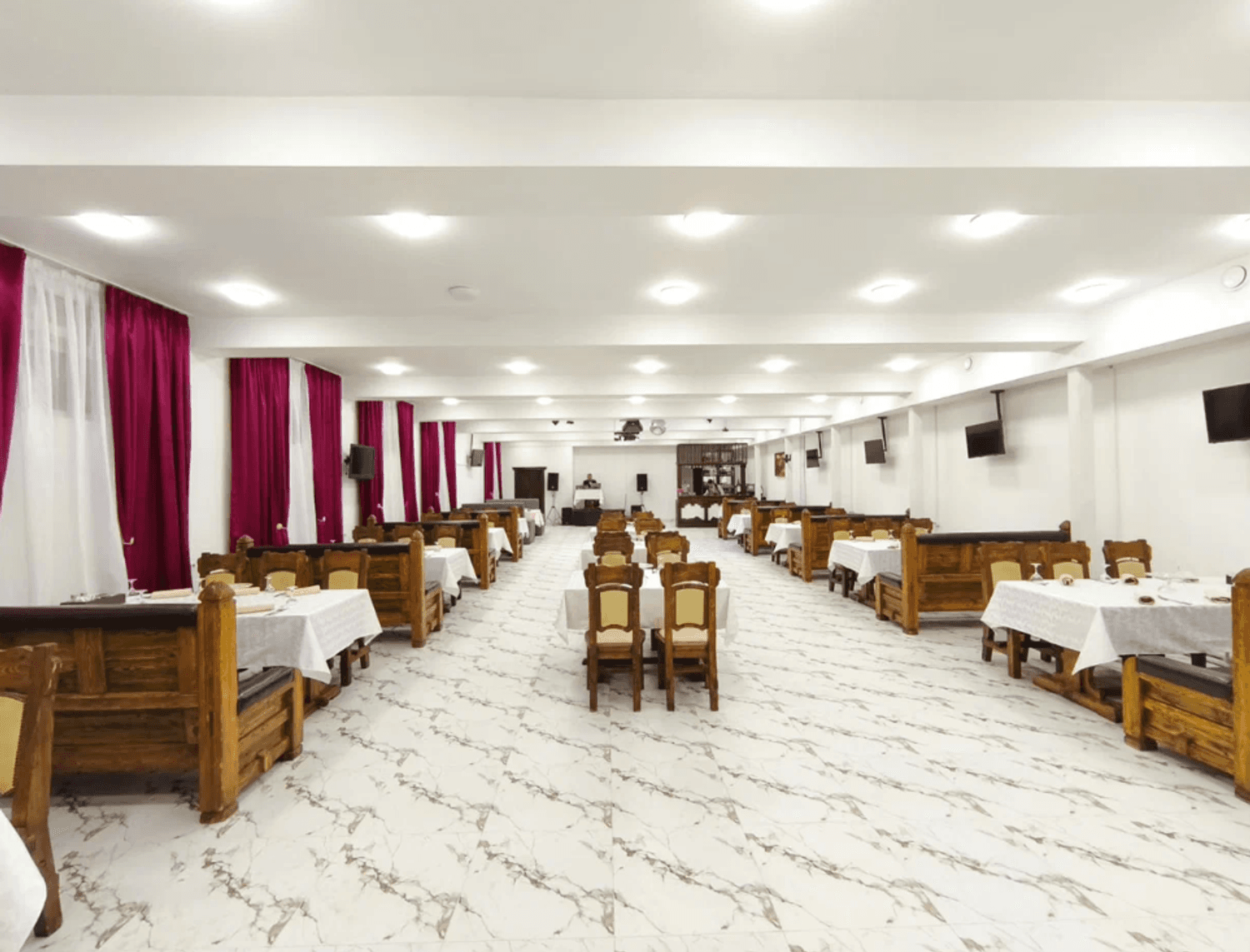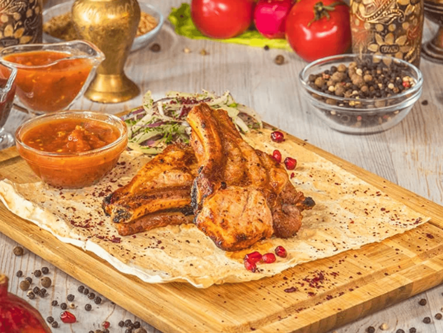 Еда и напитки. В меню — кавказская классика: люля-кебаб из баранины, хачапури по-аджарски, долма в виноградных листьях и сытный салат «Чобан». К ним можно заказать и европейские блюда: например, салат Цезарь или пасту. Трапезу традиционно дополняют ароматные соусы и свежая выпечка.
