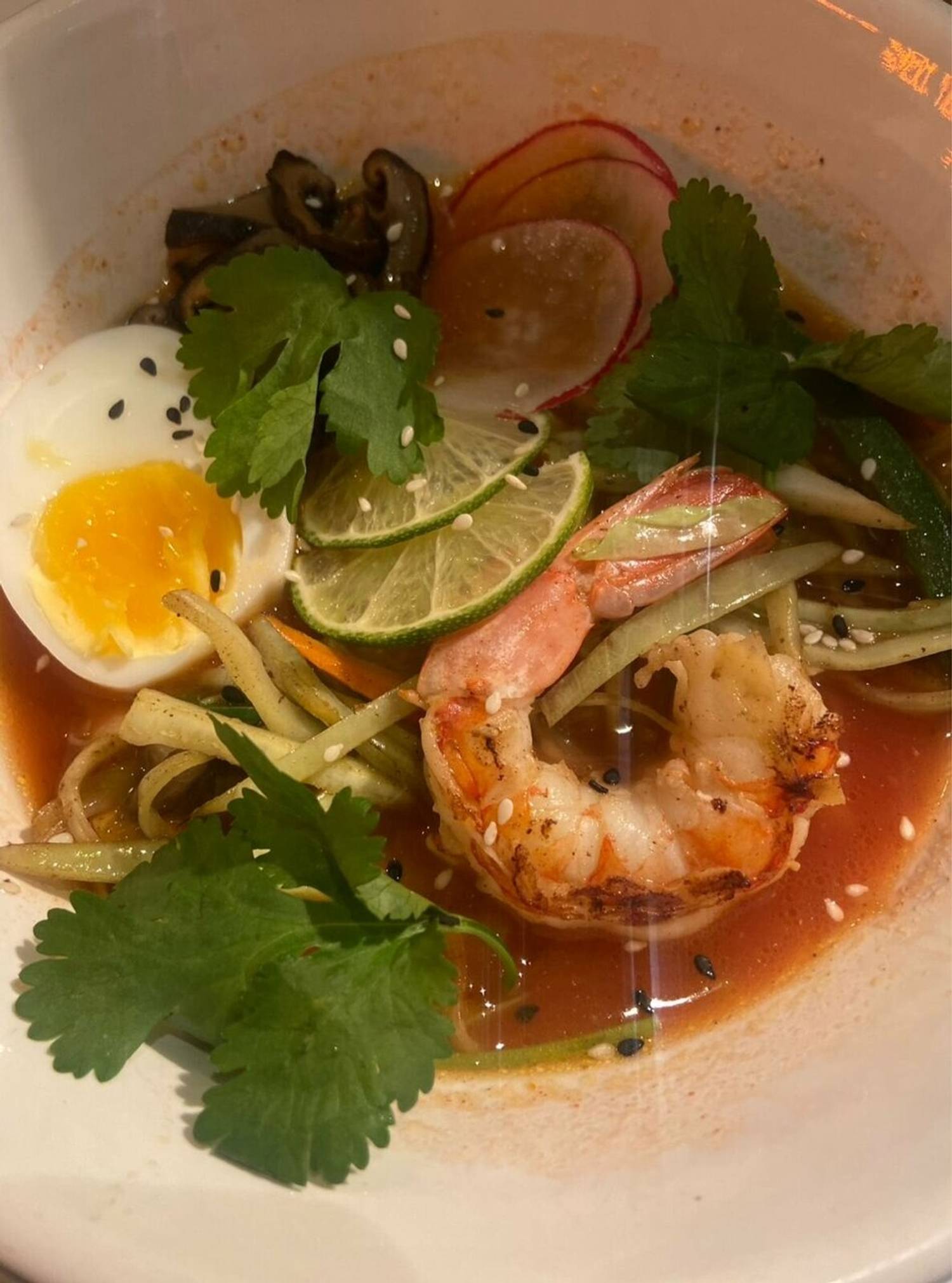 Еда и напитки. Меню сосредоточено вокруг рамена — здесь предлагают более 20 видов этого блюда. Лапшу подают с разнообразными начинками: курицей или говядиной, овощами и карри, морепродуктами, а также с тофу. Помимо рамена, в меню представлены блюда с рисом, роллы, онигири и гедза — японские жареные пельмешки. Завершить трапезу можно необычным десертом — мини‑мочи: кокосовым мороженым в рисовой обертке, которое передаёт тонкий вкус японской кондитерской традиции. Еду и напитки можно взять с собой.