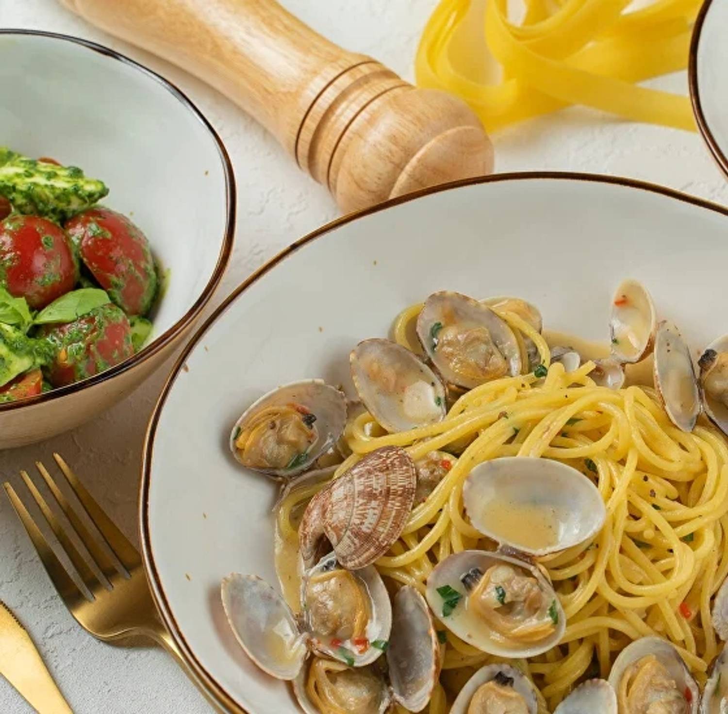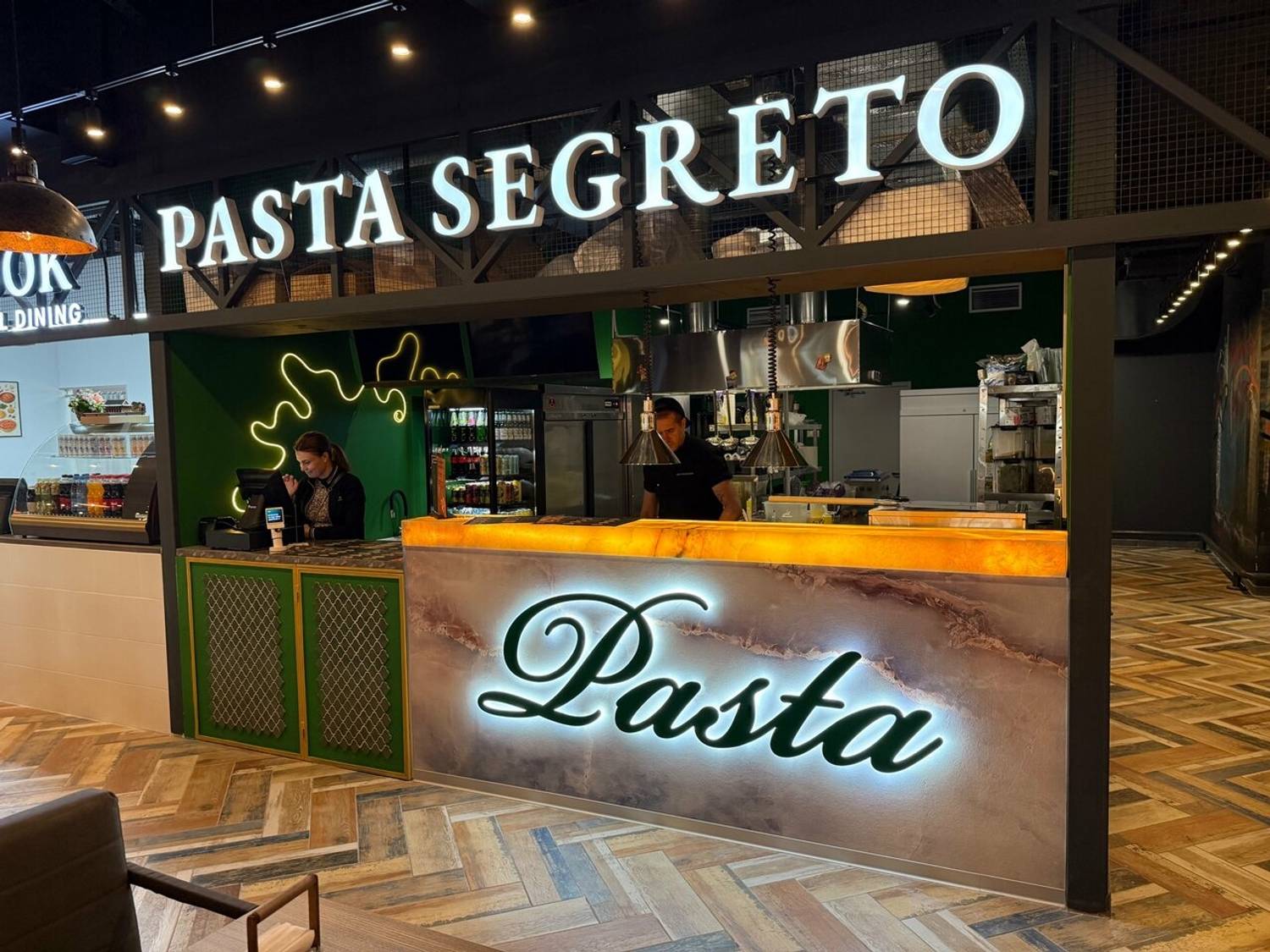 Еда и напитки. Меню сфокусировано на пасте из твердых сортов пшеницы. Здесь можно попробовать как классические варианты — спагетти карбонара или качо-э-пепе, так и более сложные авторские комбинации. Например, казаречче с копченой уткой в апельсиновом демигласе или феттучини с лососем и копченым тунцом. В дополнение предлагают несколько видов пиццы на тонком тесте, салаты вроде страчателлы с томатами и трюфелем и сытные супы, такие как тыквенный с грушей и горгонзолой.