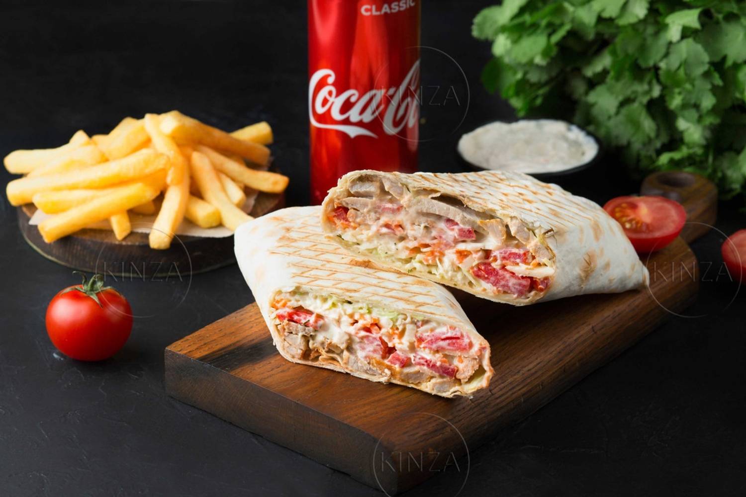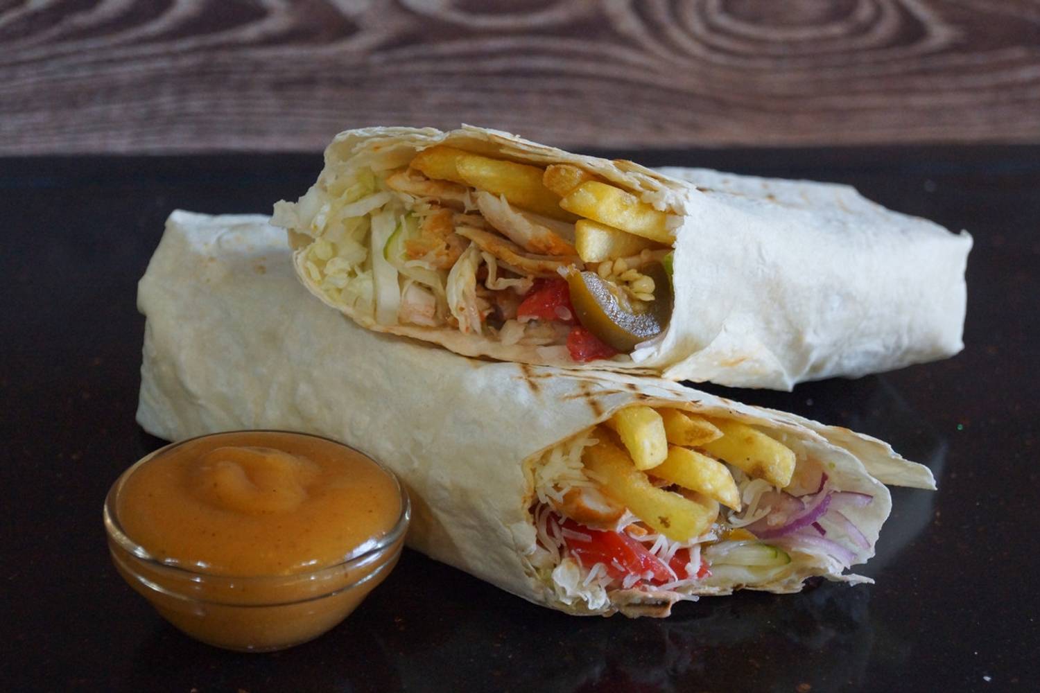 Еда и напитки. В меню — авторские вариации шаурмы с нестандартными начинками: от классической говядины и баранины до креветок. Можно заказать дополнительные ингредиенты: пармезан, морковь по-корейски, сыр «Филадельфия» и хрустящий жареный лук. К шаурме предлагают картофель и напитки в составе сытных комбо. Также можно заказать хот-дог: французский, датский, чеддер и даже вегетарианский.