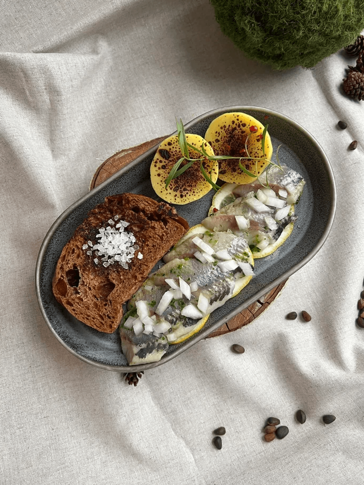 Еда и напитки. В меню — строганина из мурманского лосося, пельмени с мясом медведя и кабана, котлеты из щуки и авторский десерт — мороженое из белых грибов на березовом соке. Барная карта включает сибирские настойки и подборку вин.