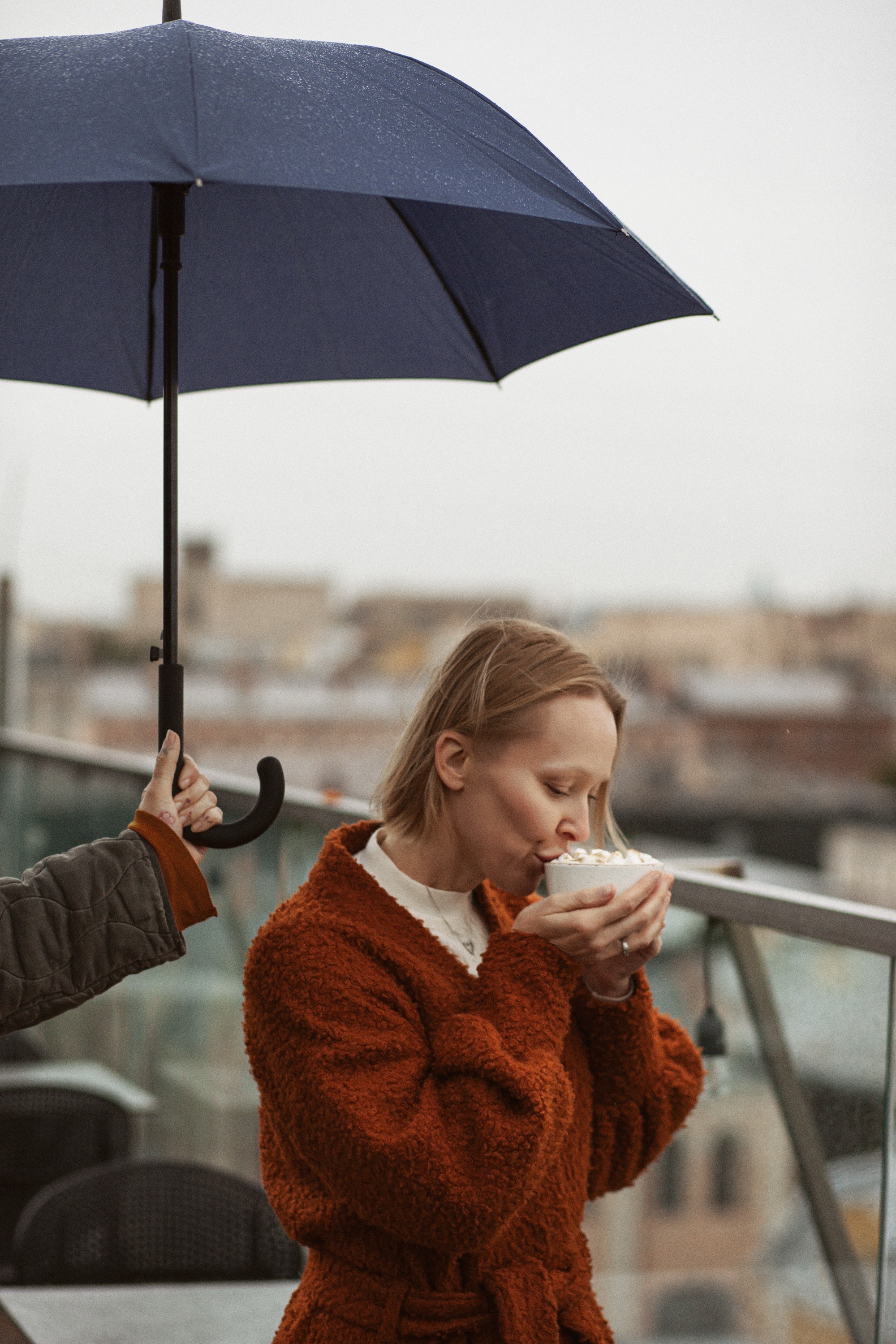 Пространство светлое и современное. Внутри — деревянная мебель, зелень, панорамные окна и две террасы — крытая и открытая. С них открывается вид на Исаакиевский собор, Дом Зингера и центр Петербурга.