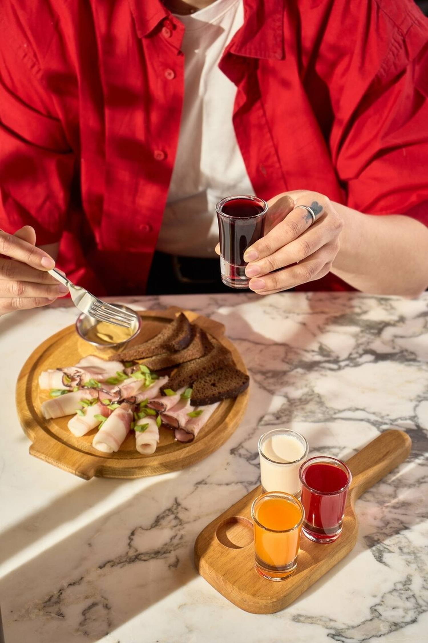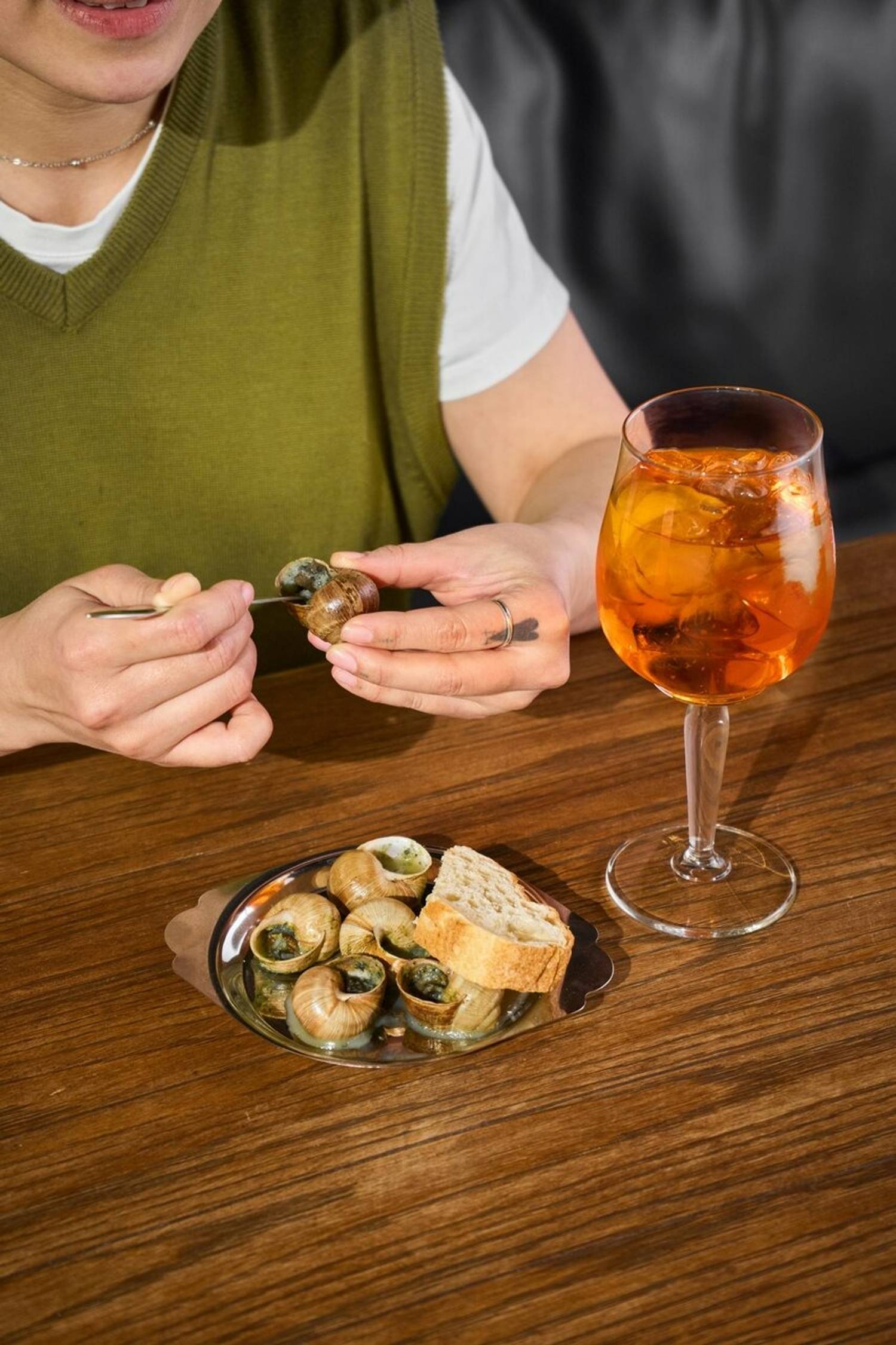 Еда и напитки. В меню — котелок мидий, чизбургер с говядиной и яйцом, пельмени ручной лепки, корюшка с соусом айоли, улитки в чесночном соусе с маслом и петрушкой. На десерт можно заказать вафли со взбитыми сливками.