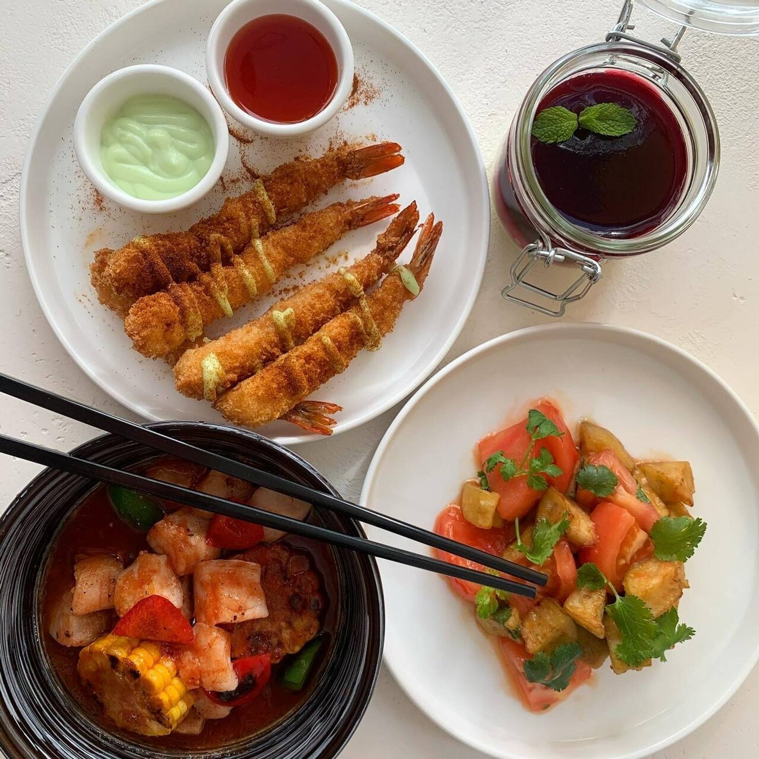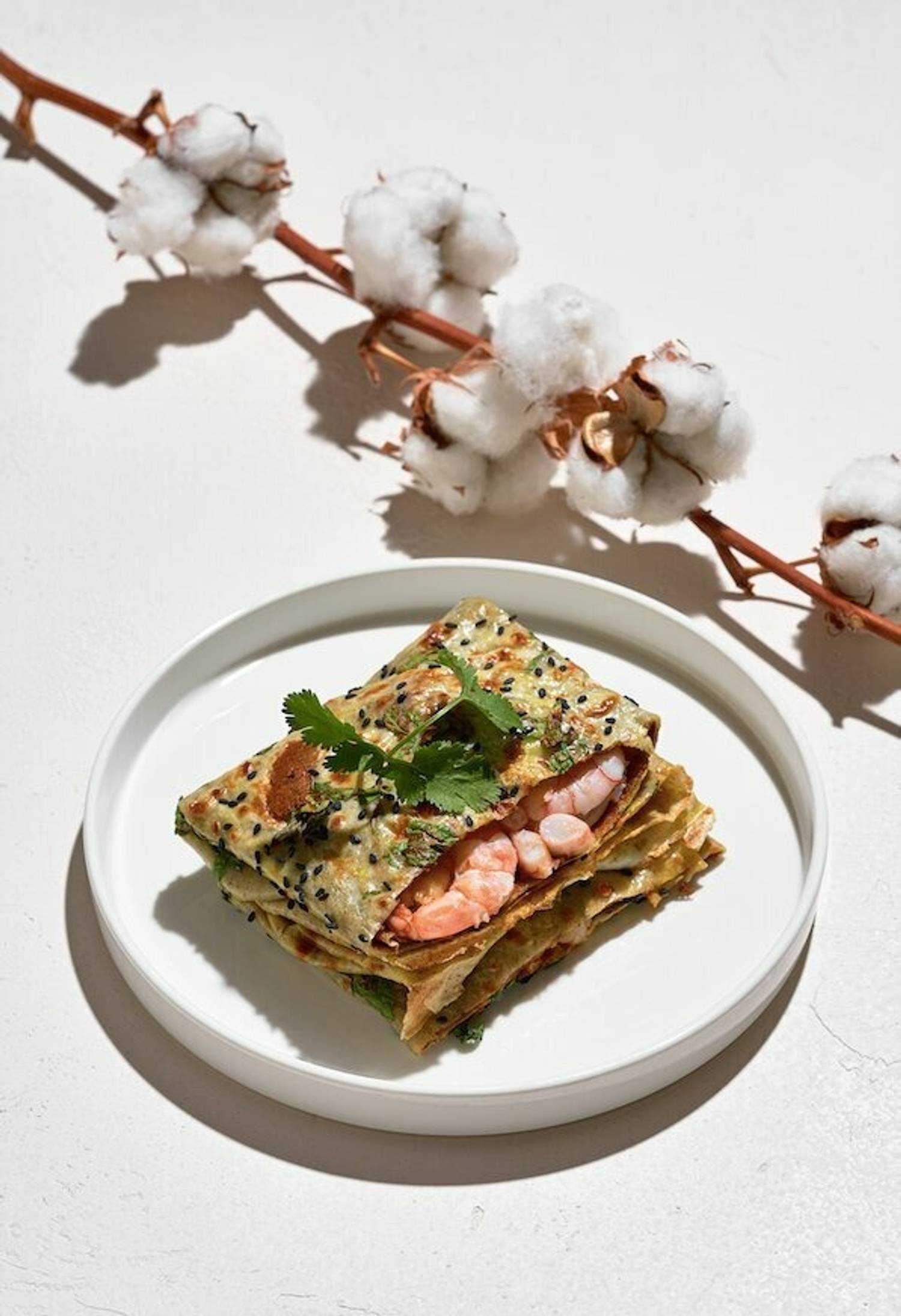 Еда и напитки. В меню — цзяньбины — тонкие лепешки с разными начинками: свининой барбекю, курицей, грибами и овощами. Также подают кимчи, грибы со спаржей фучжу, китайский пуэр и крафтовый сидр.