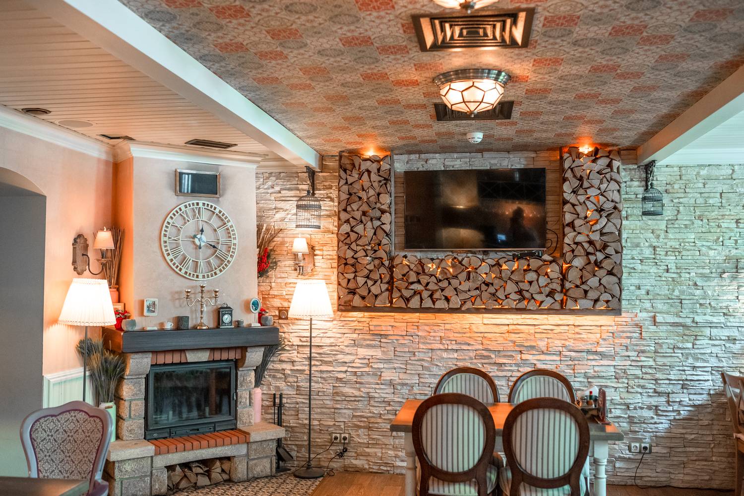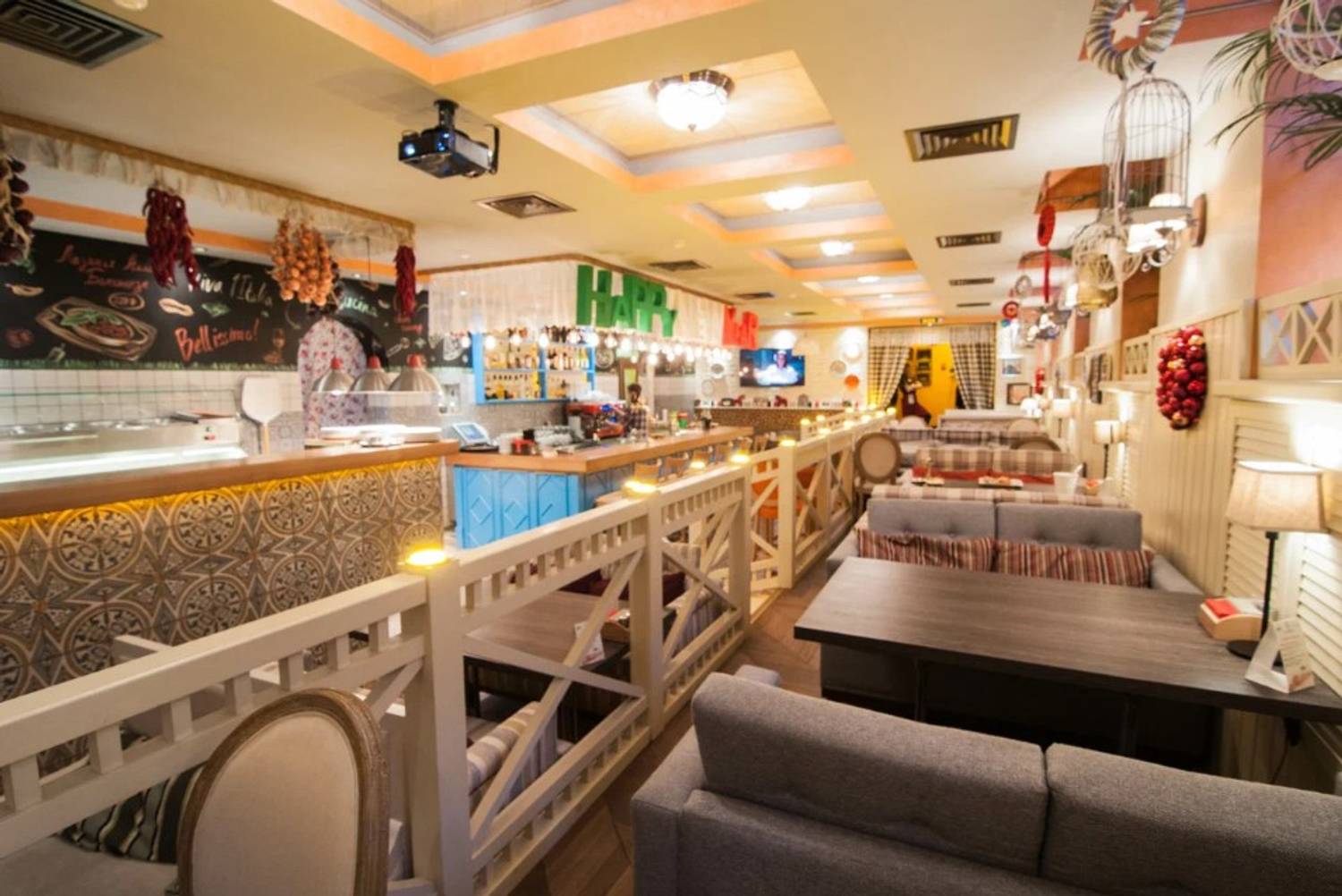 Атмосфера. Интерьер воссоздает атмосферу уютного итальянского кафе с теплым светом и интересными деталями: например, белым деревянным заборчиком или художественно уложеннными дровами для камина. Пространство ориентировано на комфортный отдых в кругу семьи или друзей.