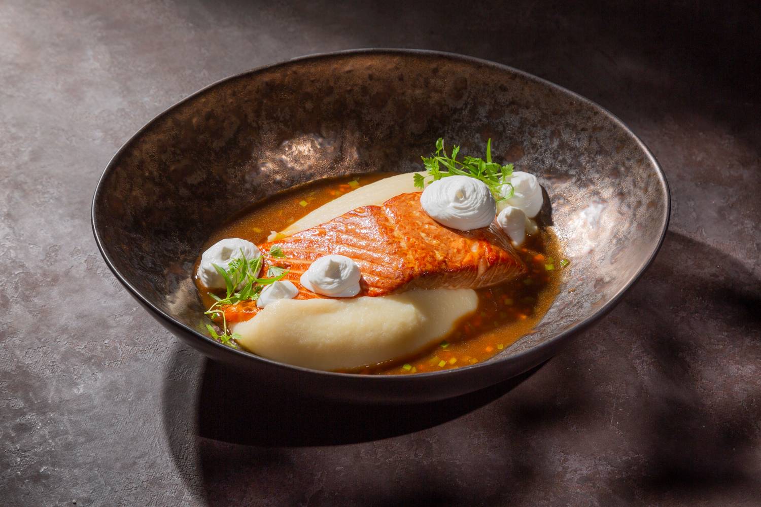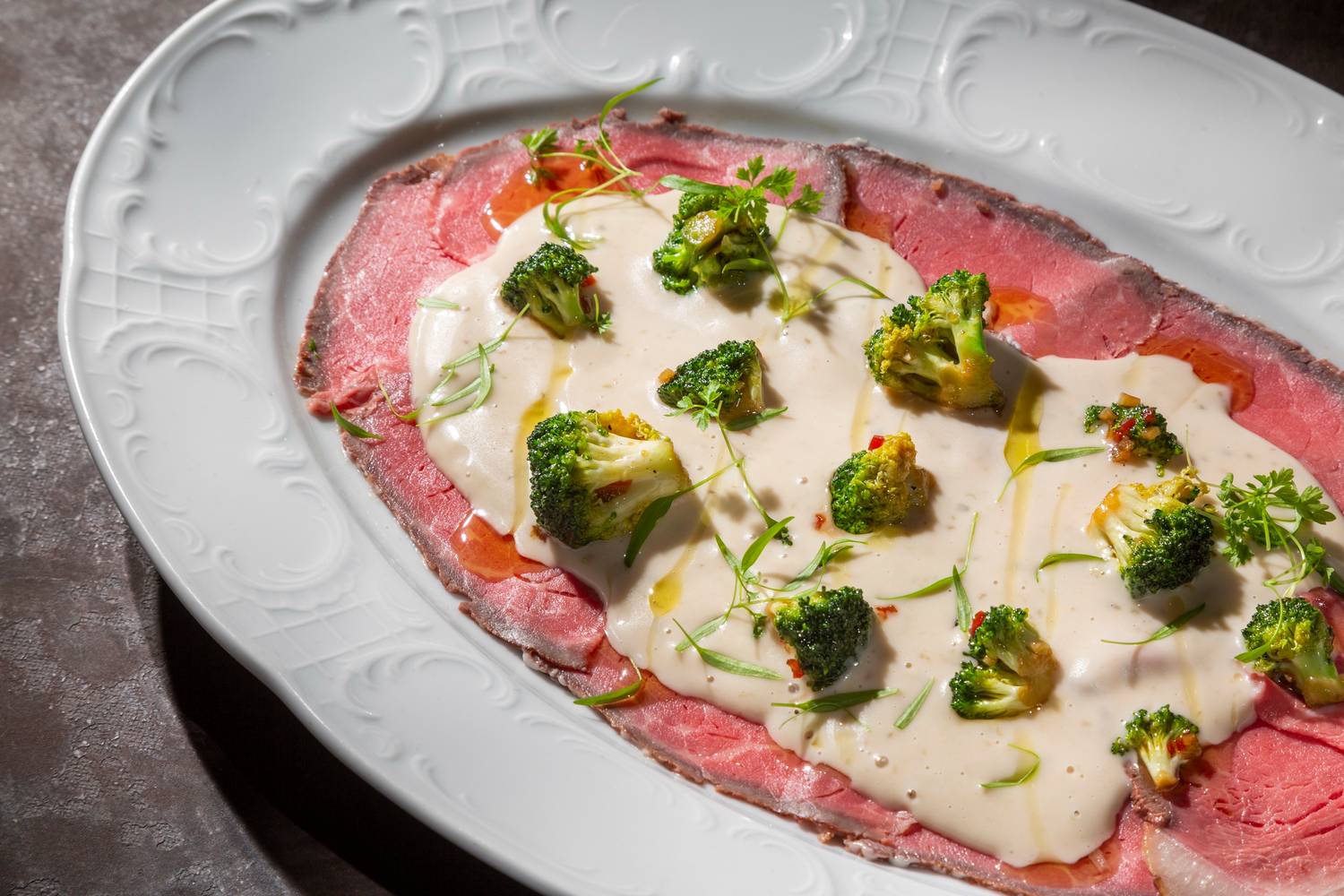 Еда и напитки. Меню сочетает знакомые вкусы с авторским прочтением: томаты с горчичным маслом, томатная паста с осьминогом, карпаччо из стриплойна, сырный суп с креветками и крем-брюле из кураги. В барной карте — игристое, классические вина и авторские коктейли.
